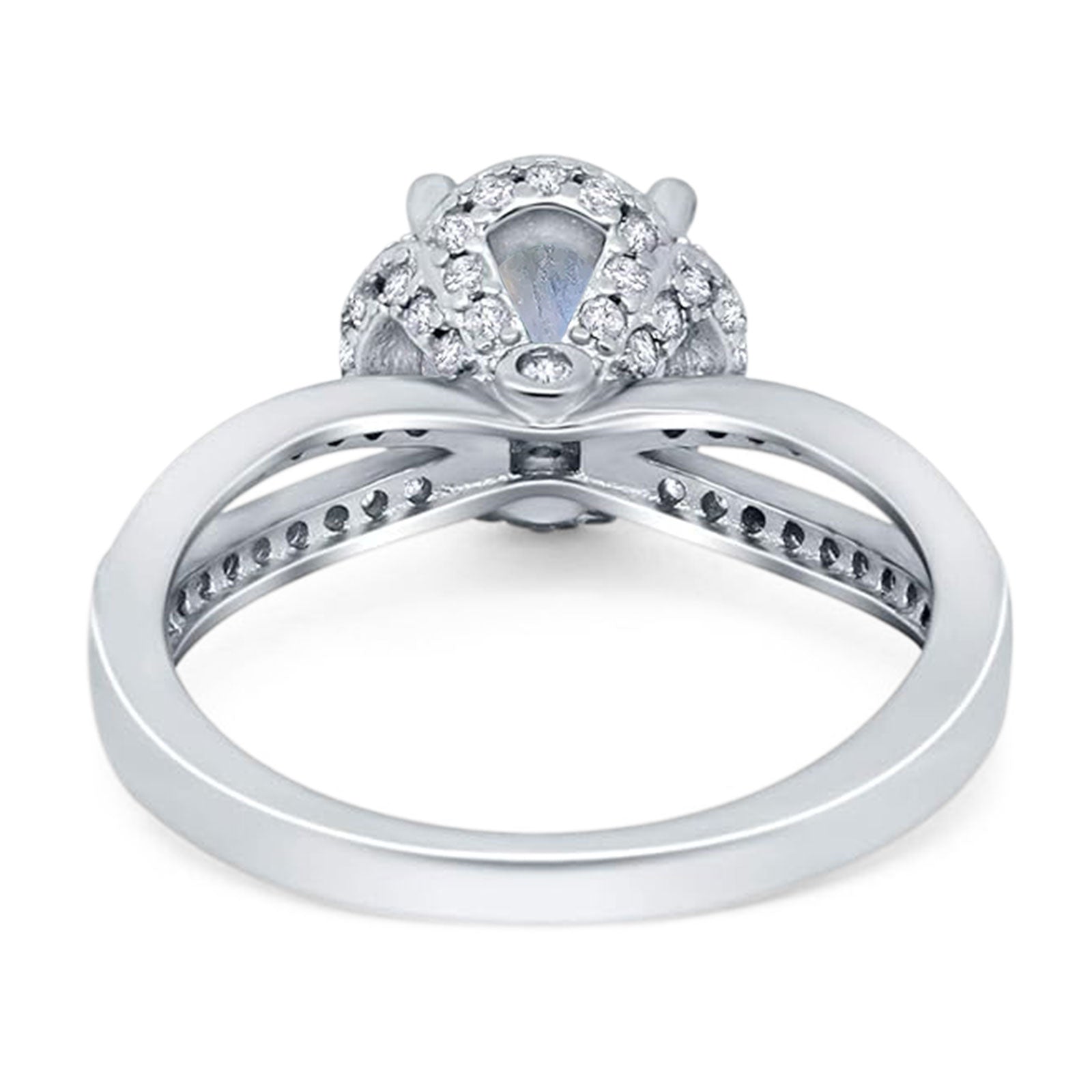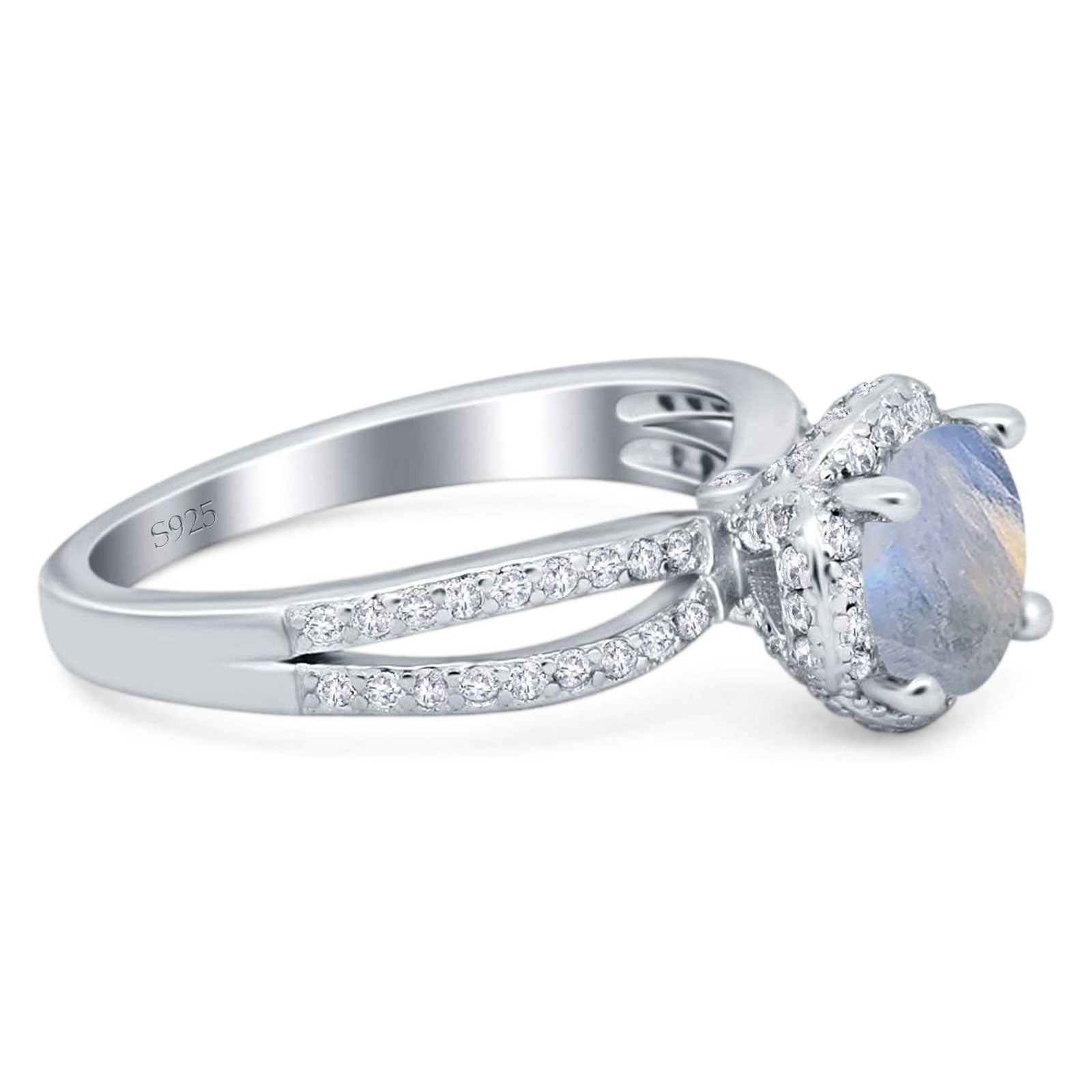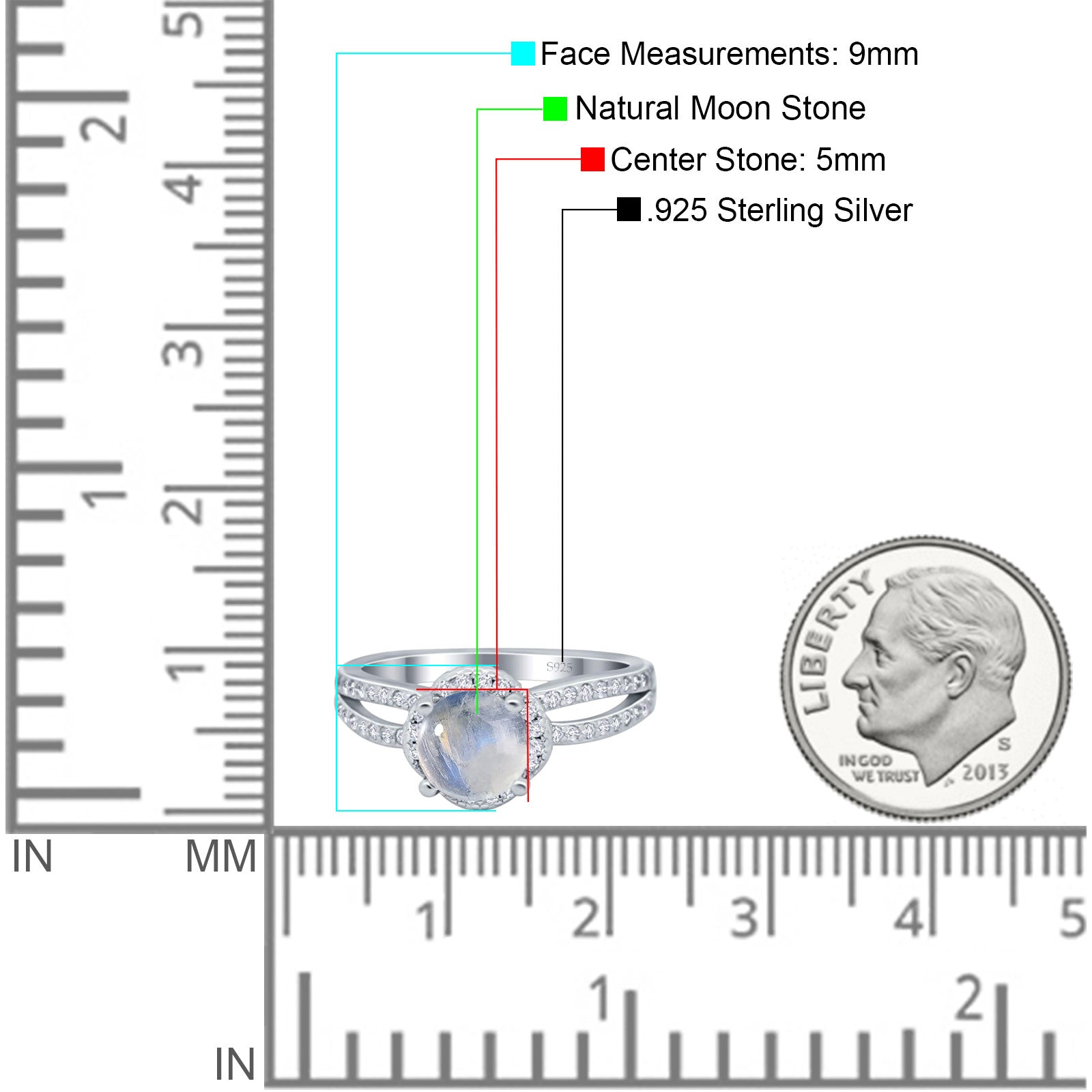 Art Deco Round Natural Moonstone Split Shank Ring 925 Sterling Silver
