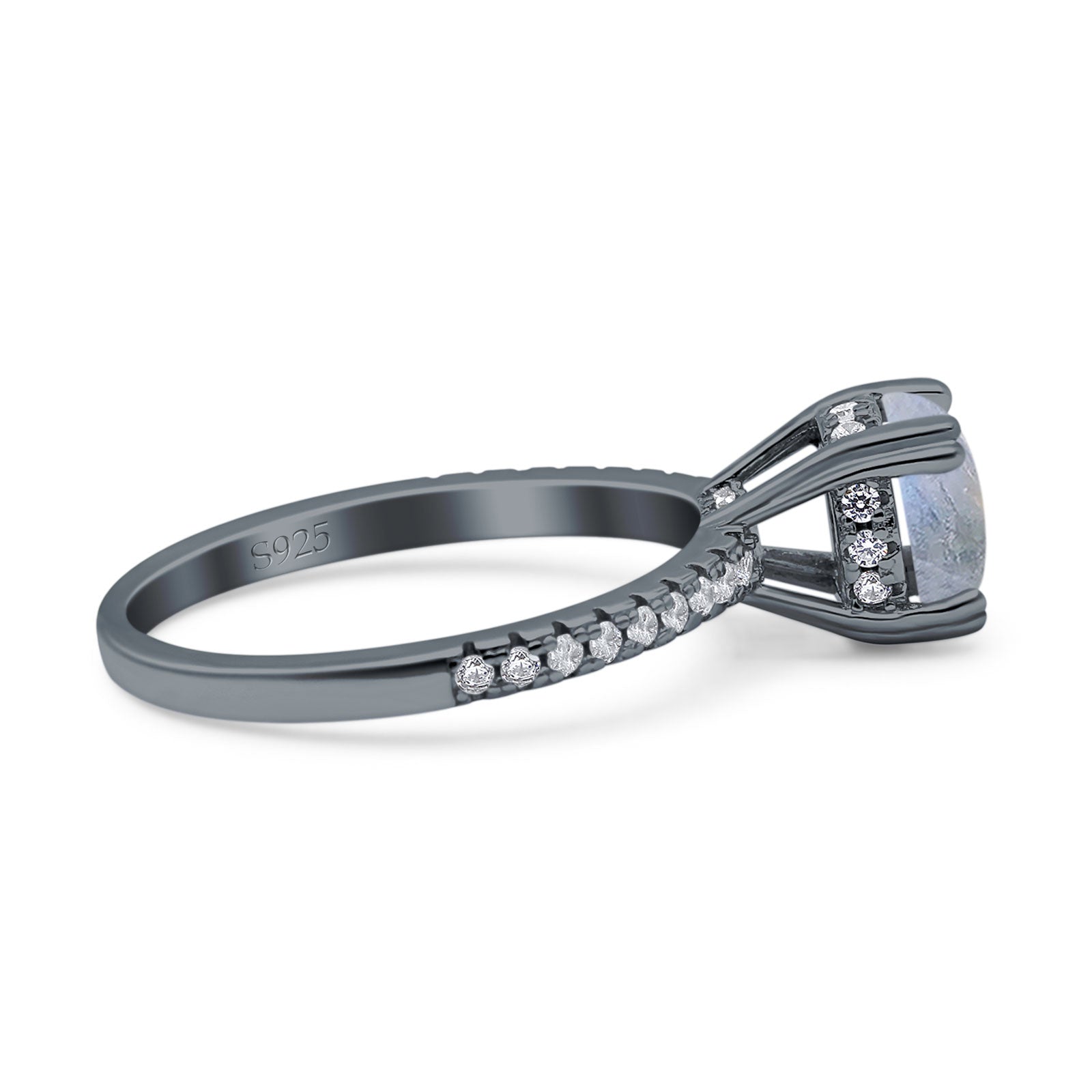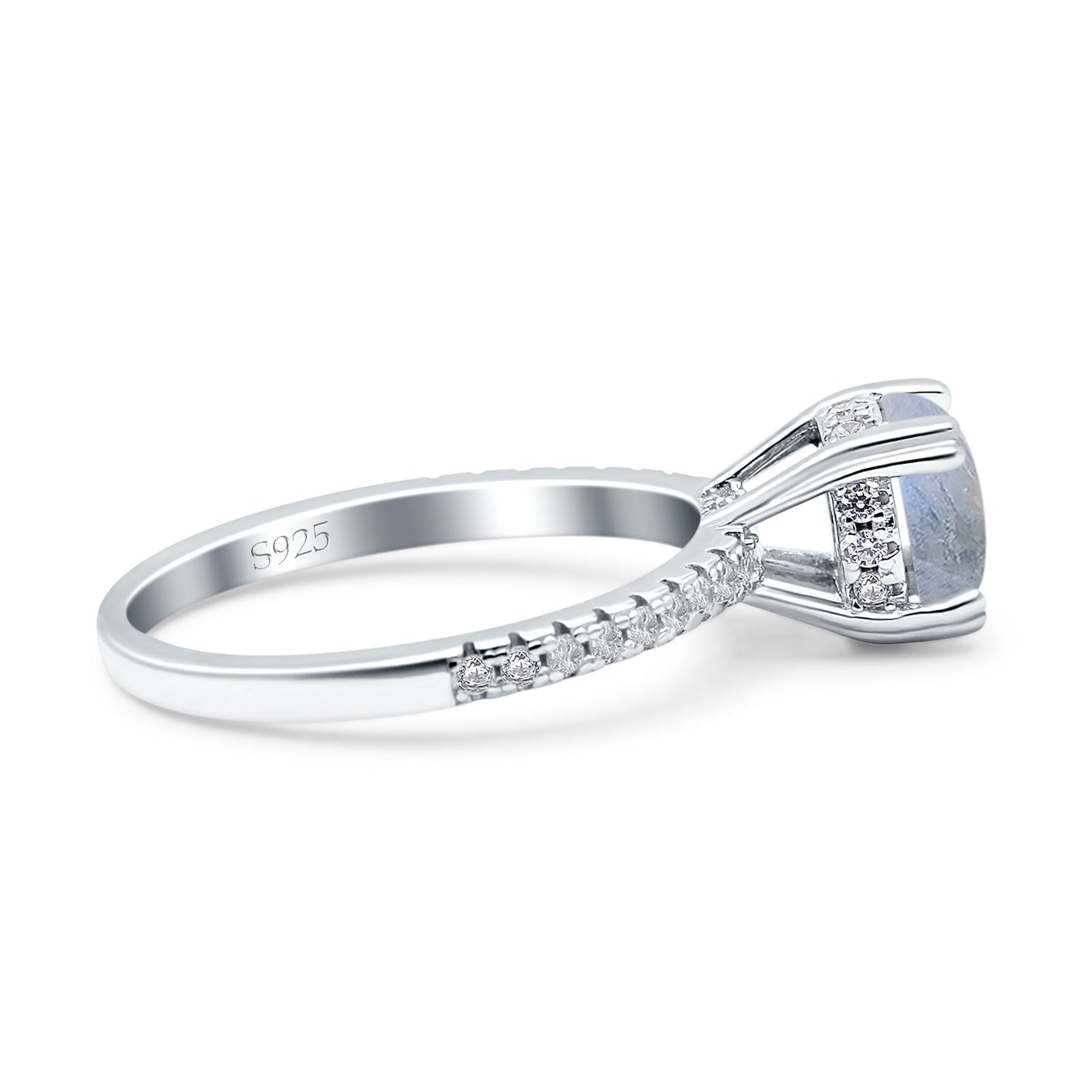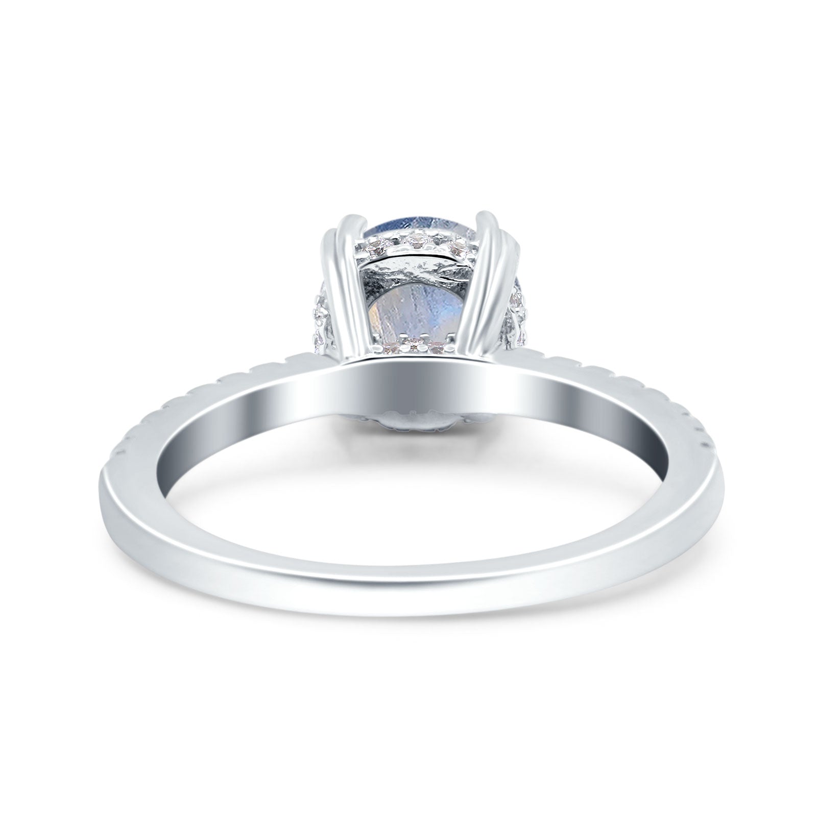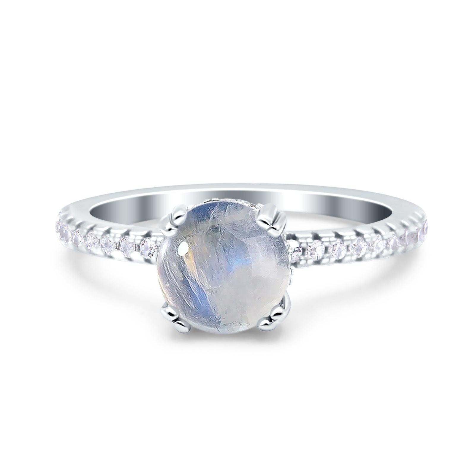 Art Deco Round Natural Moonstone Wedding Ring 925 Sterling Silver