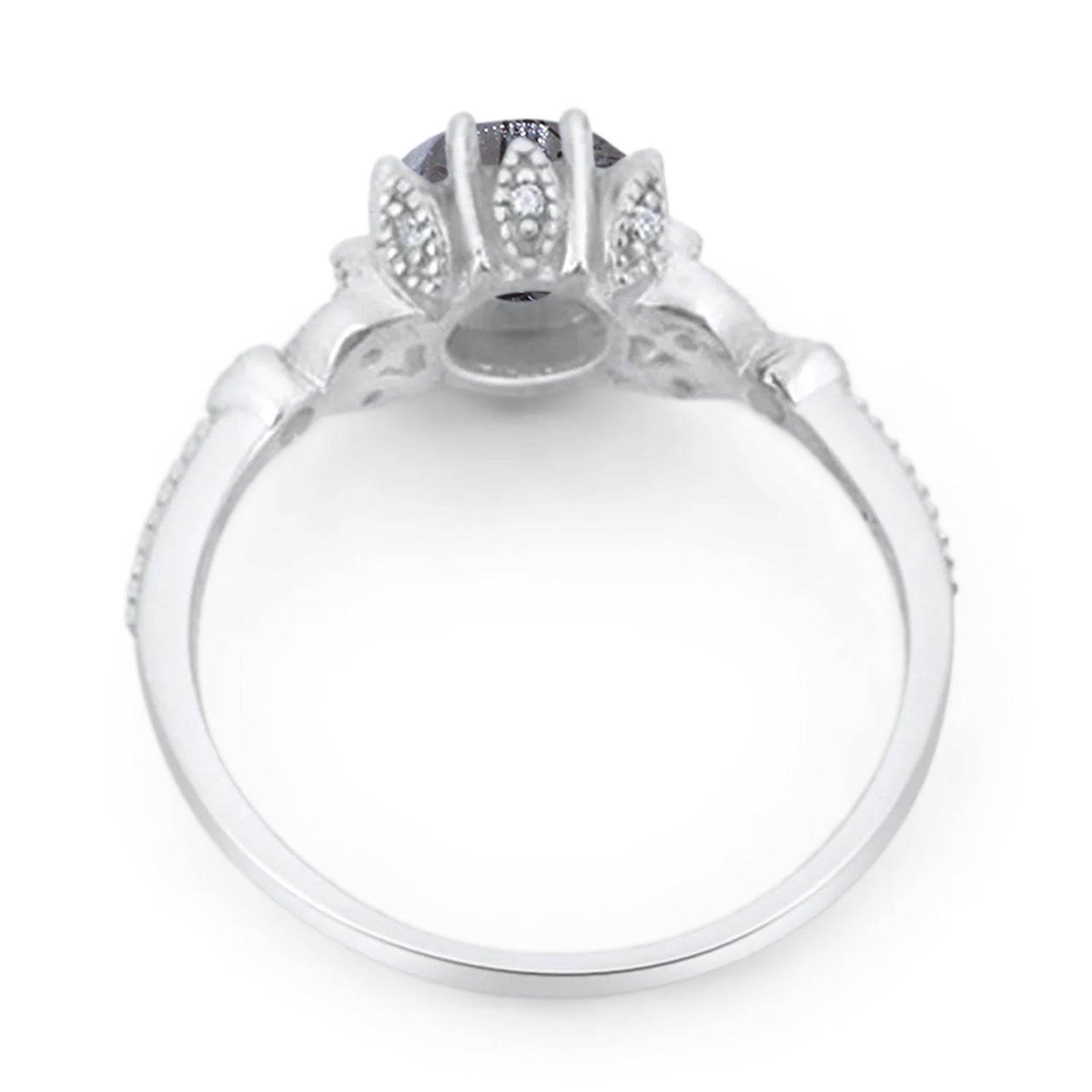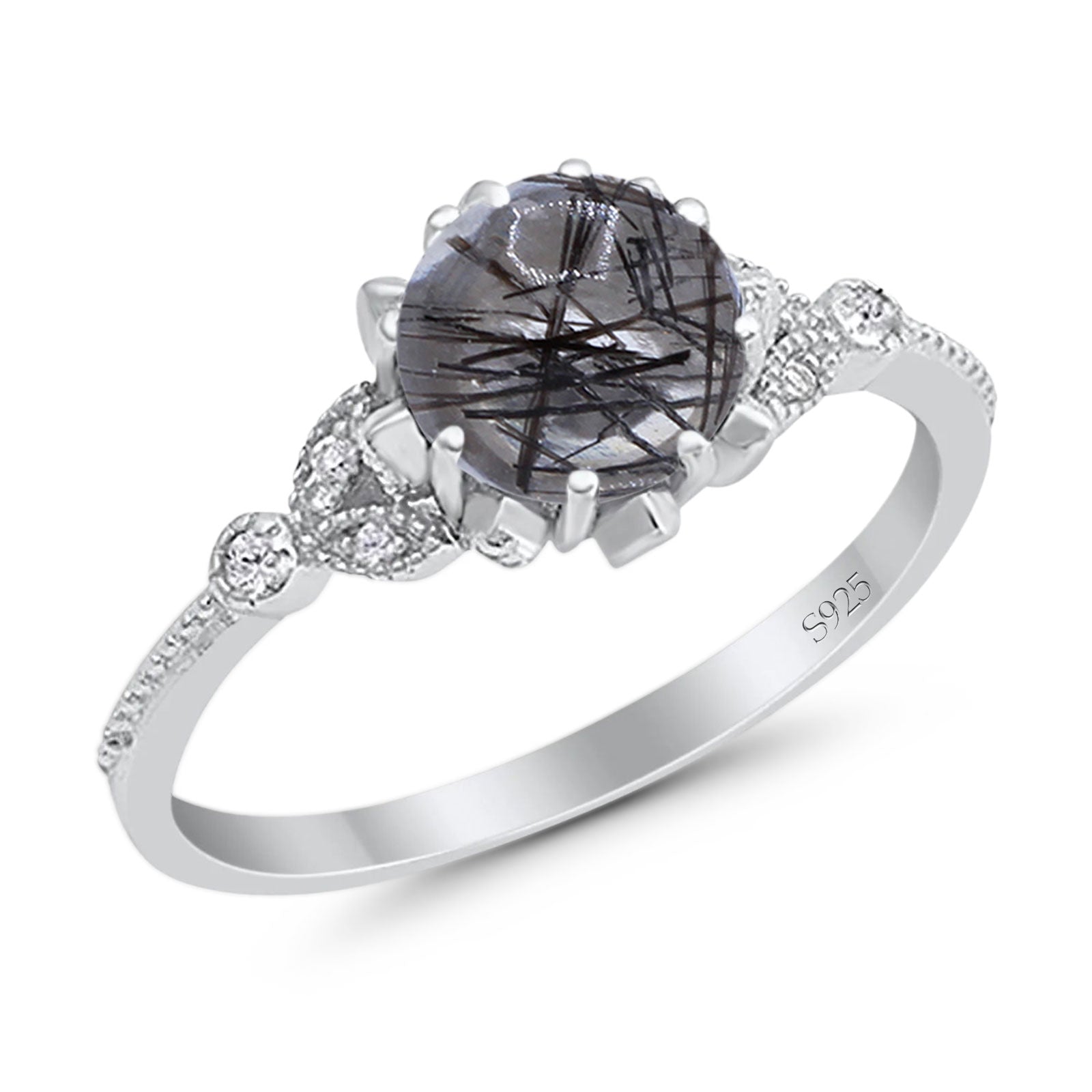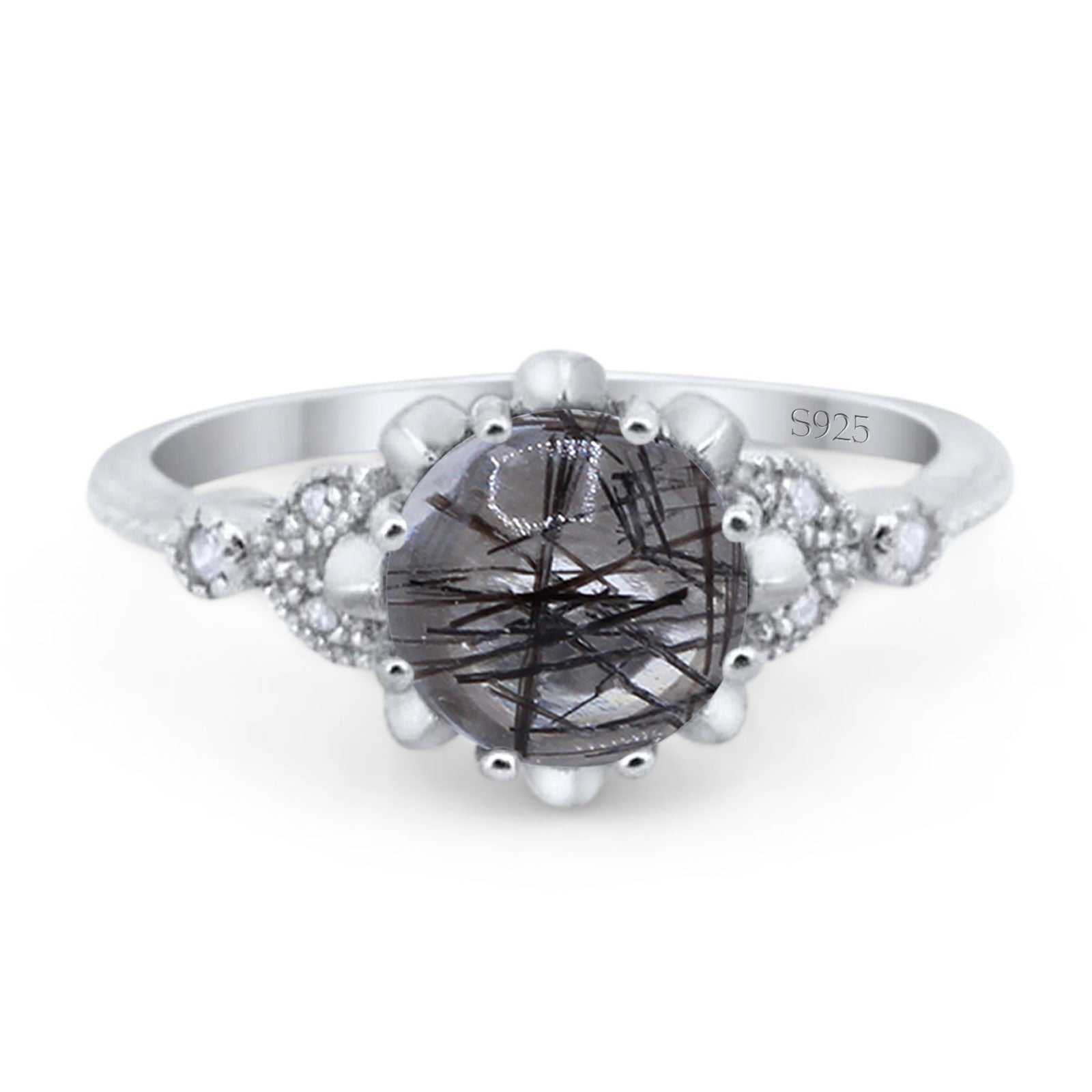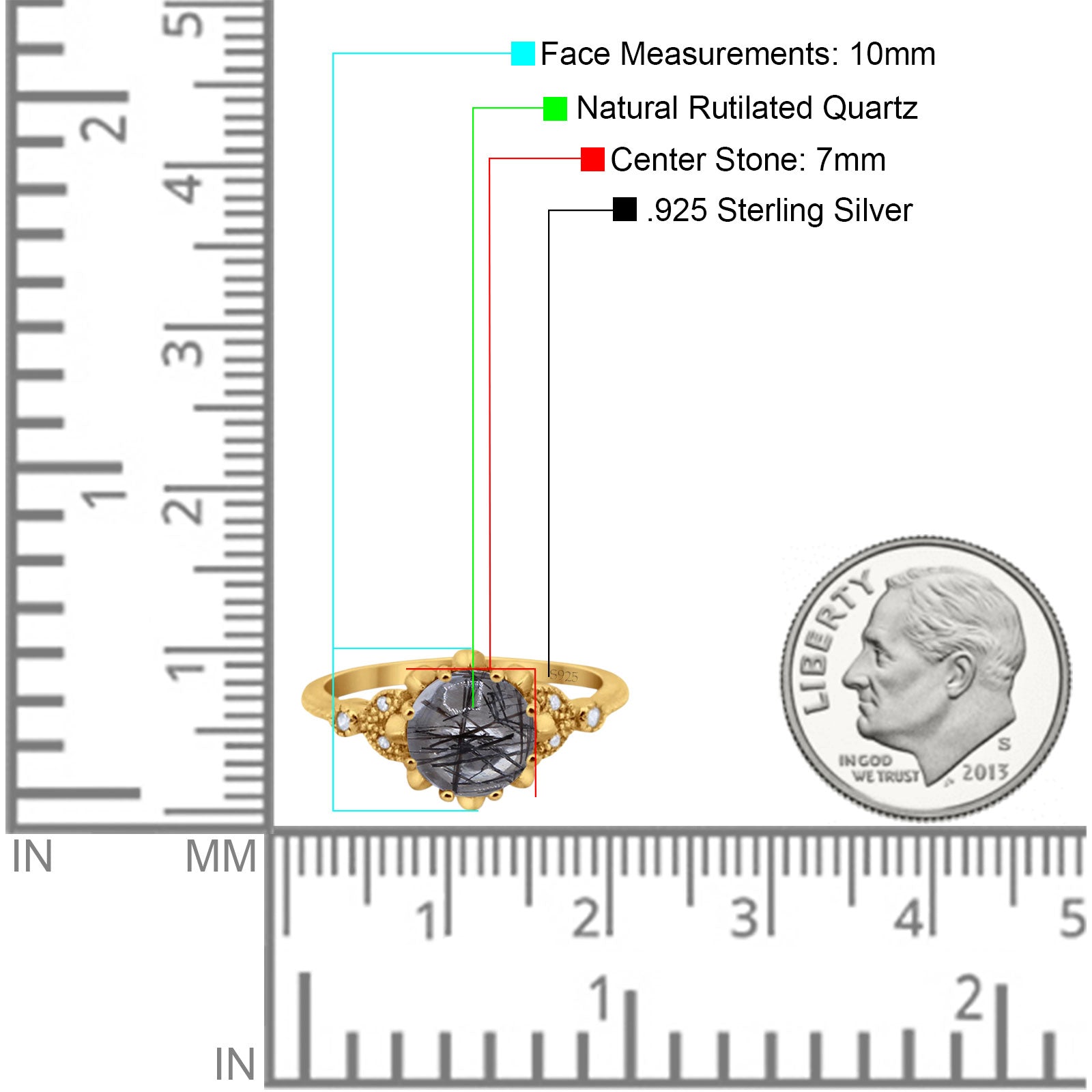 Art Deco Round Natural Rutilated Quartz Floral Ring 925 Sterling Silver