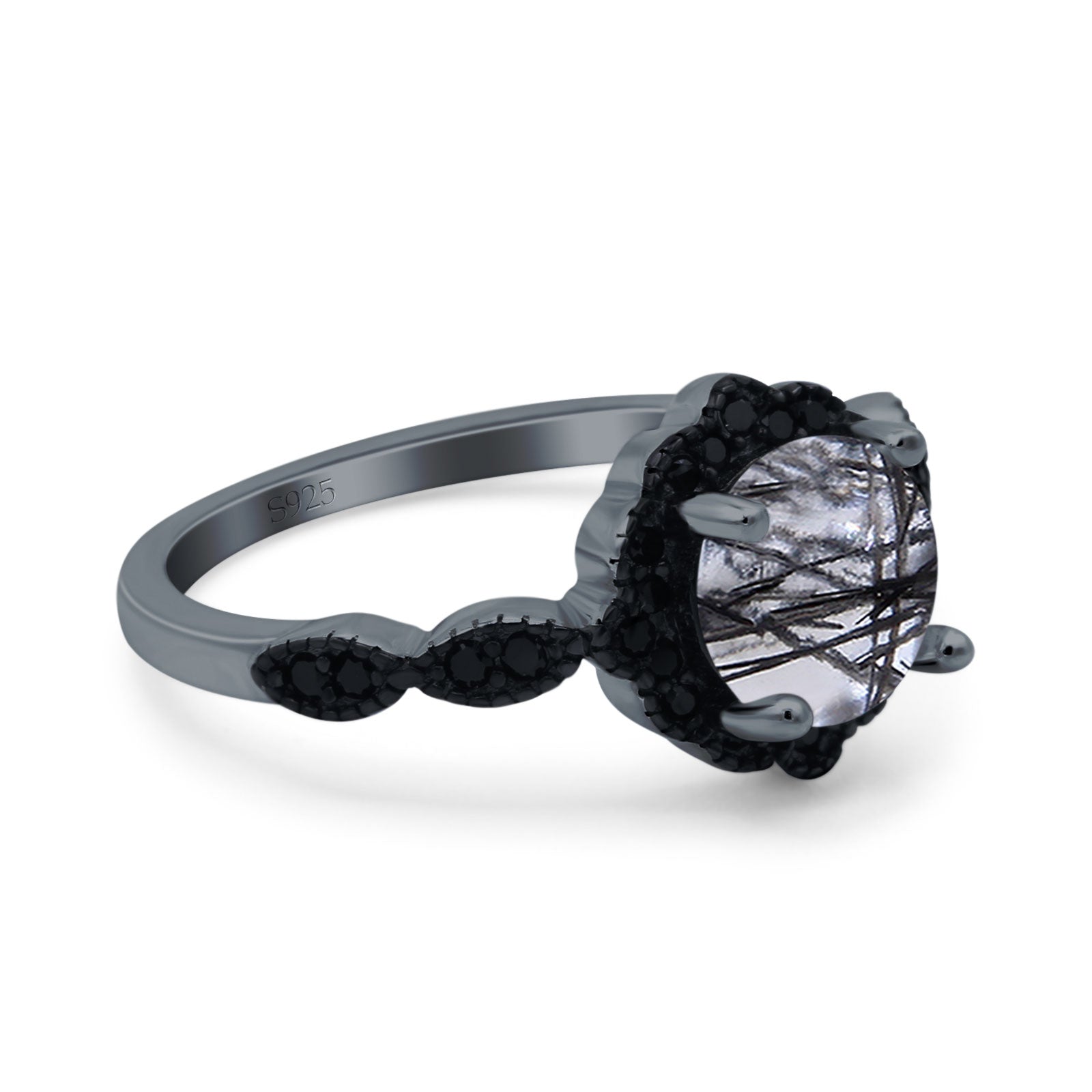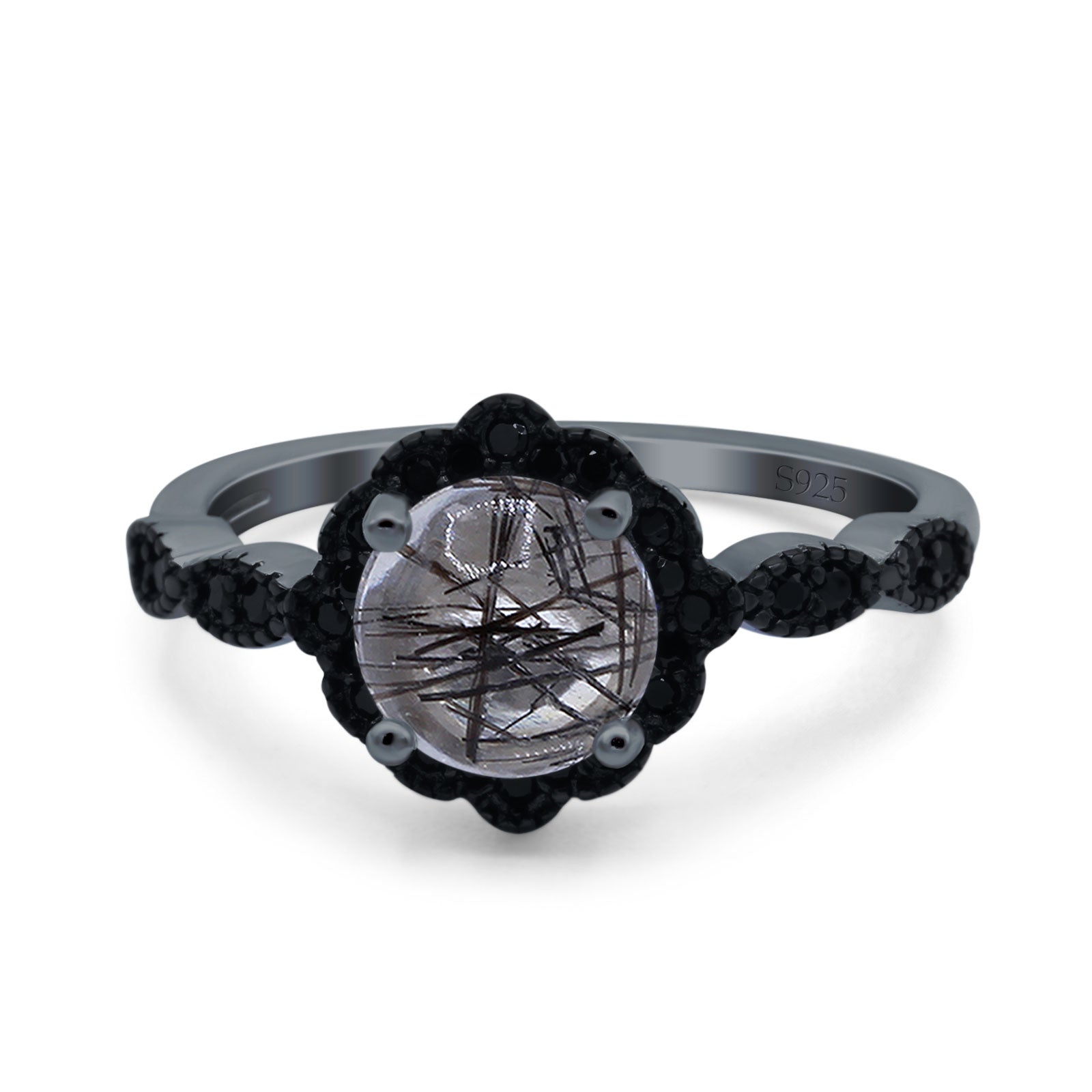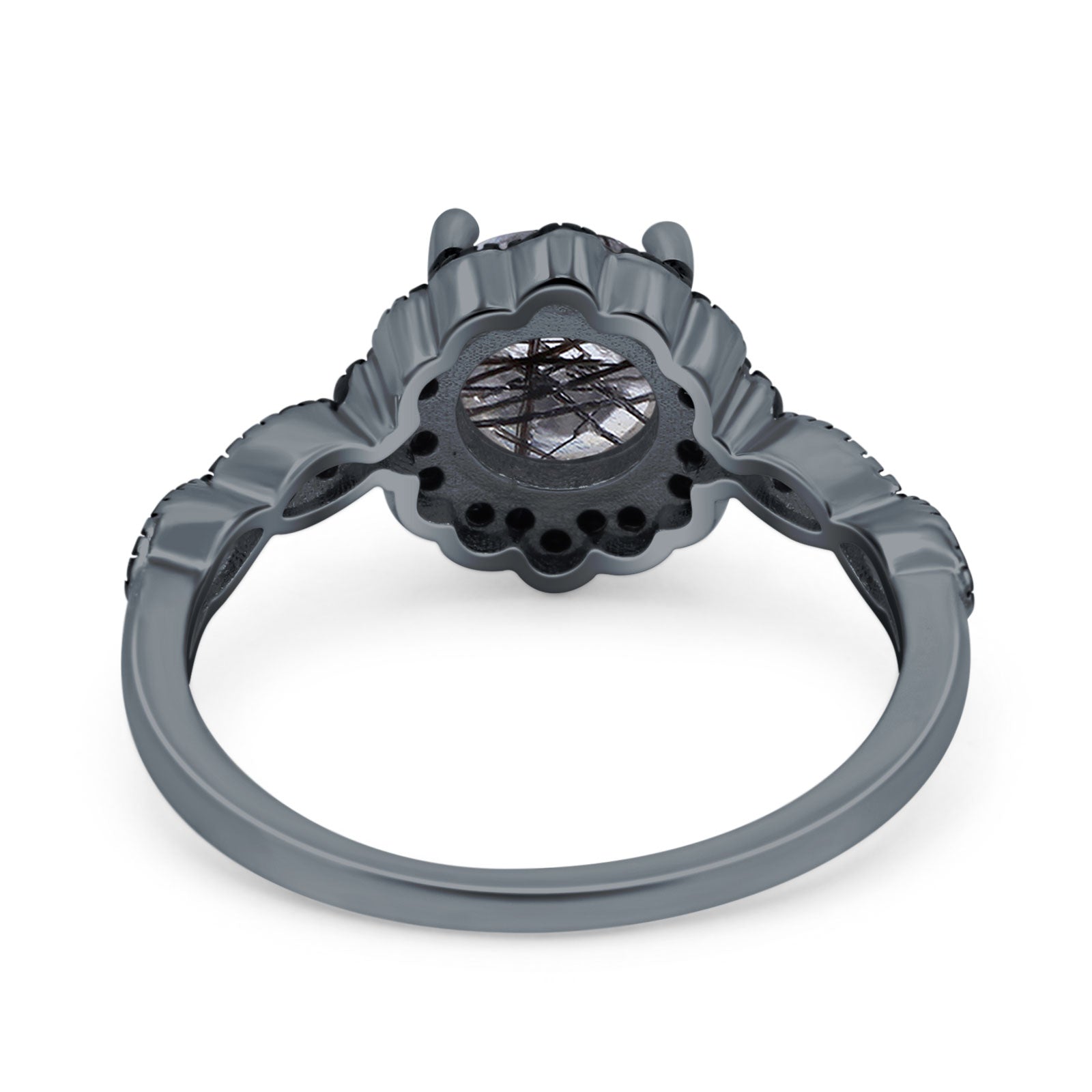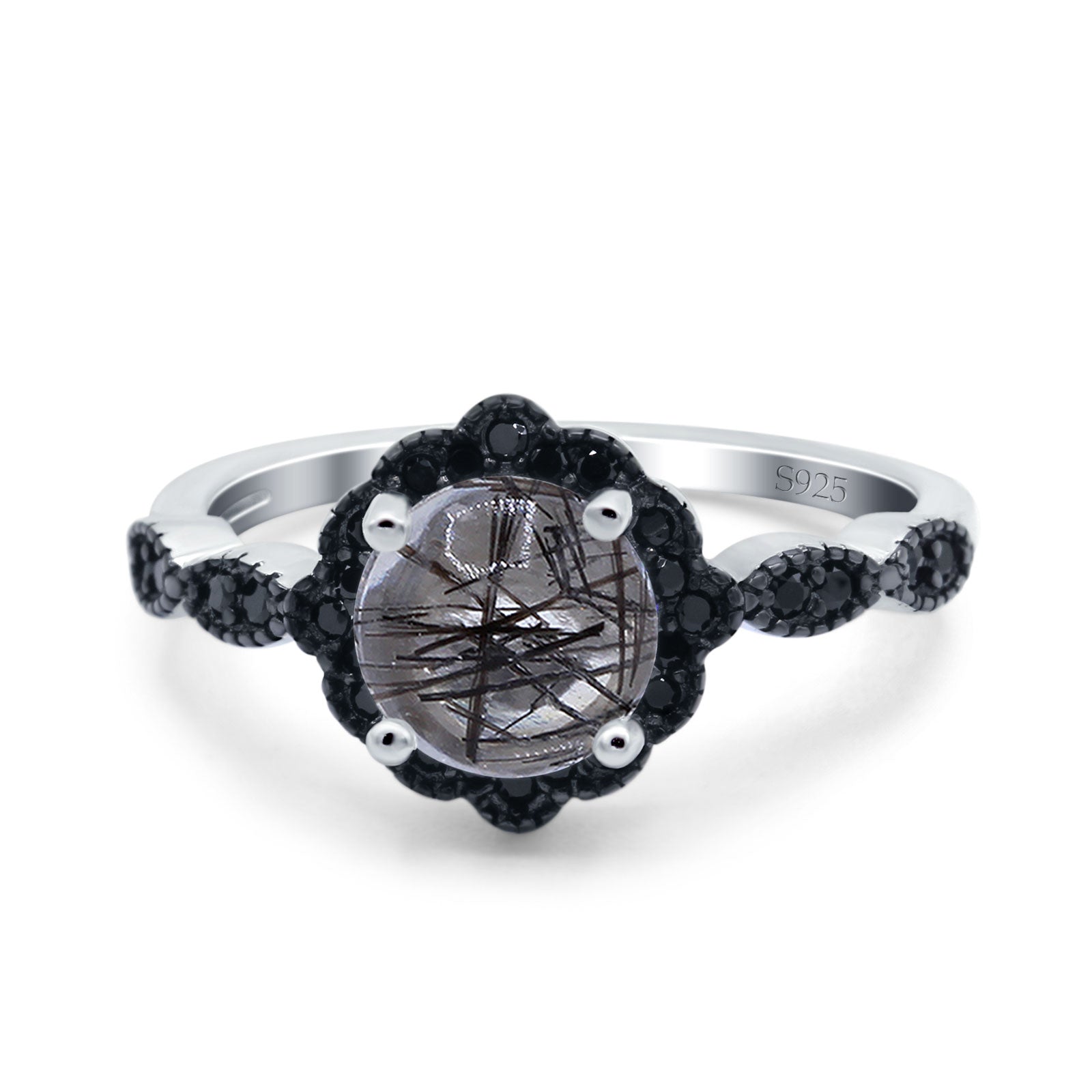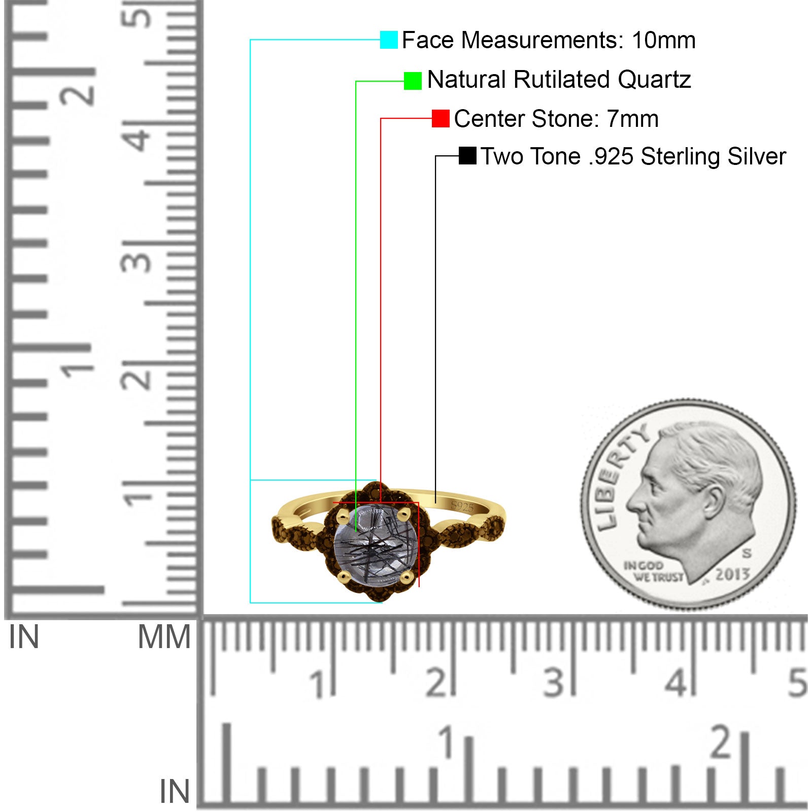 Art Deco Round Natural Rutilated Quartz Flower Ring 925 Sterling Silver