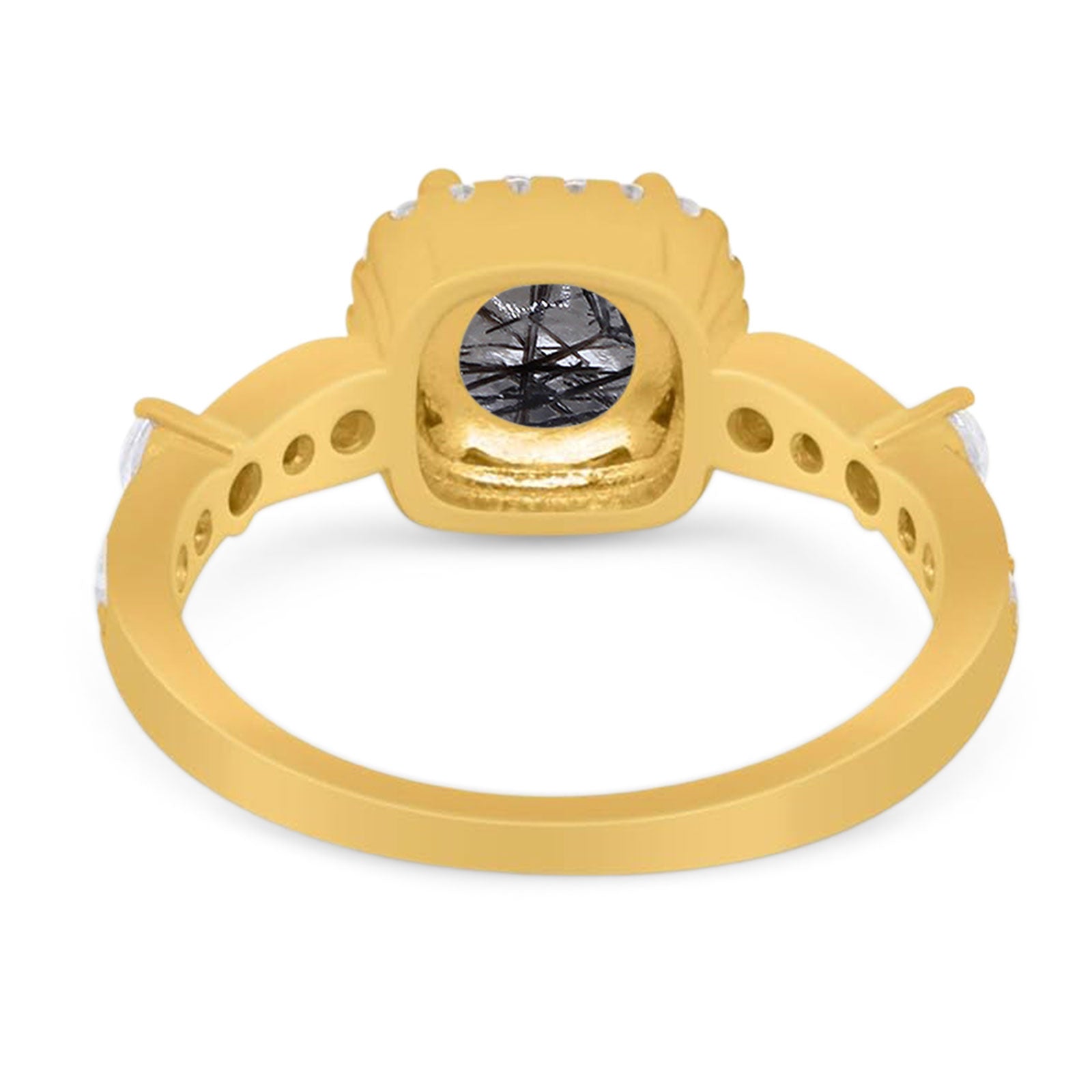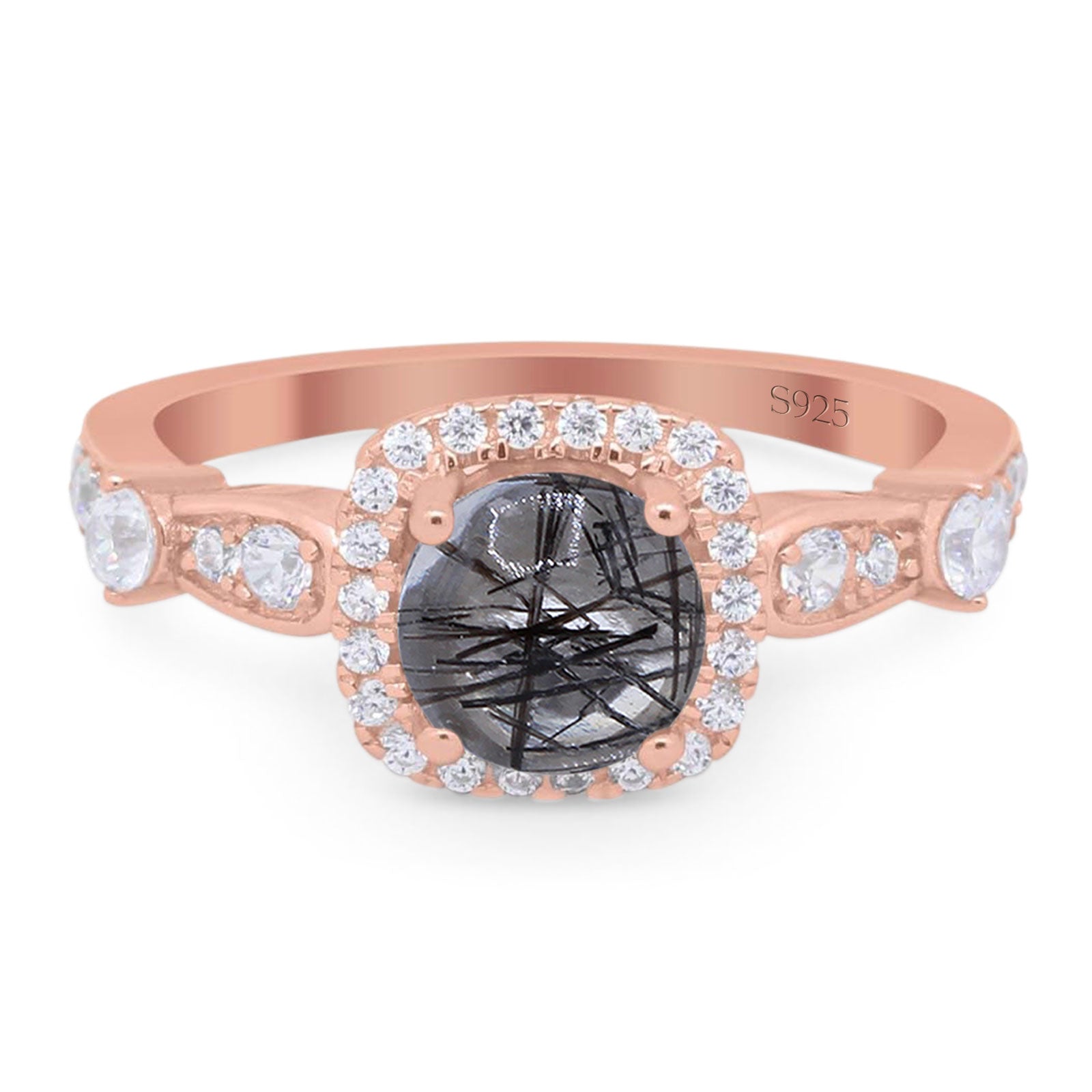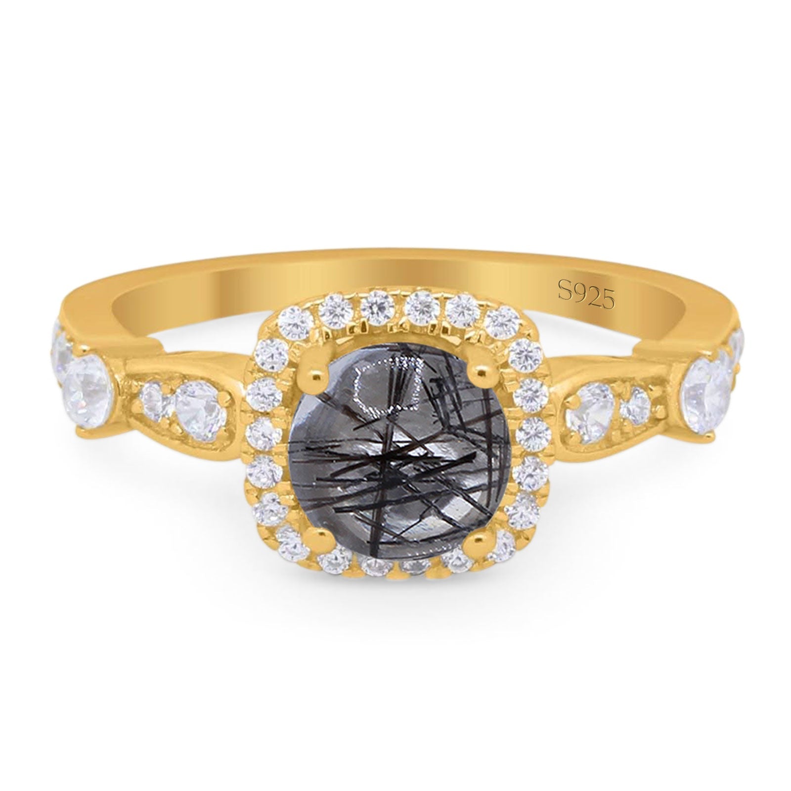 Art Deco Round Natural Rutilated Quartz Halo Accents Ring 925 Sterling Silver