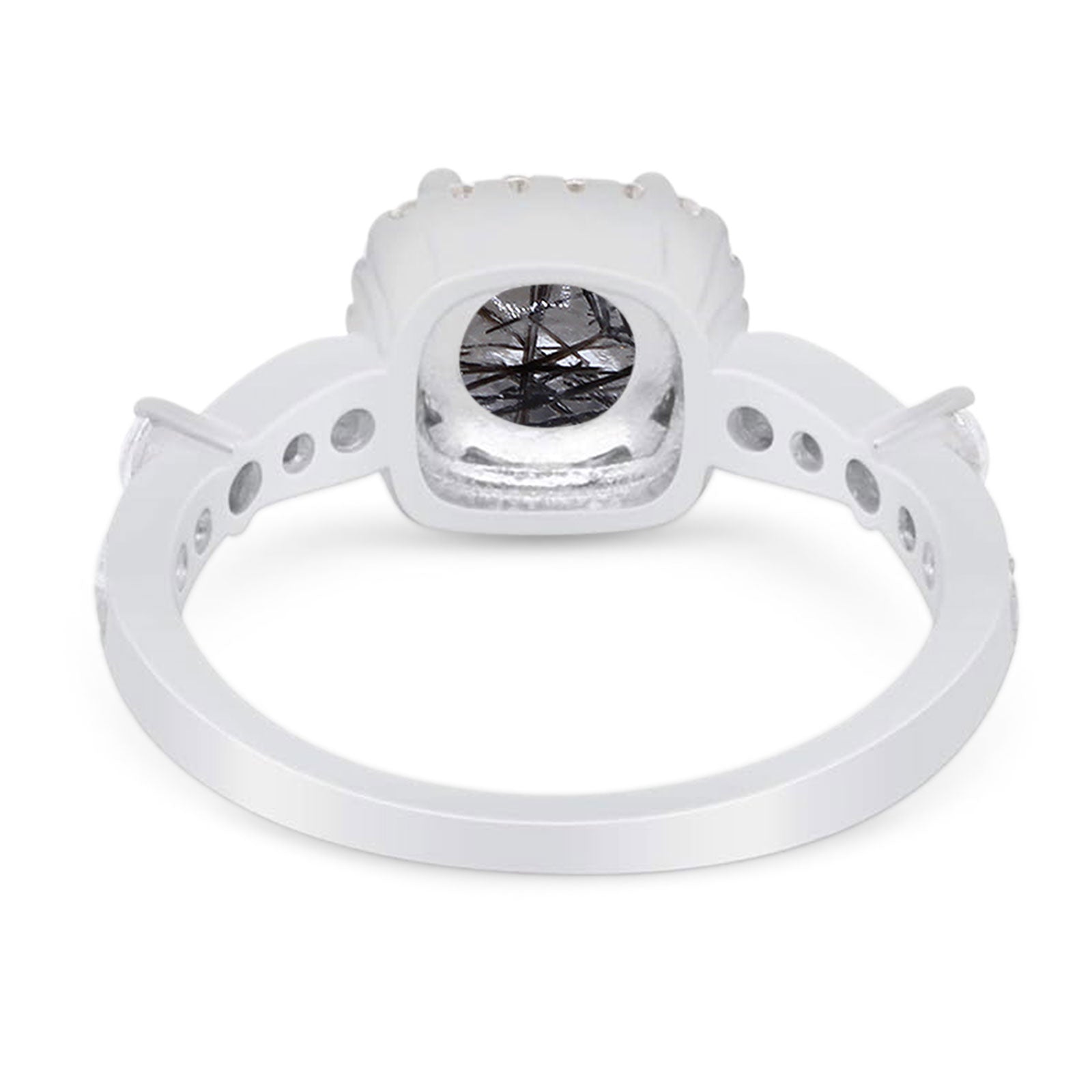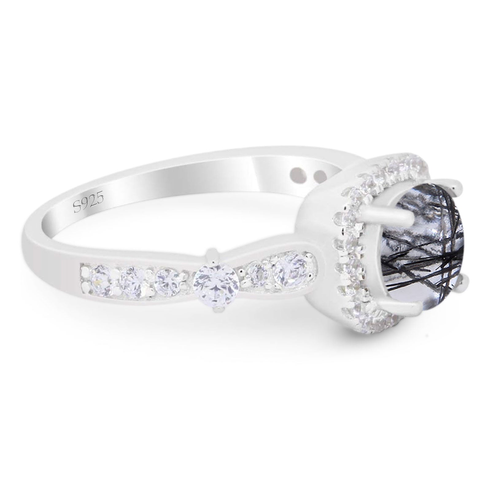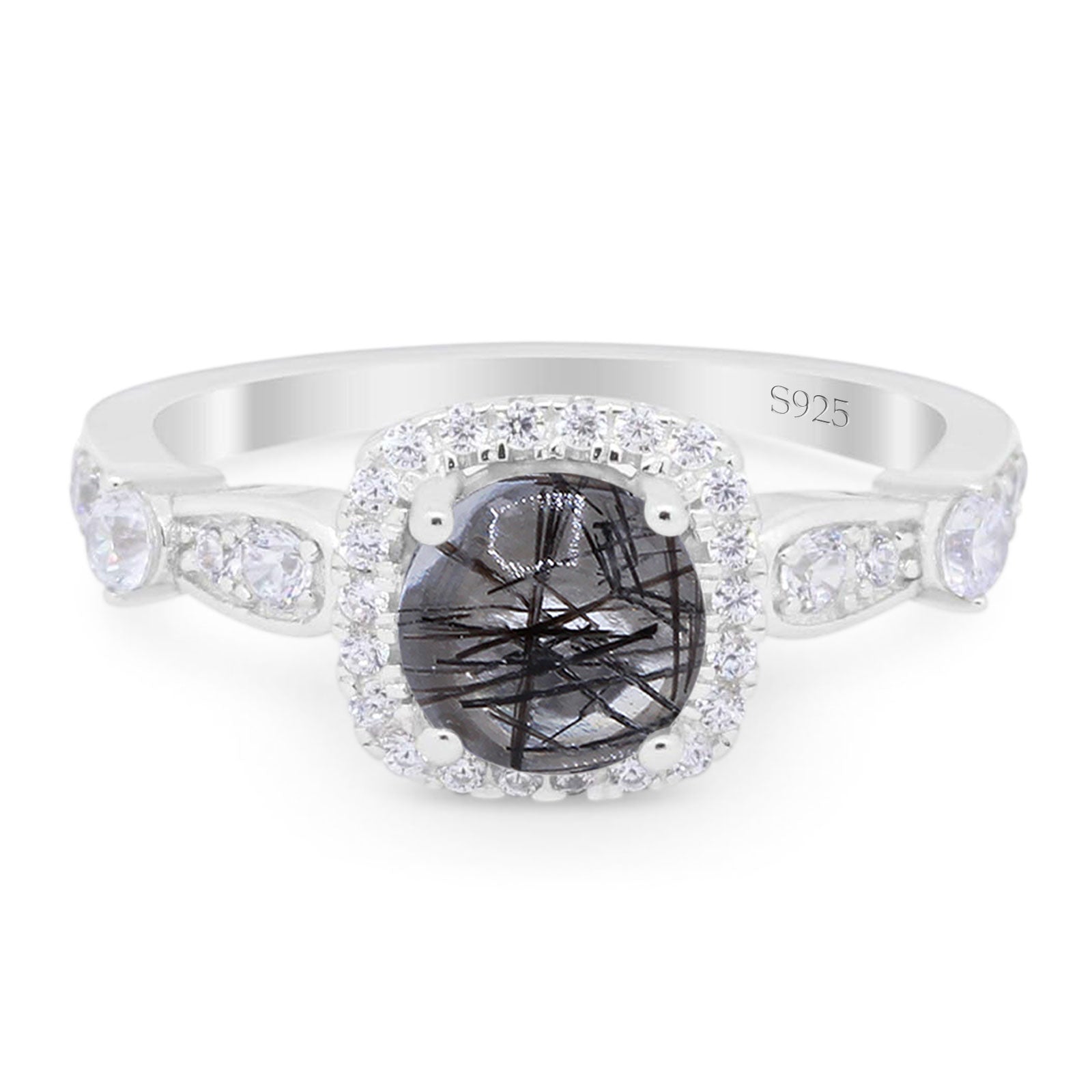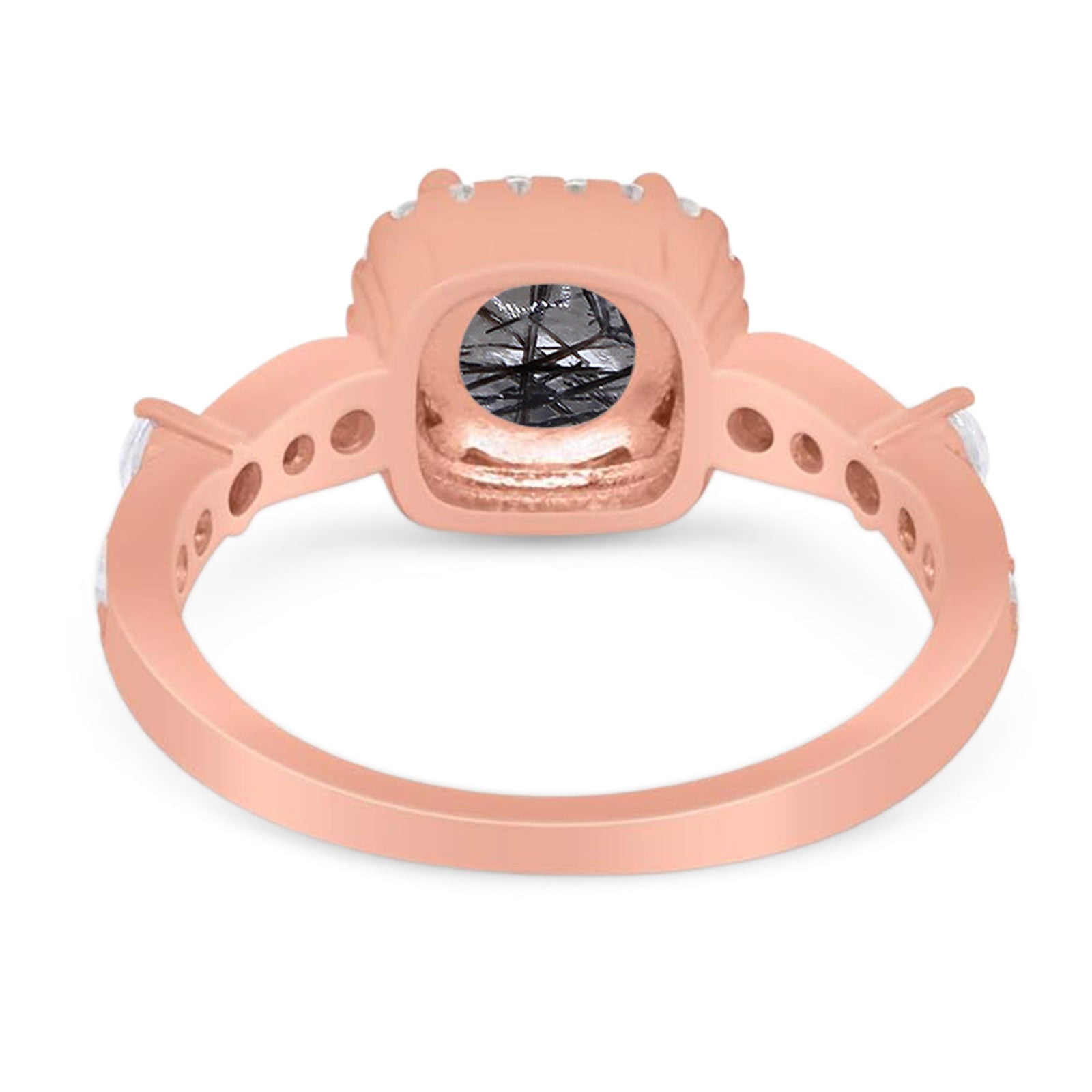 Art Deco Round Natural Rutilated Quartz Halo Accents Ring 925 Sterling Silver