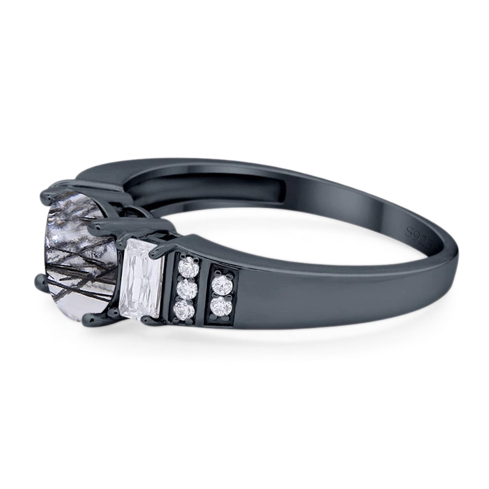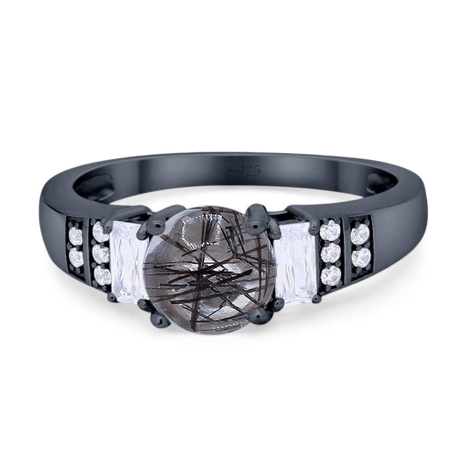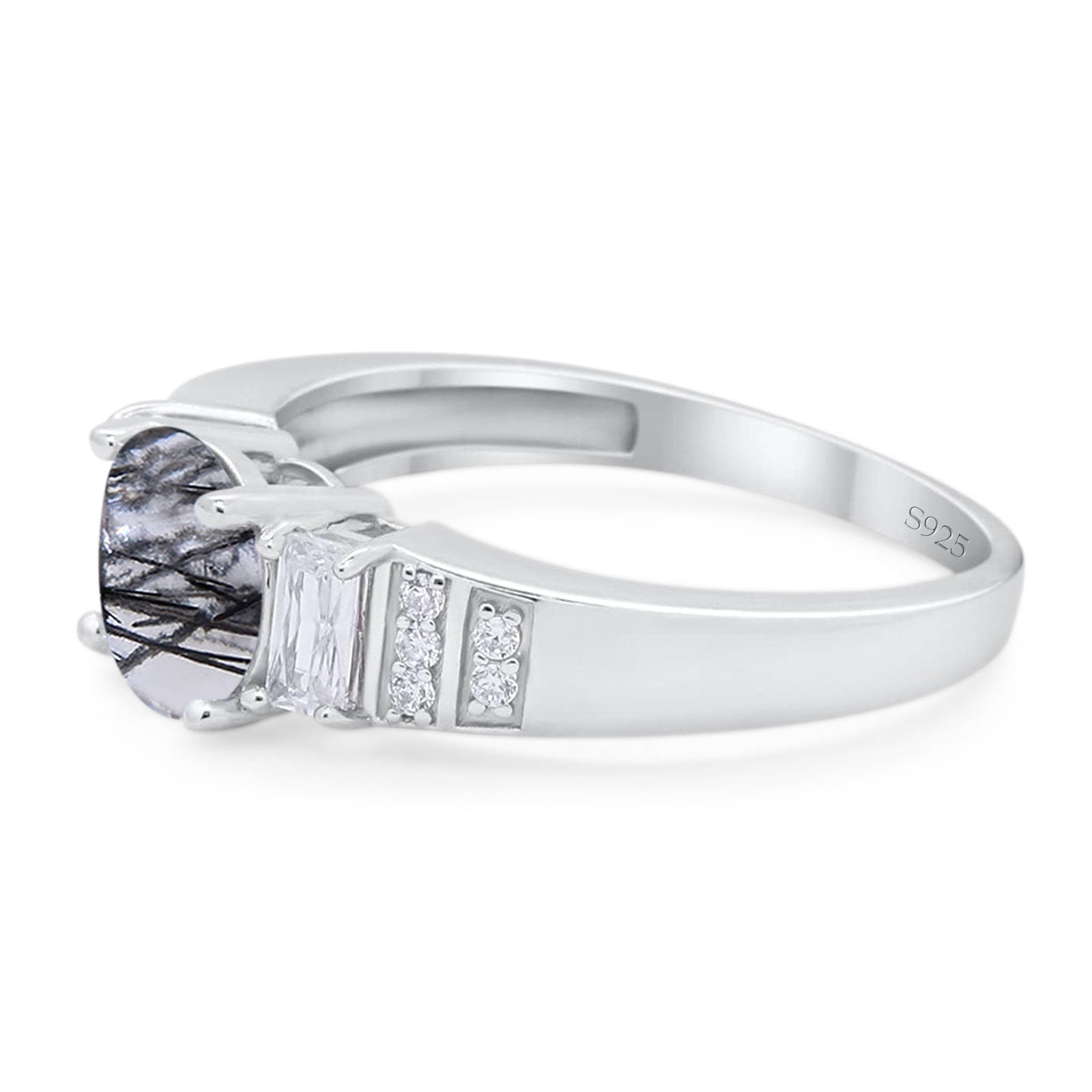 Natural Rutilated Quartz Black Tone Silver