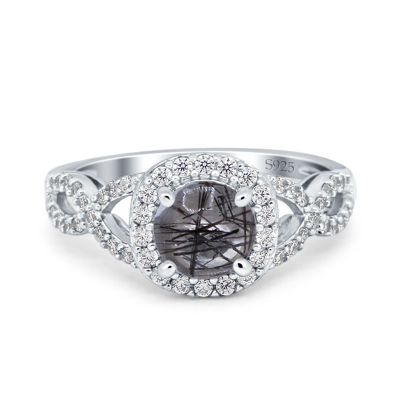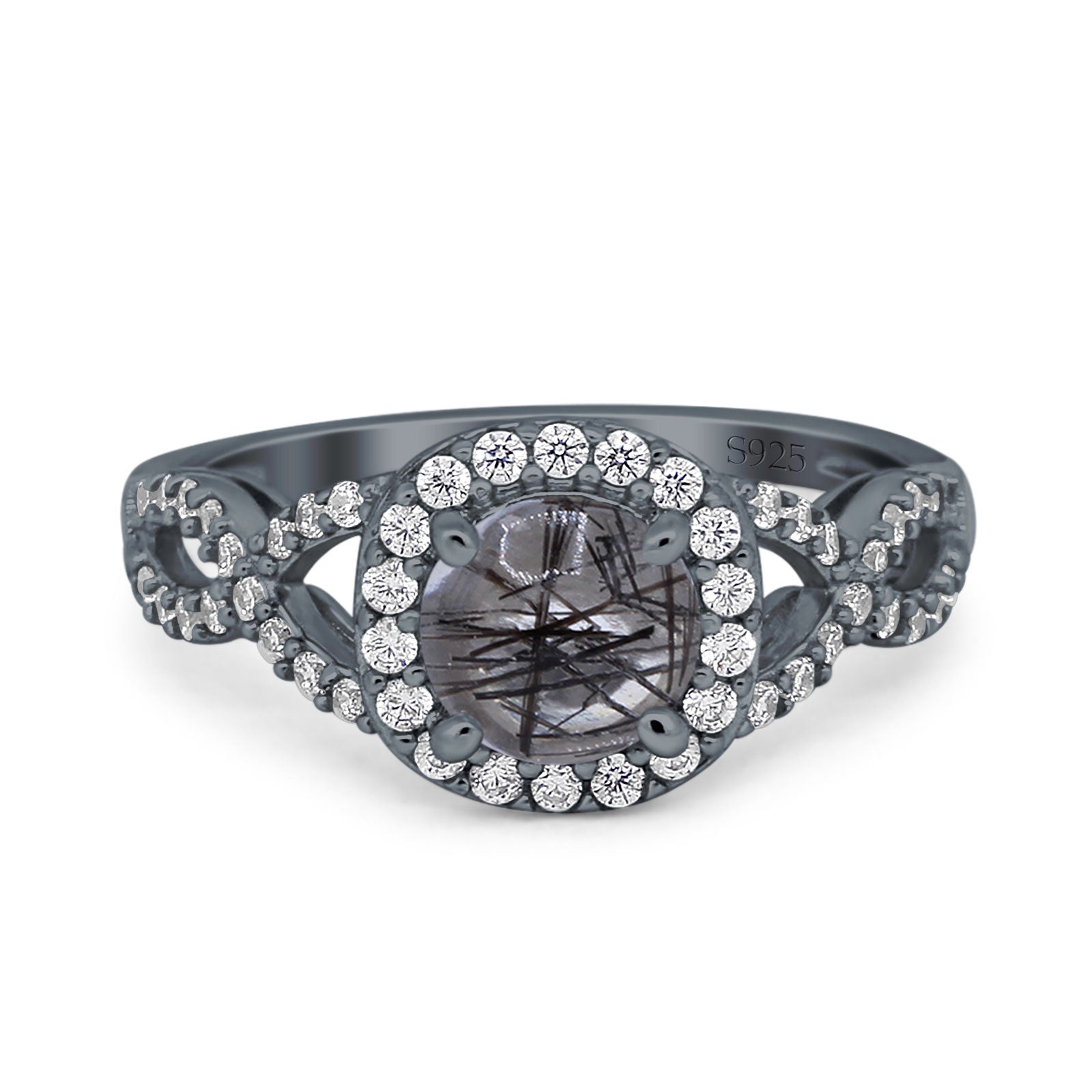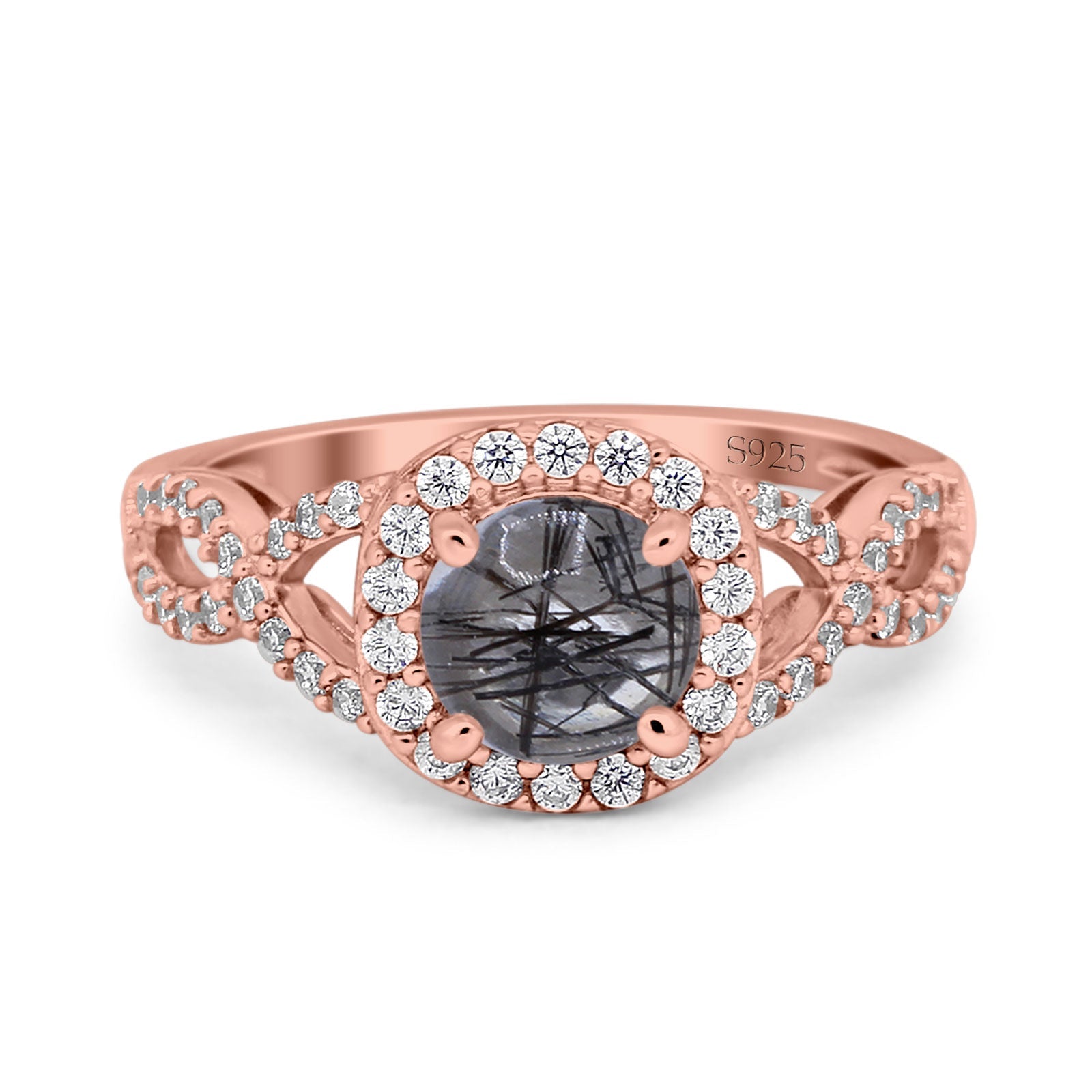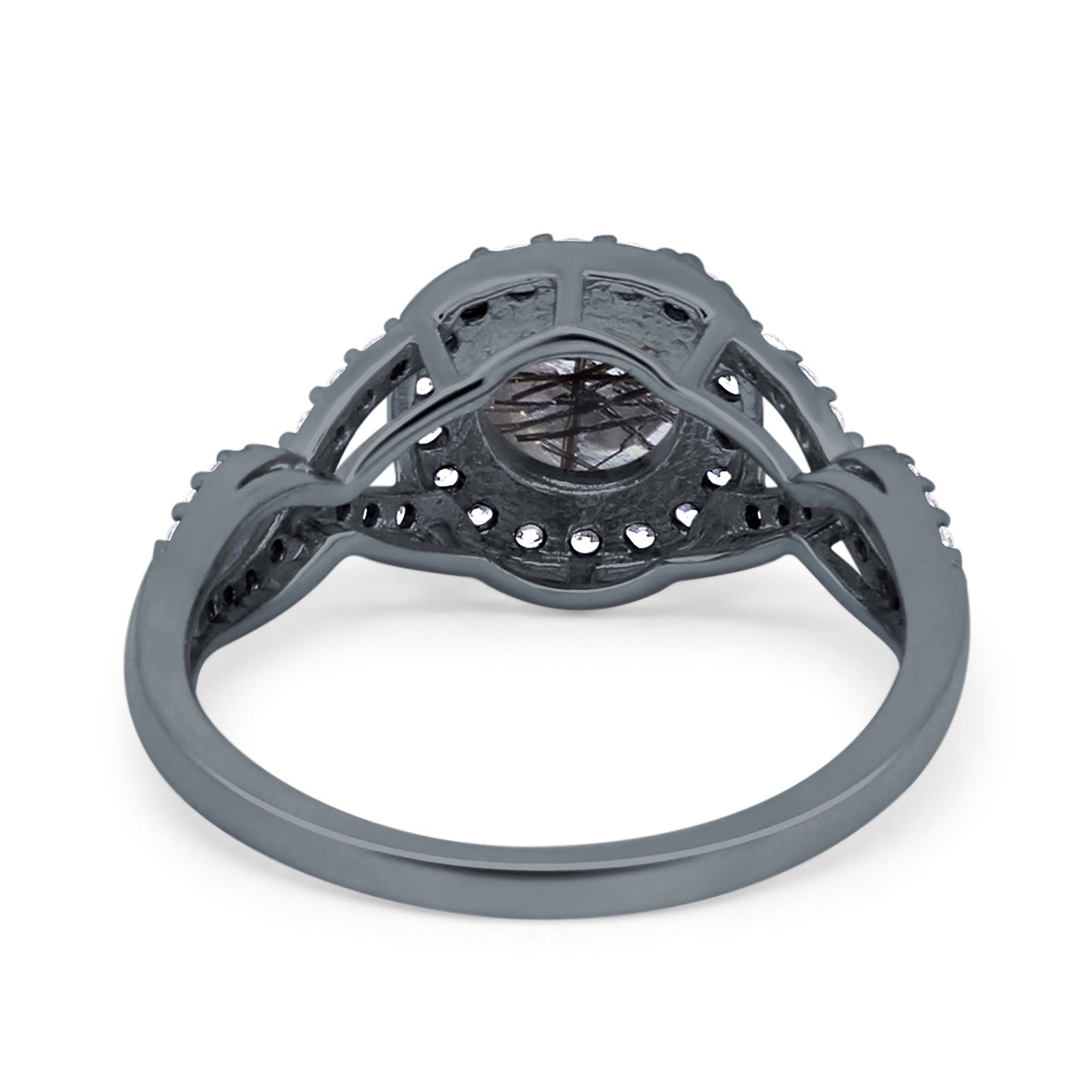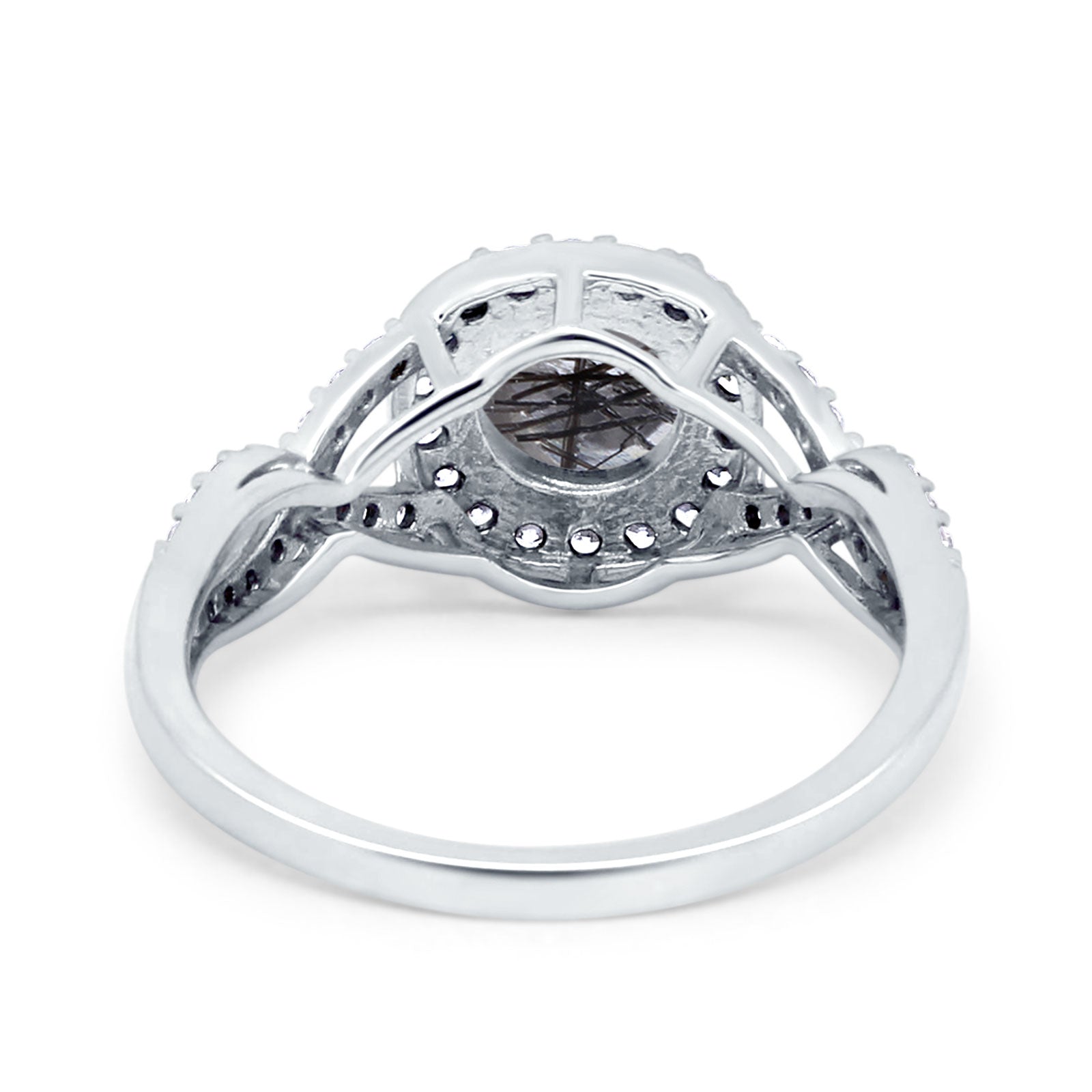 Art Deco Round Natural Rutilated Quartz Twisted Ring 925 Sterling Silver