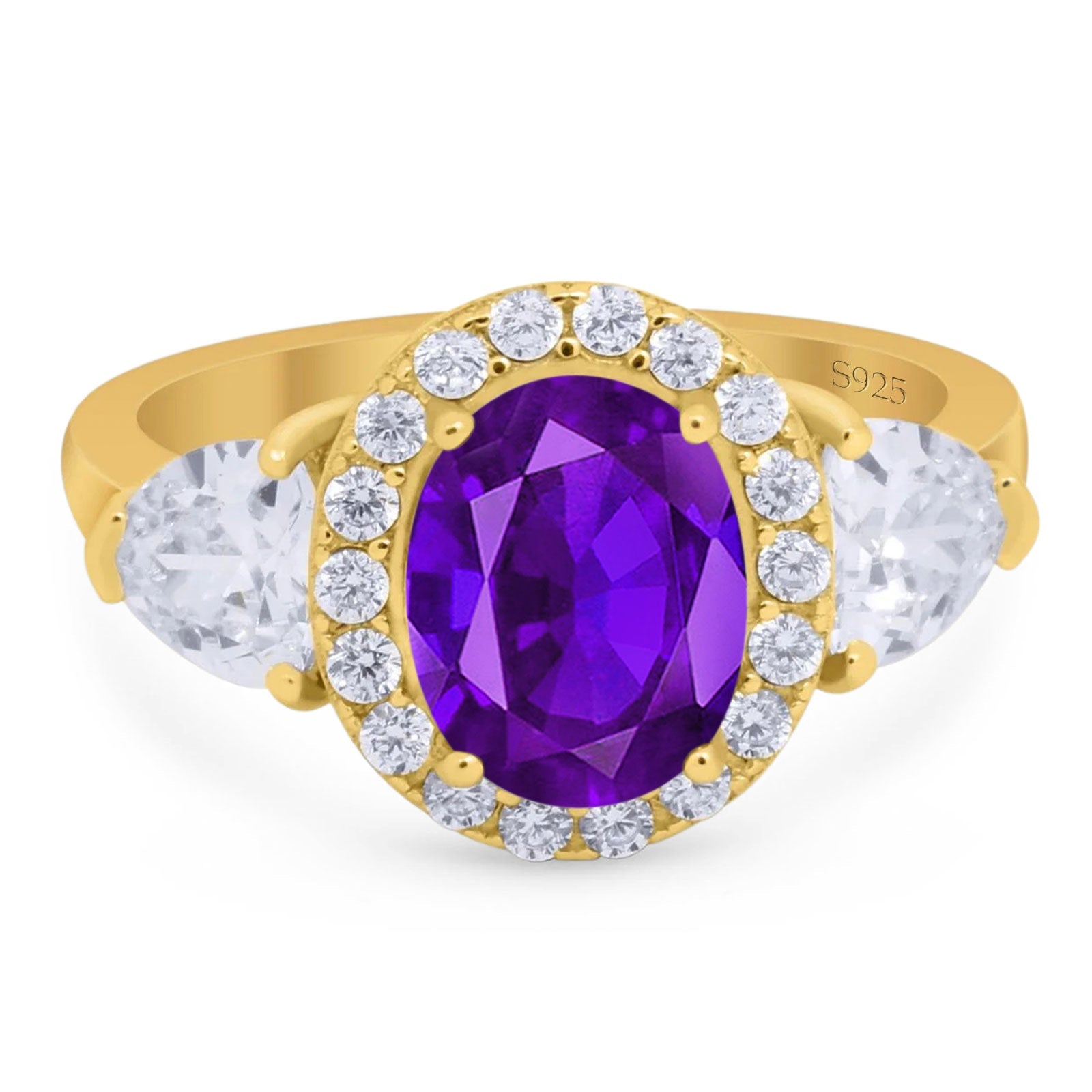 Art Deco Three Stone Oval Natural Amethyst Trio Ring 925 Sterling Silver