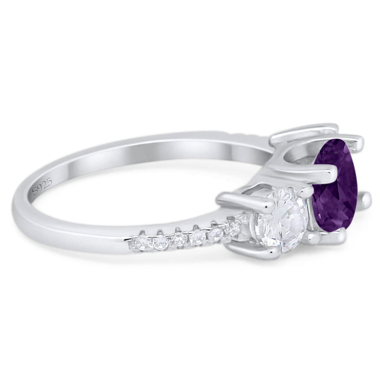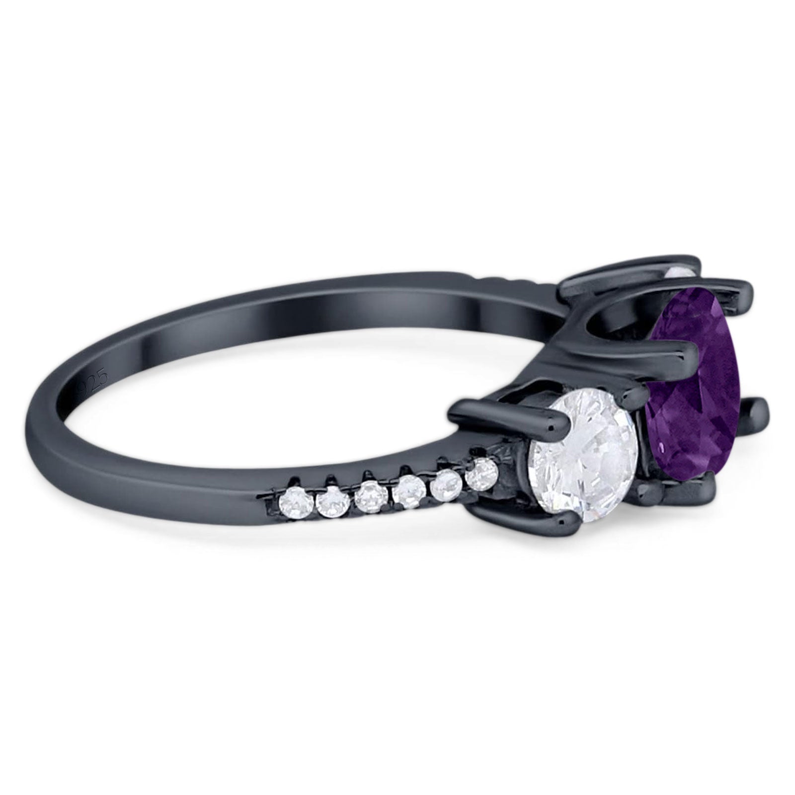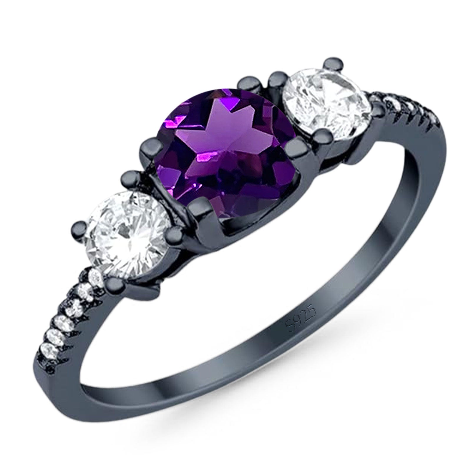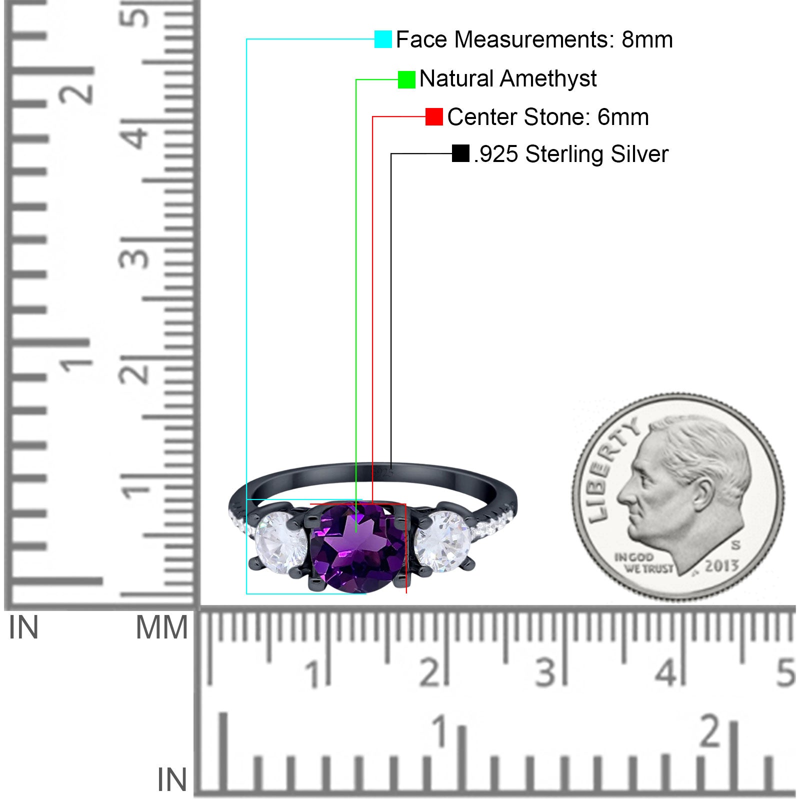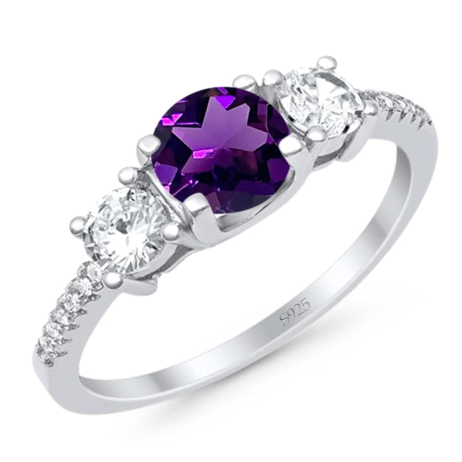 Art Deco Three Stone Round Natural Amethyst Wedding Ring 925 Sterling Silver
