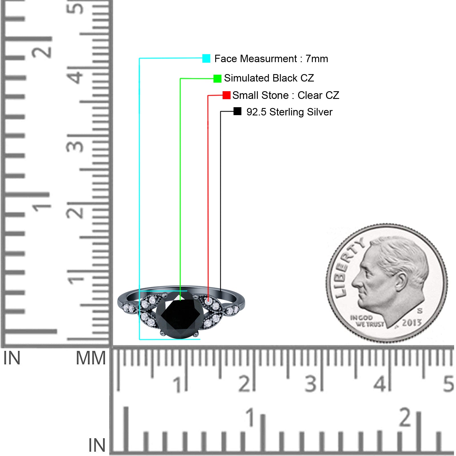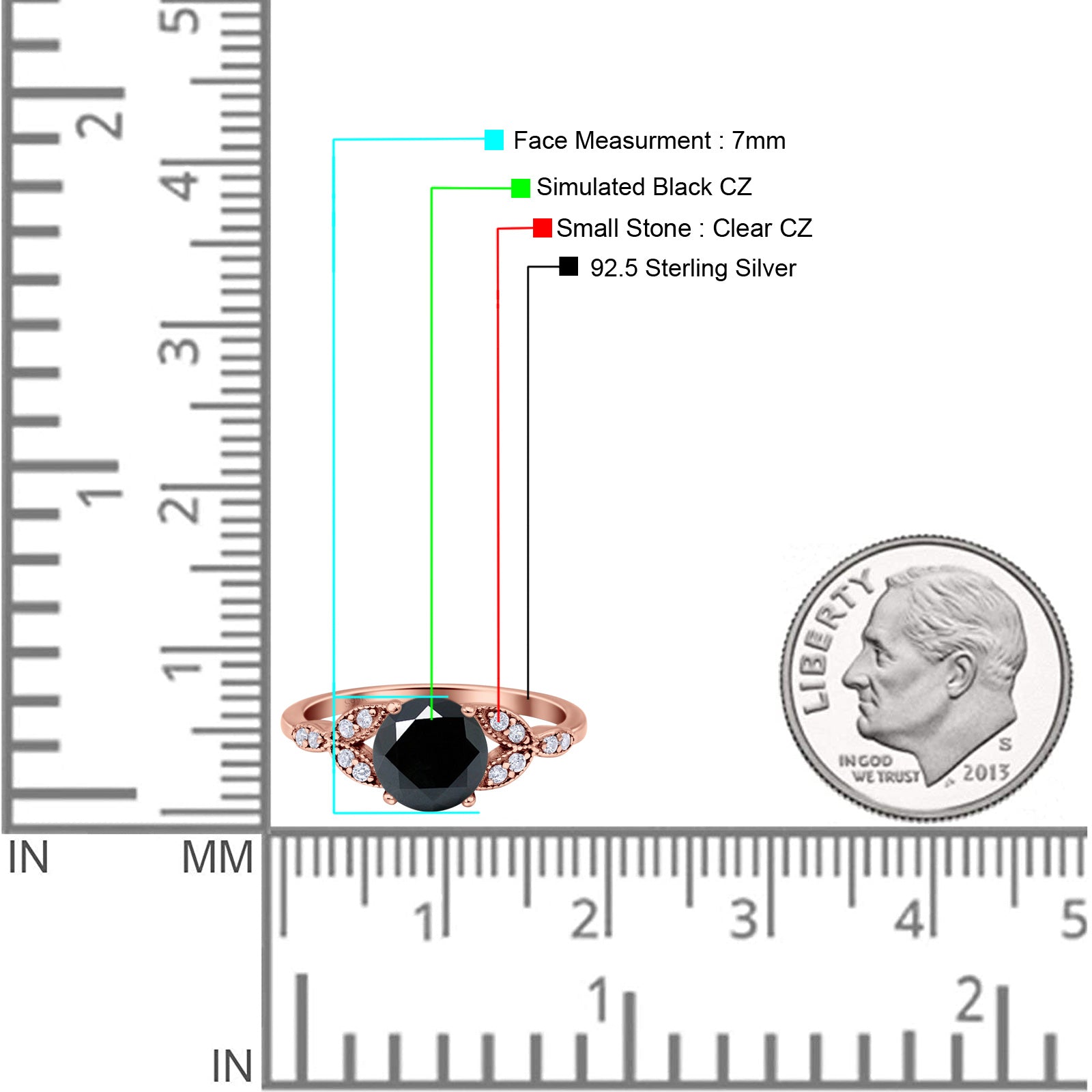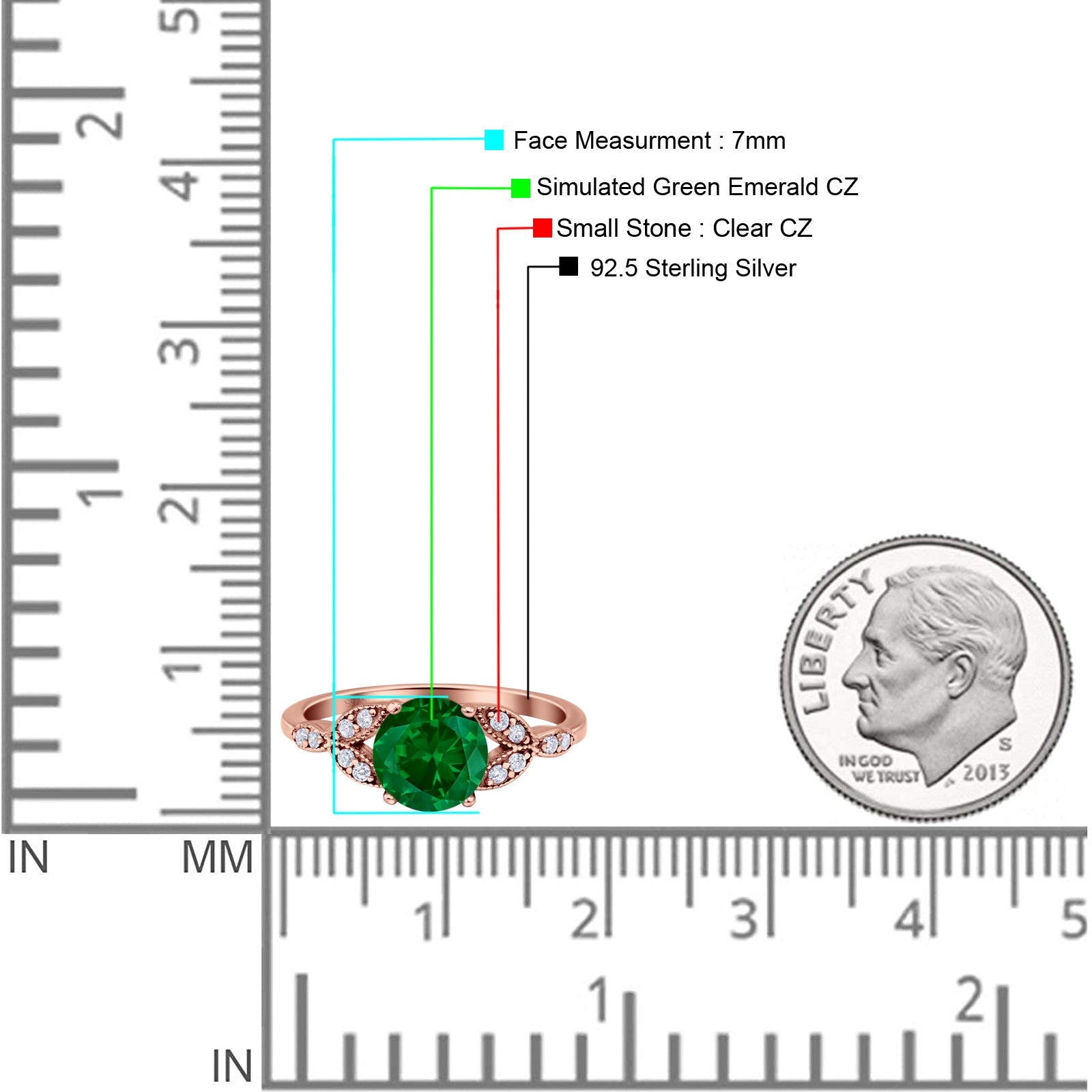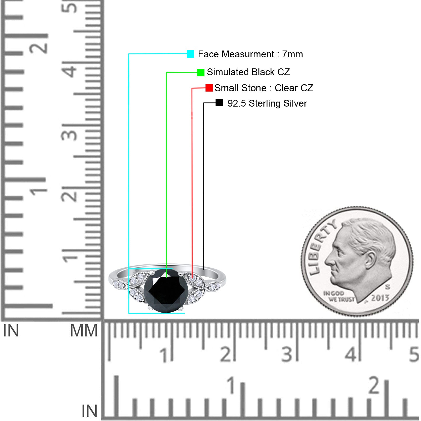 Art Deco Vintage Style Round Simulated Cubic Zirconia Wedding Engagement Ring 925 Sterling Silver