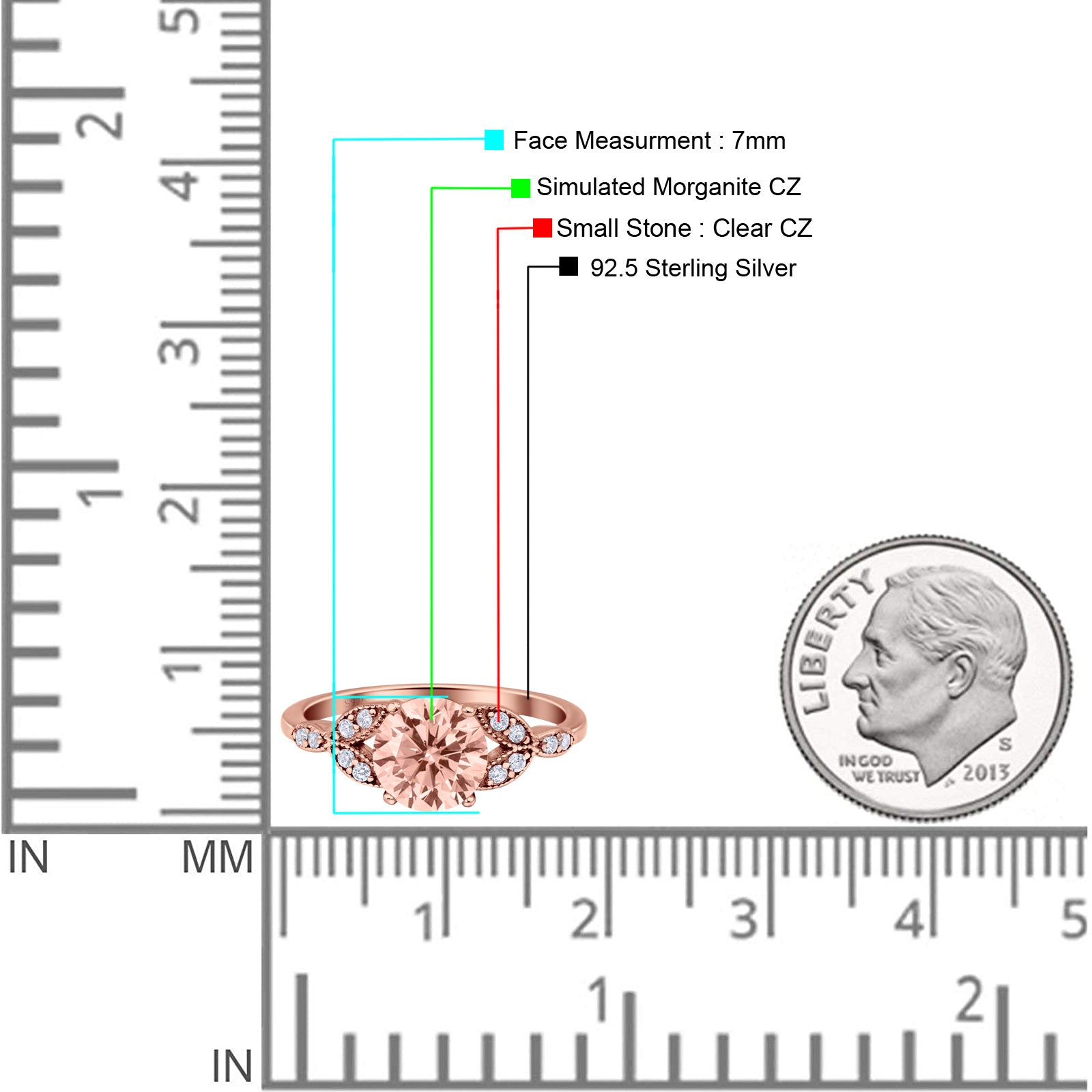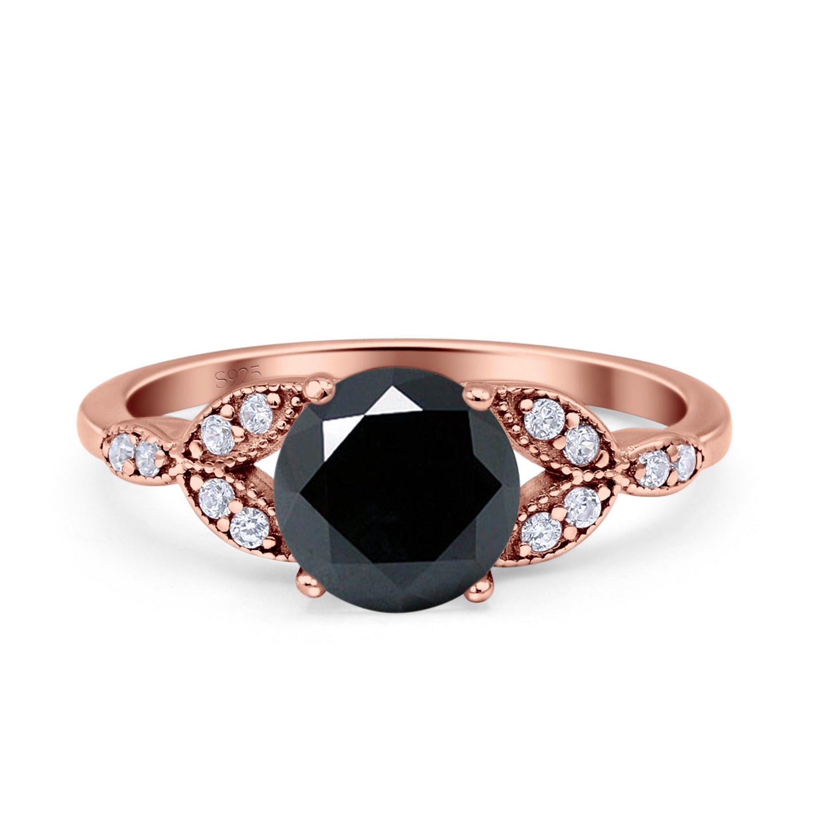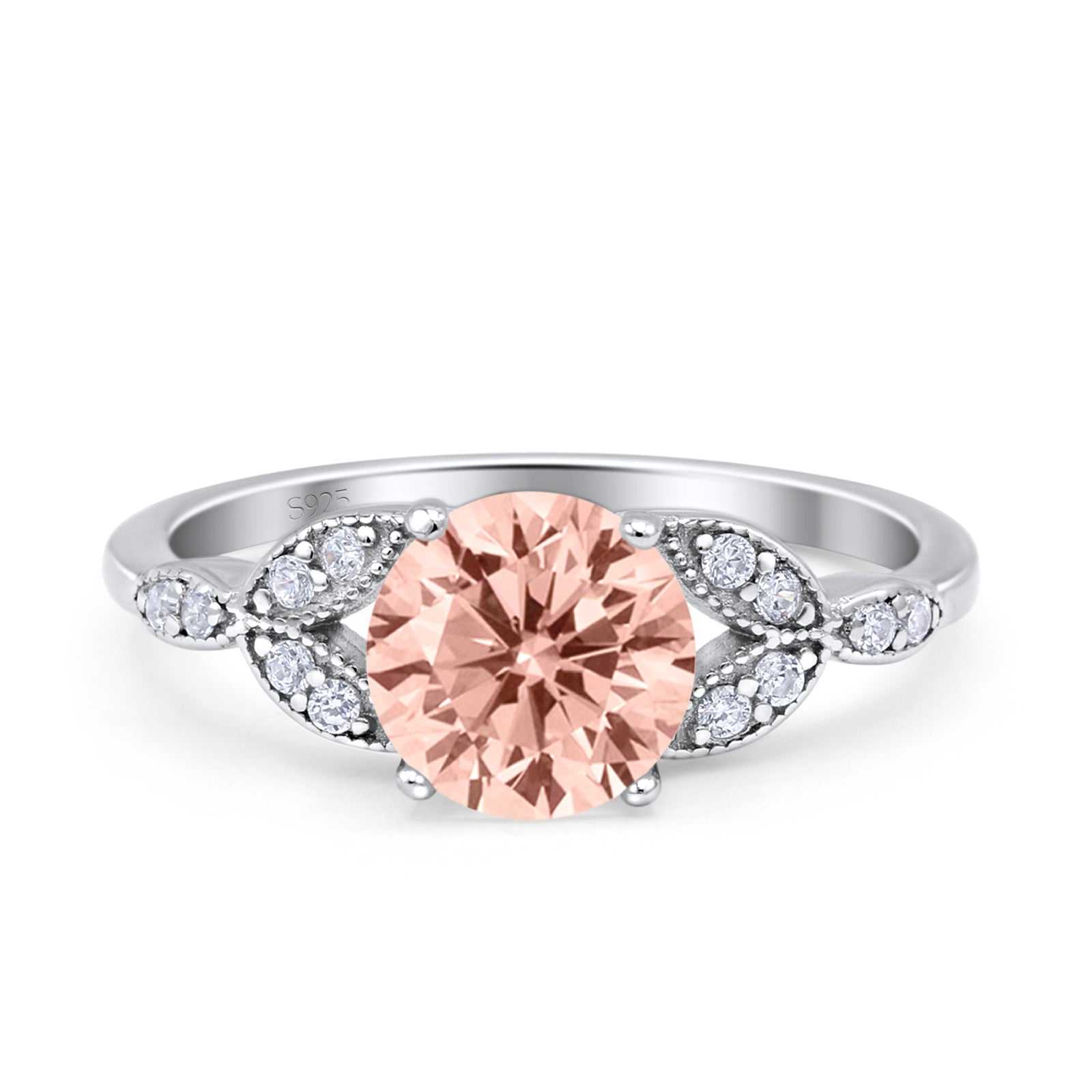 Art Deco Vintage Style Round Simulated Cubic Zirconia Wedding Engagement Ring 925 Sterling Silver