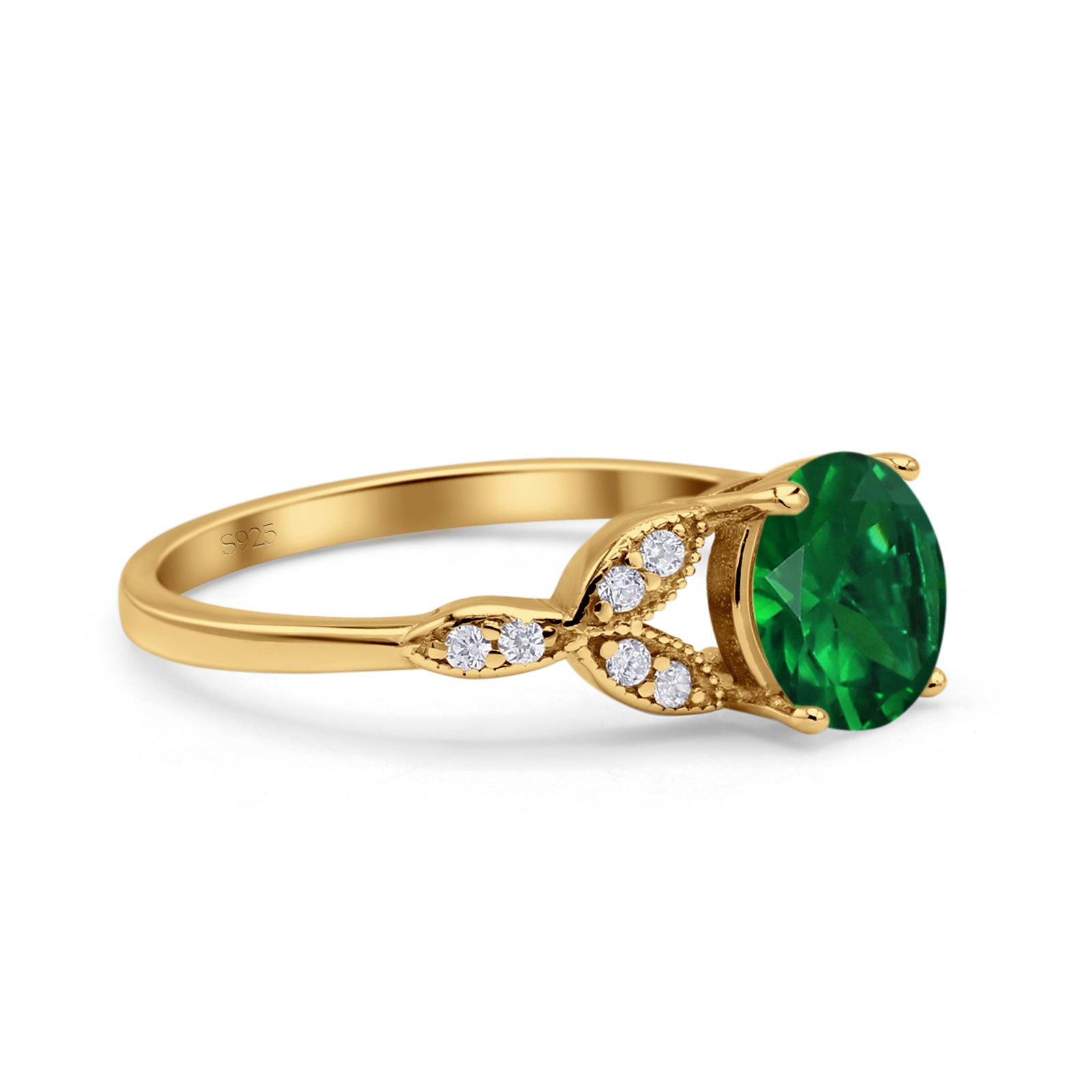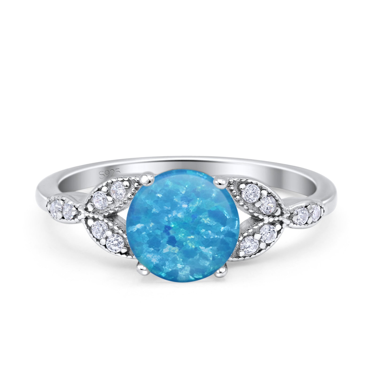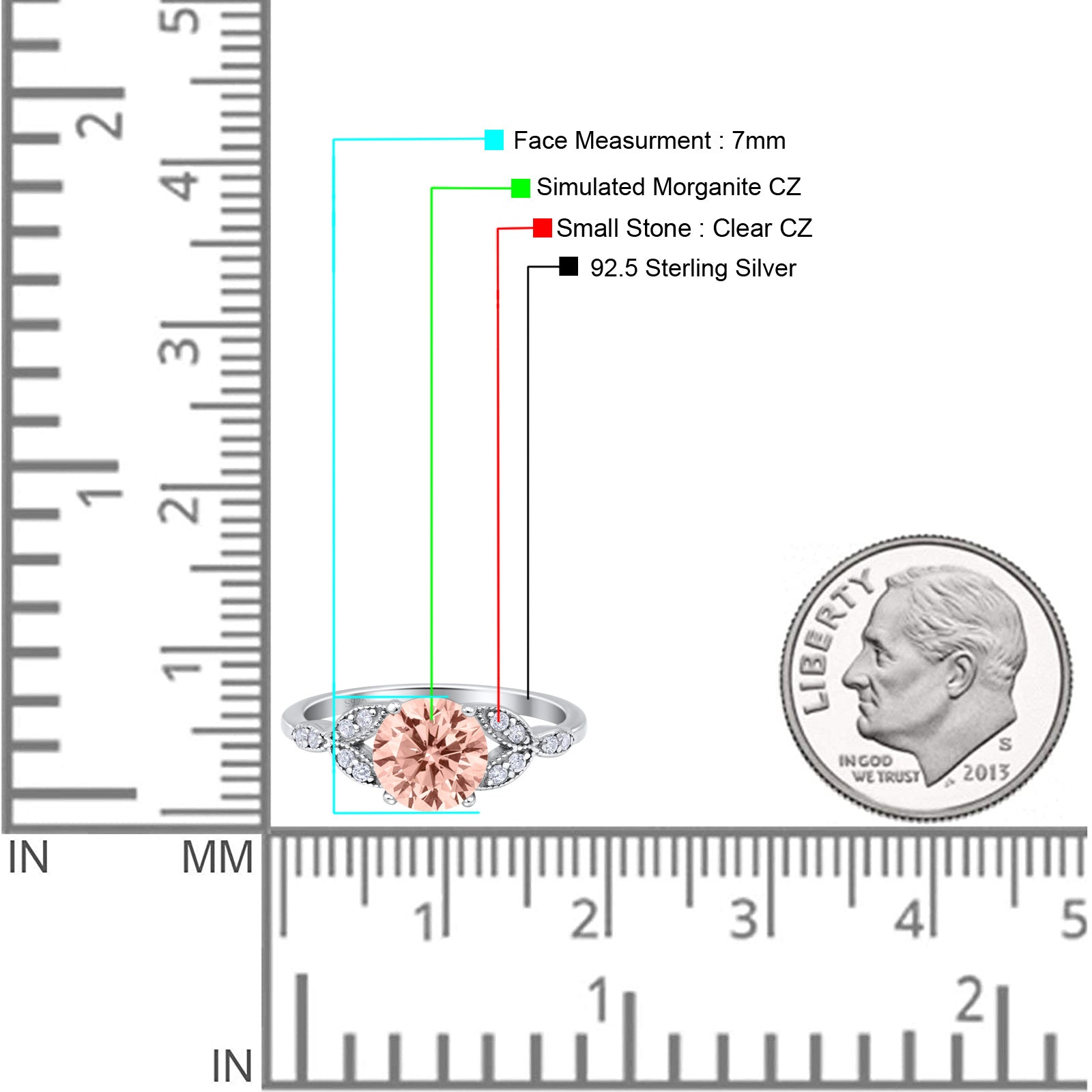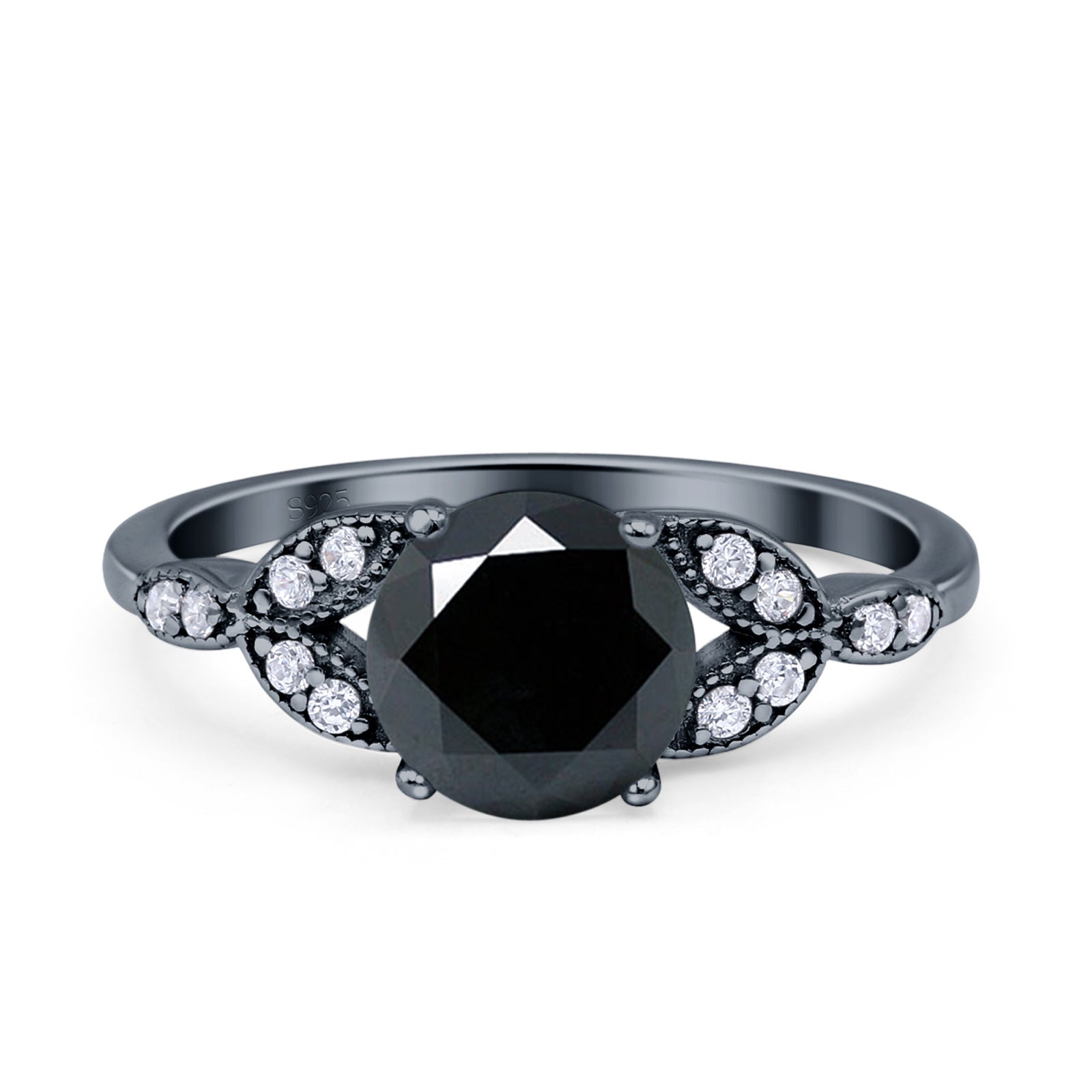 Art Deco Vintage Style Round Simulated Cubic Zirconia Wedding Engagement Ring 925 Sterling Silver