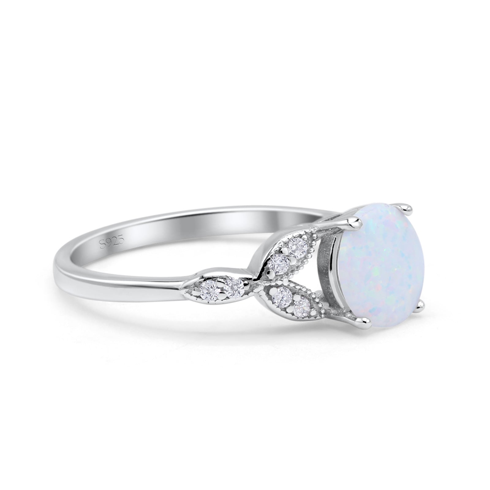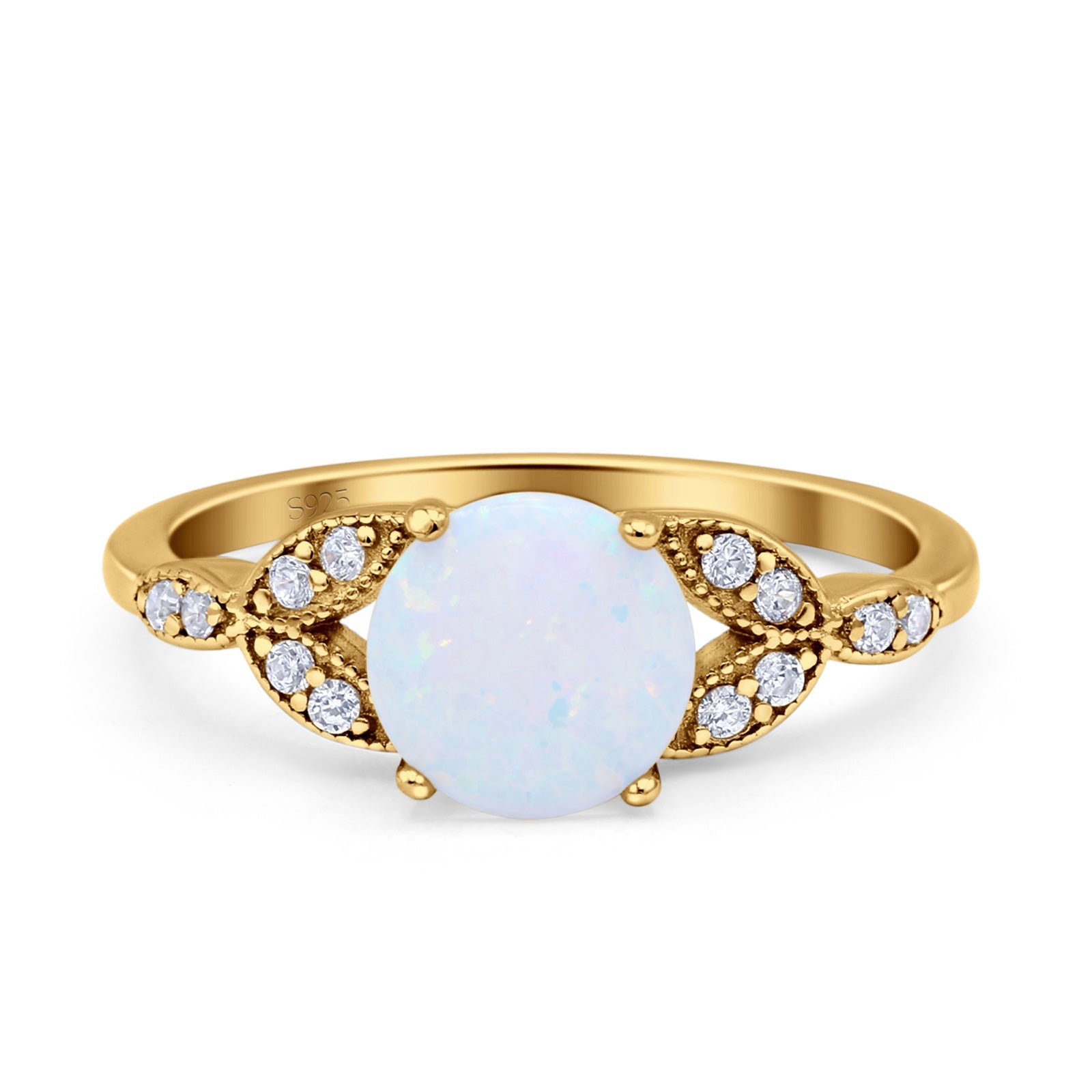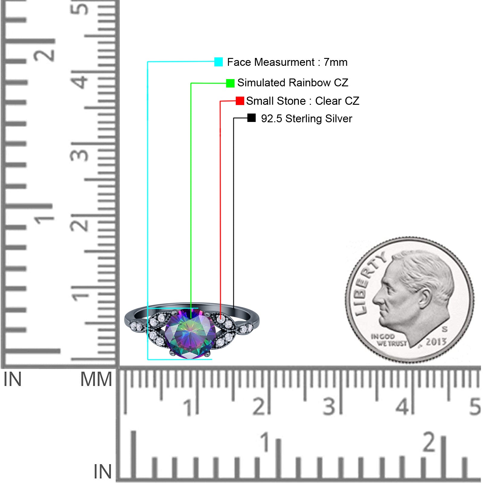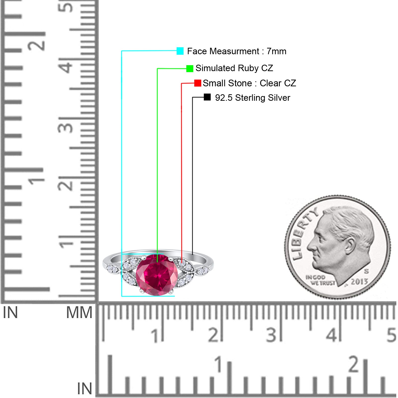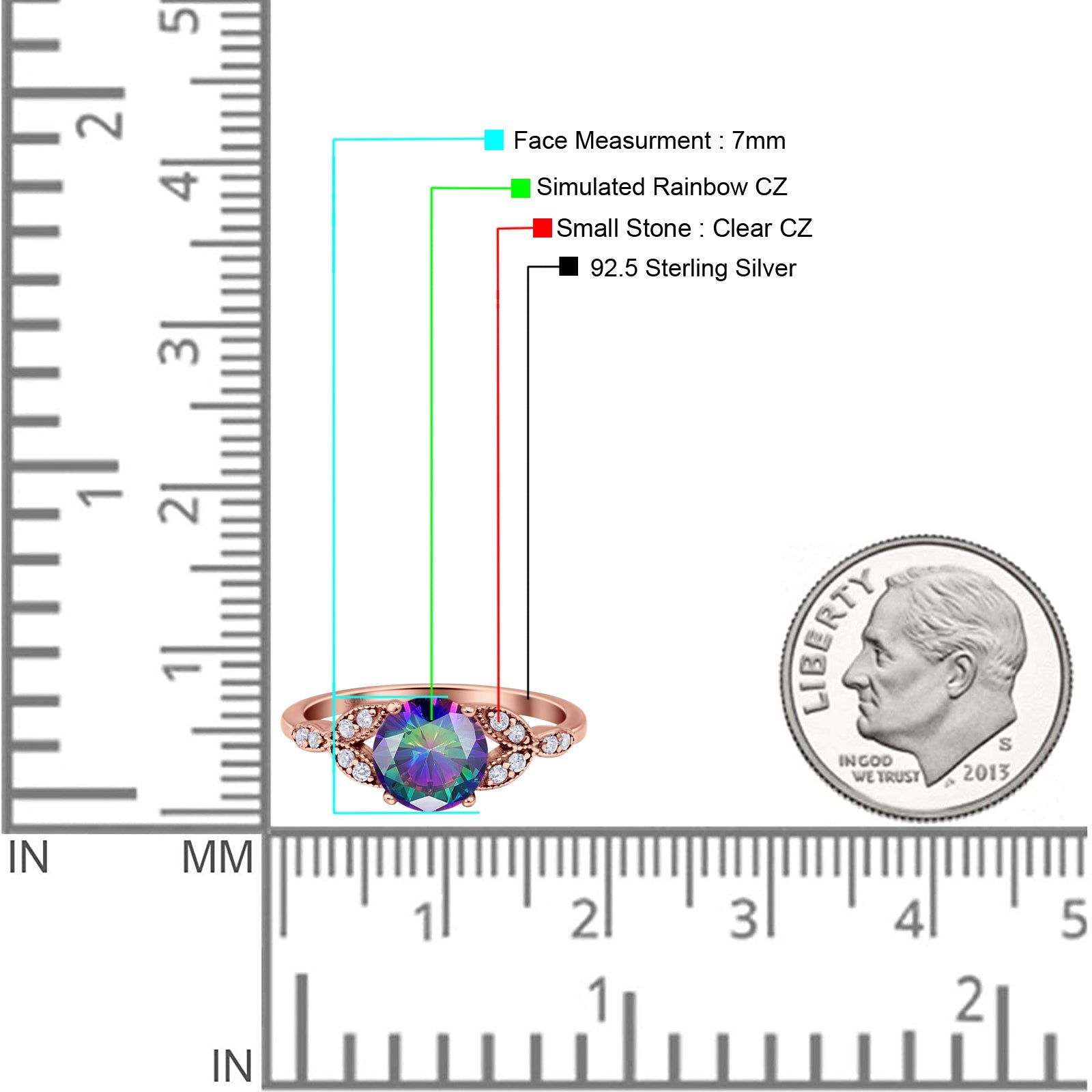 Art Deco Vintage Style Round Simulated Cubic Zirconia Wedding Engagement Ring 925 Sterling Silver