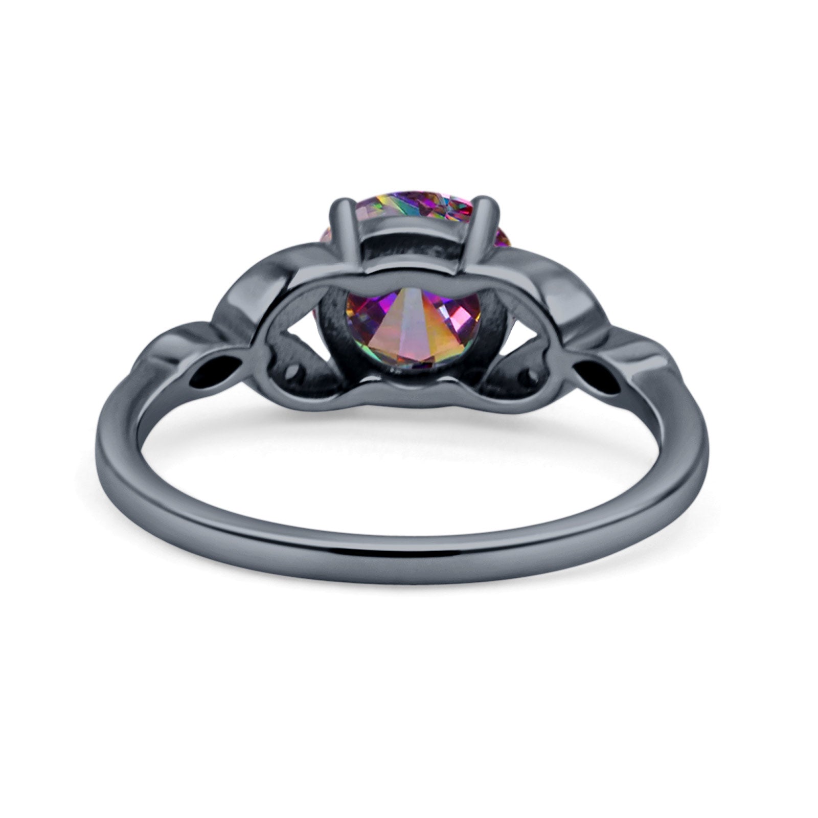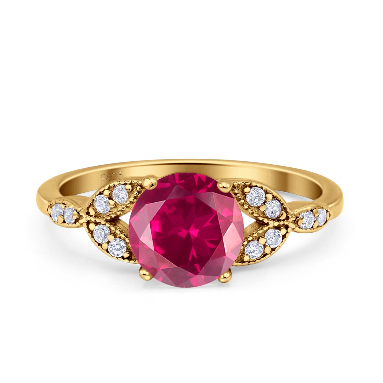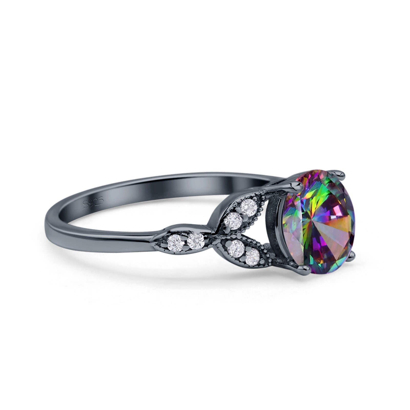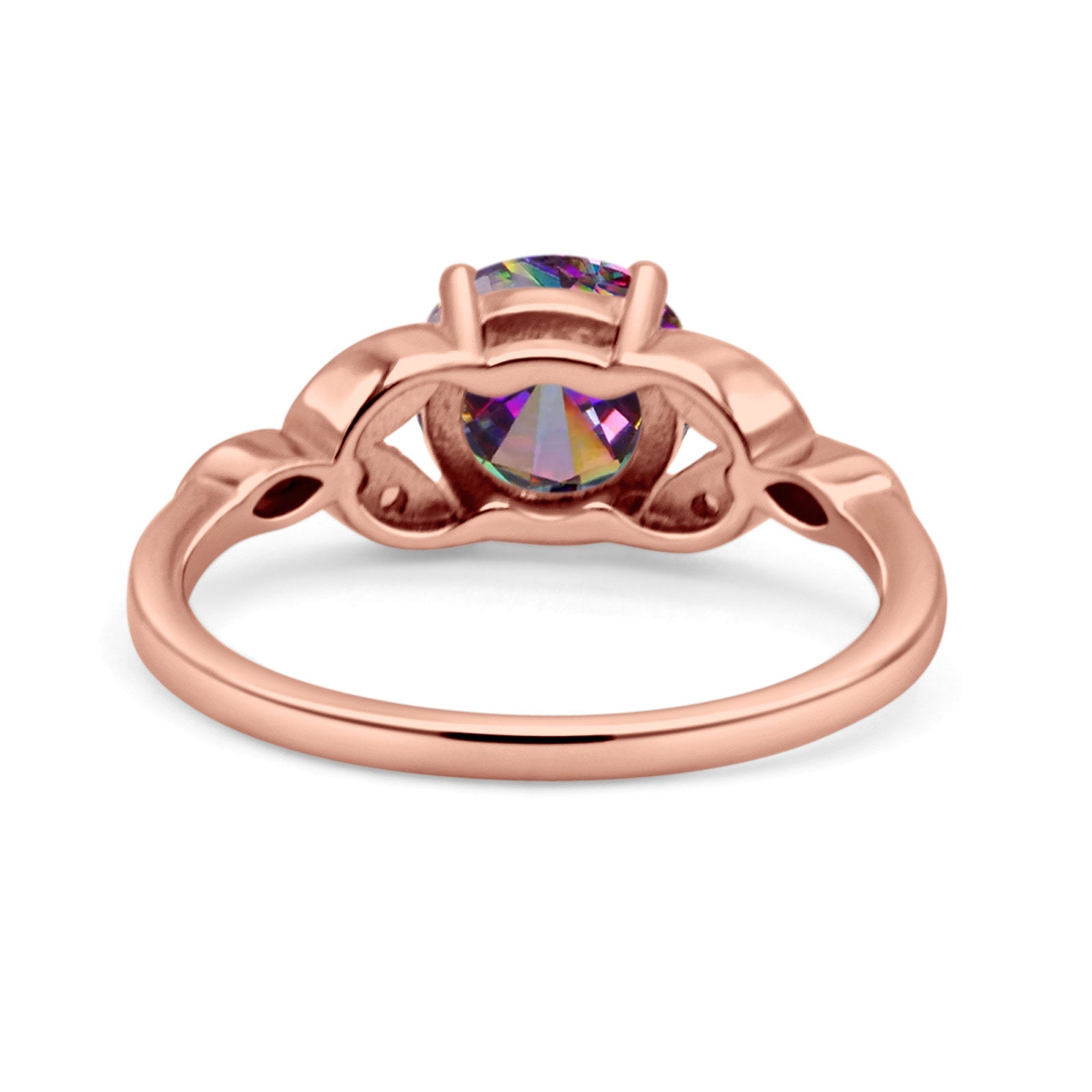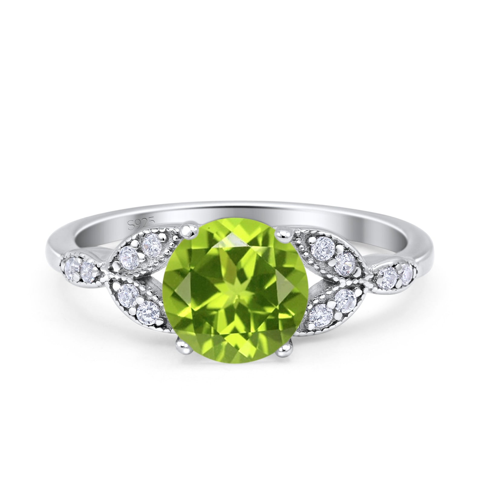 Art Deco Vintage Style Round Simulated Cubic Zirconia Wedding Engagement Ring 925 Sterling Silver