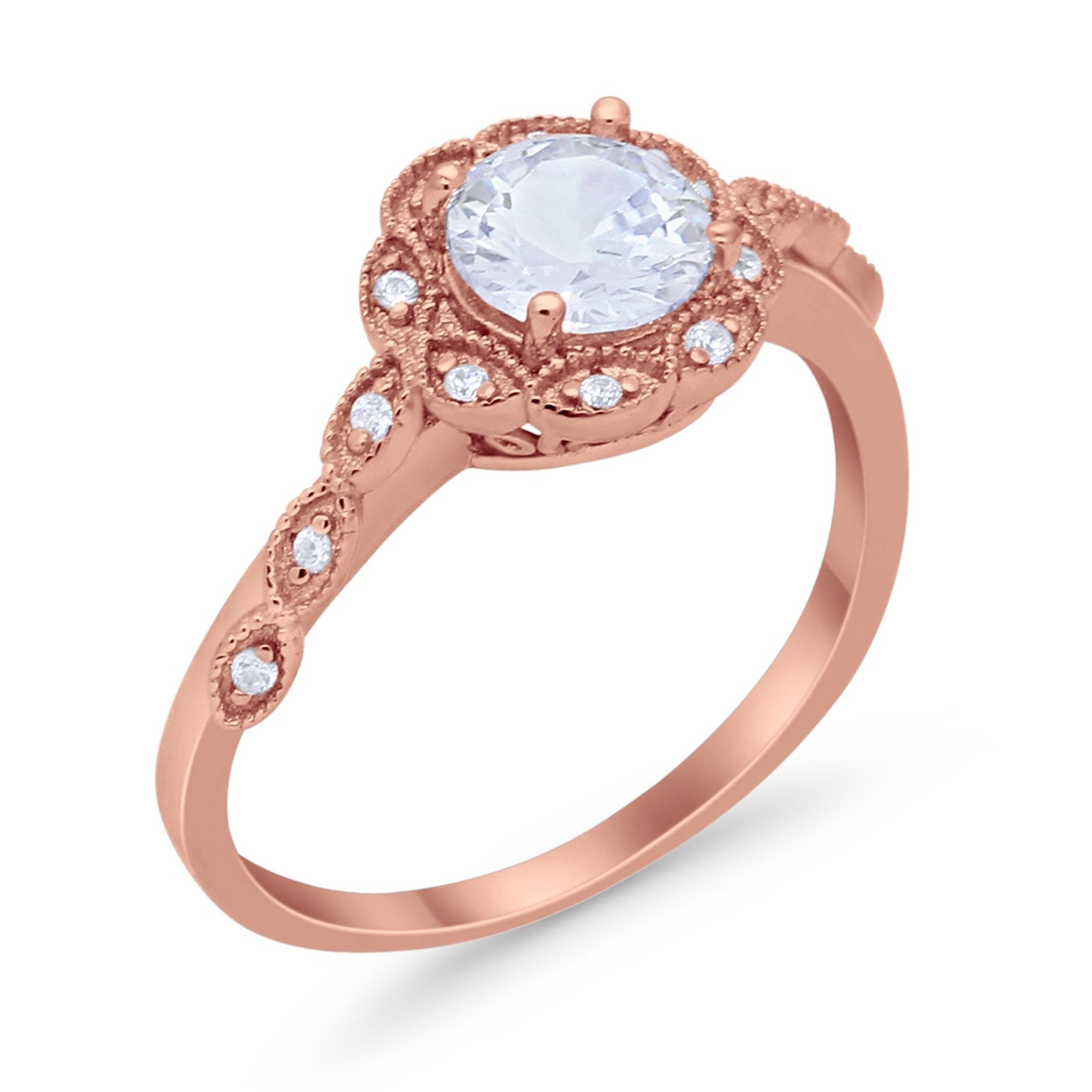 CZ & Blue Sapphire CZ Rose Tone Silver