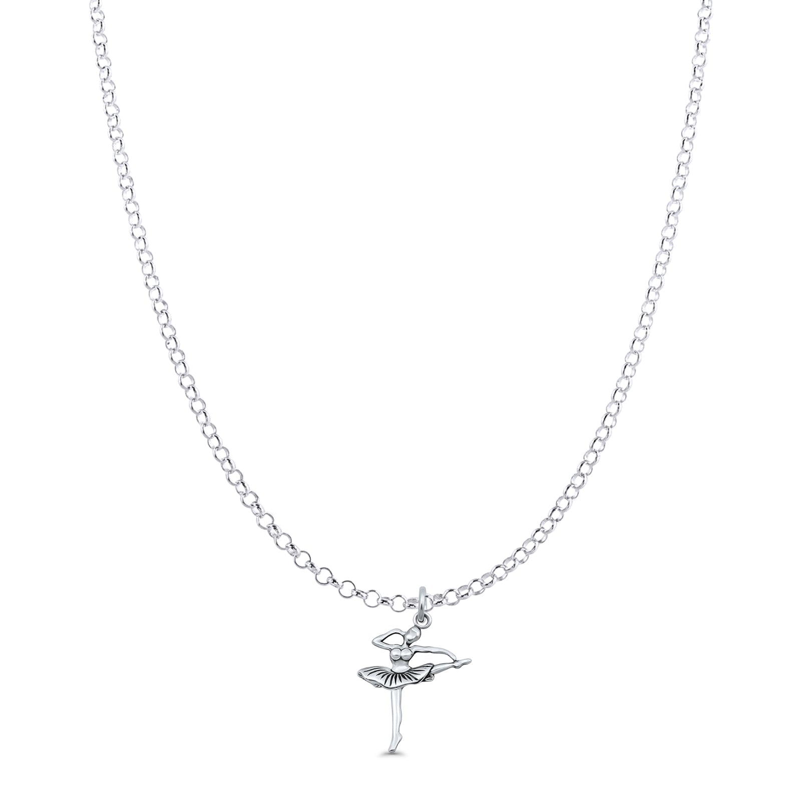 Ballet Dancer Pendant Oxidized Rolo Chain Necklace 925 Sterling Silver