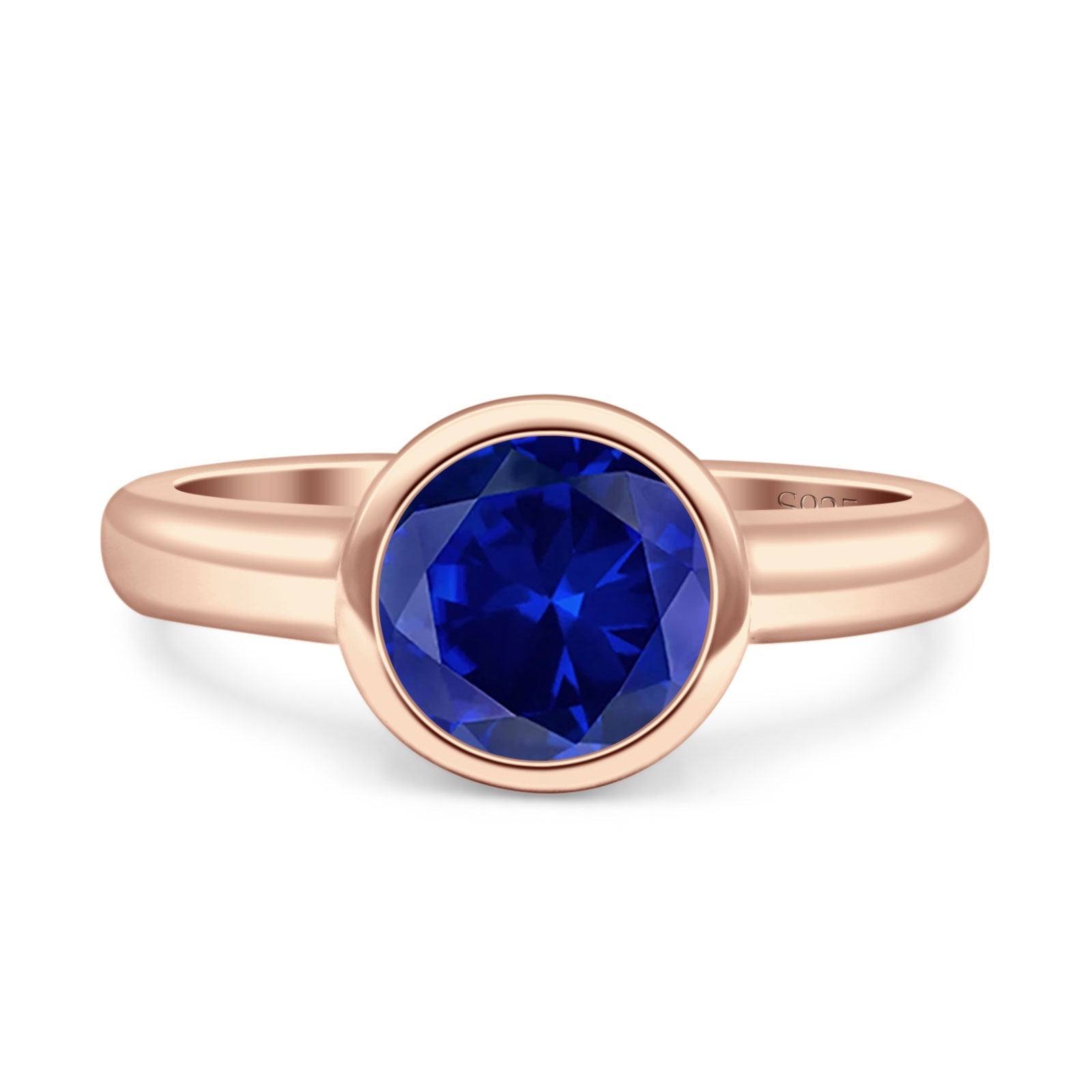 CZ & Blue Sapphire CZ Rose Tone Silver