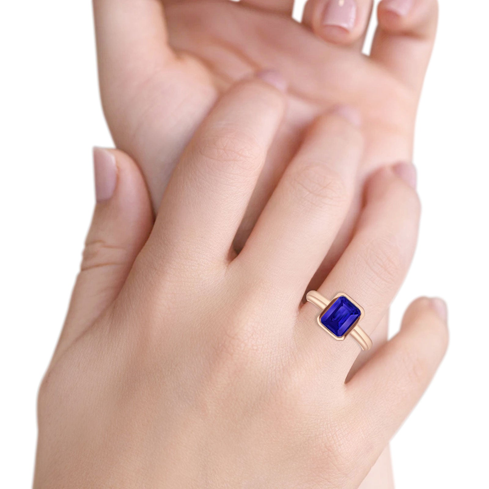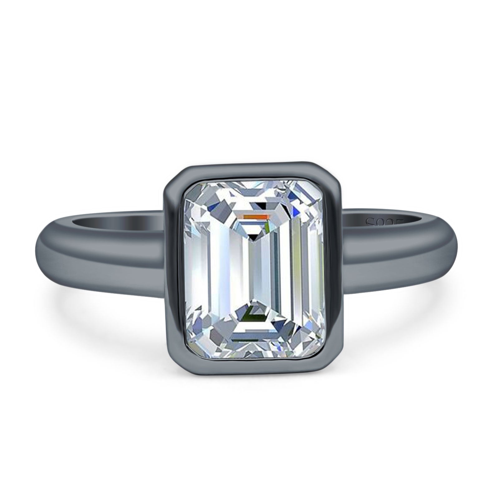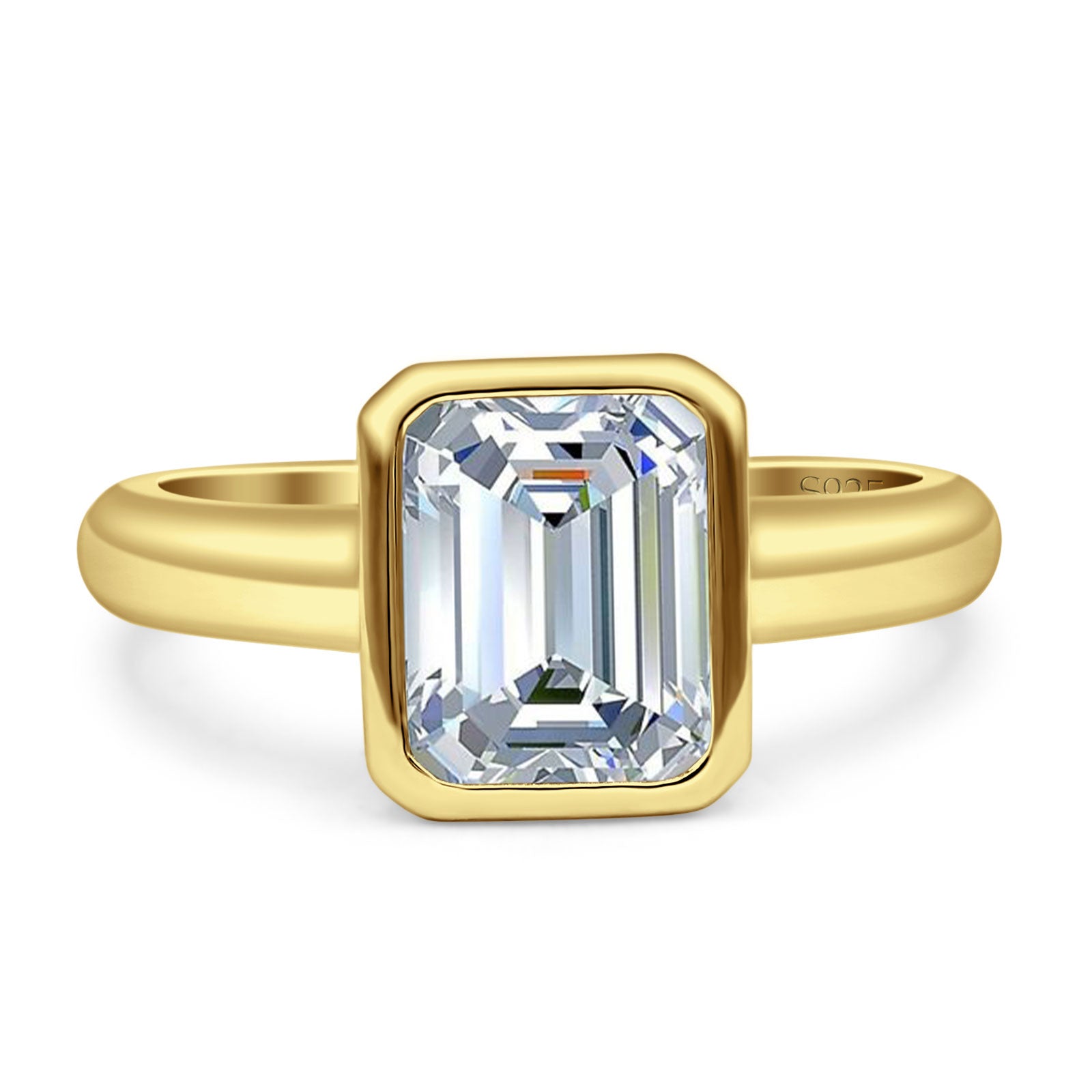 A bezel-set emerald shape engagement ring features a captivating emerald-cut gemstone securely held in place by a sleek metal rim, known as a bezel. This elegant design showcases the emerald's rectangular shape and step-cut facets, emphasizing its inherent beauty and allure. The bezel setting offers both protection and a modern, minimalist aesthetic, ensuring the gemstone remains securely positioned while exuding a refined and sophisticated charm.