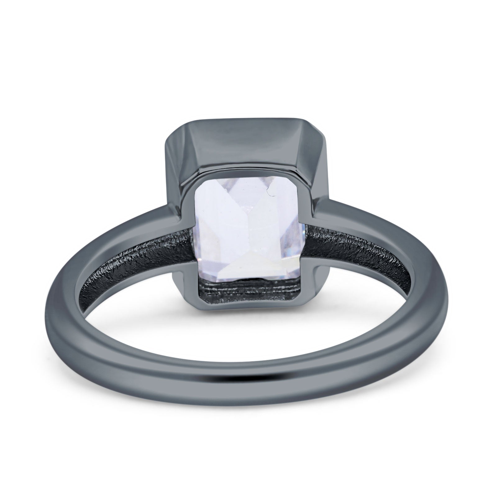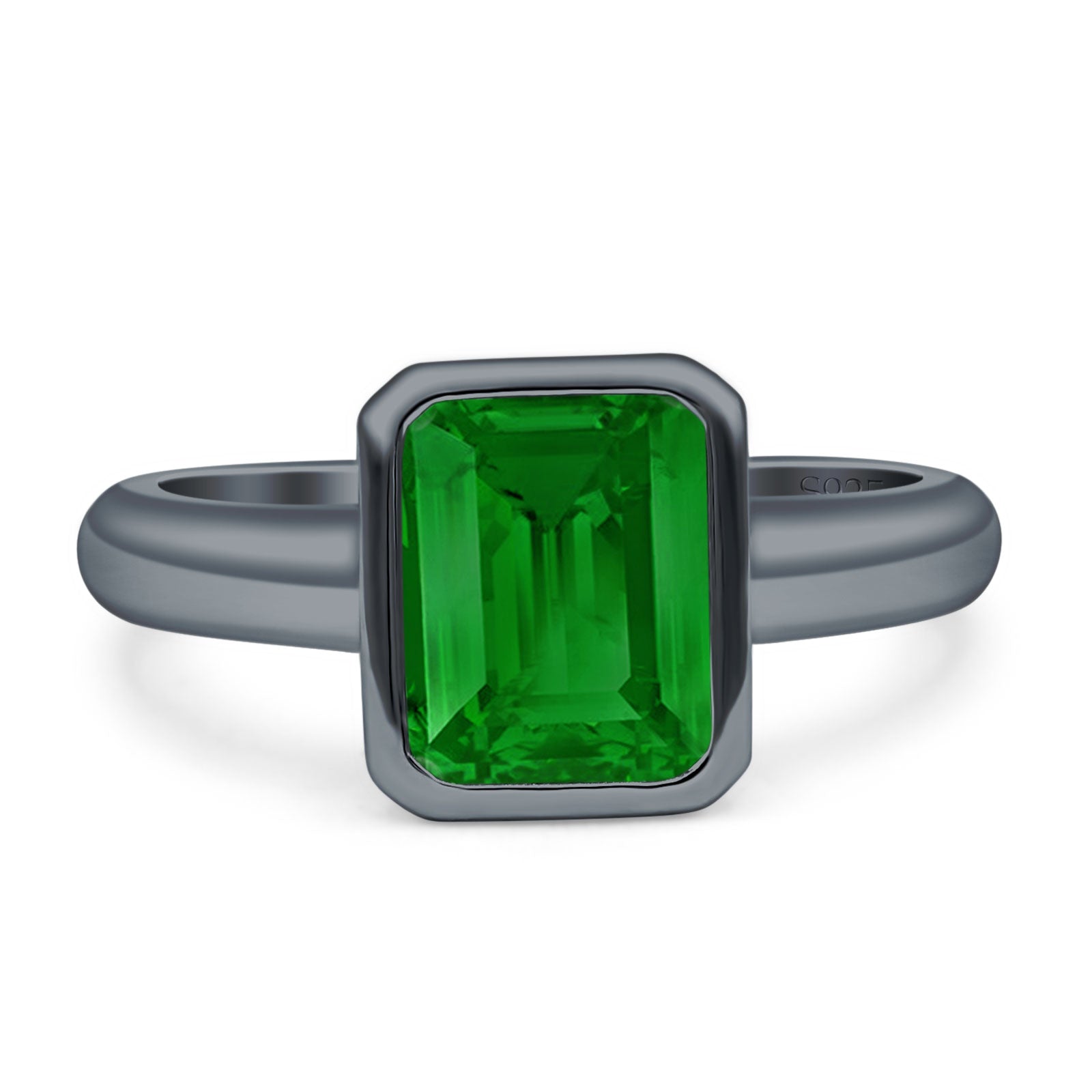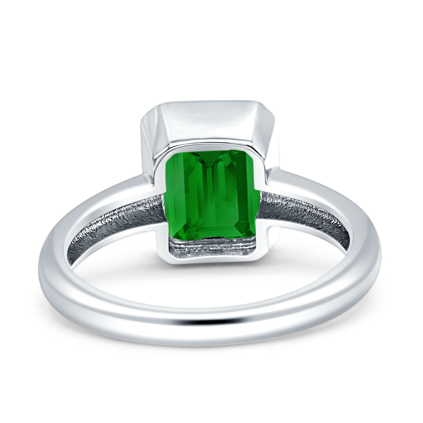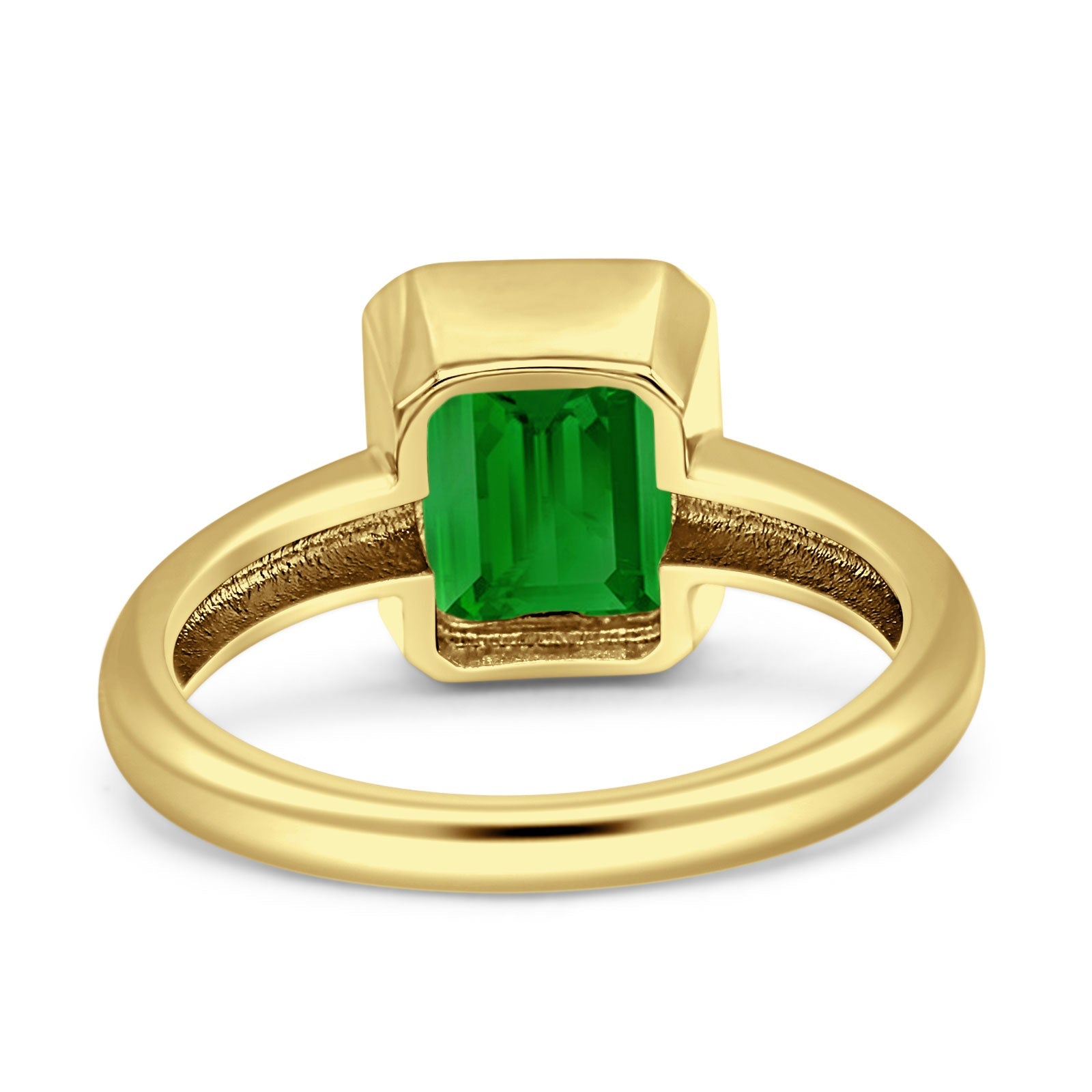A bezel-set emerald shape engagement ring features a captivating emerald-cut gemstone securely held in place by a sleek metal rim, known as a bezel. This elegant design showcases the emerald's rectangular shape and step-cut facets, emphasizing its inherent beauty and allure. The bezel setting offers both protection and a modern, minimalist aesthetic, ensuring the gemstone remains securely positioned while exuding a refined and sophisticated charm.