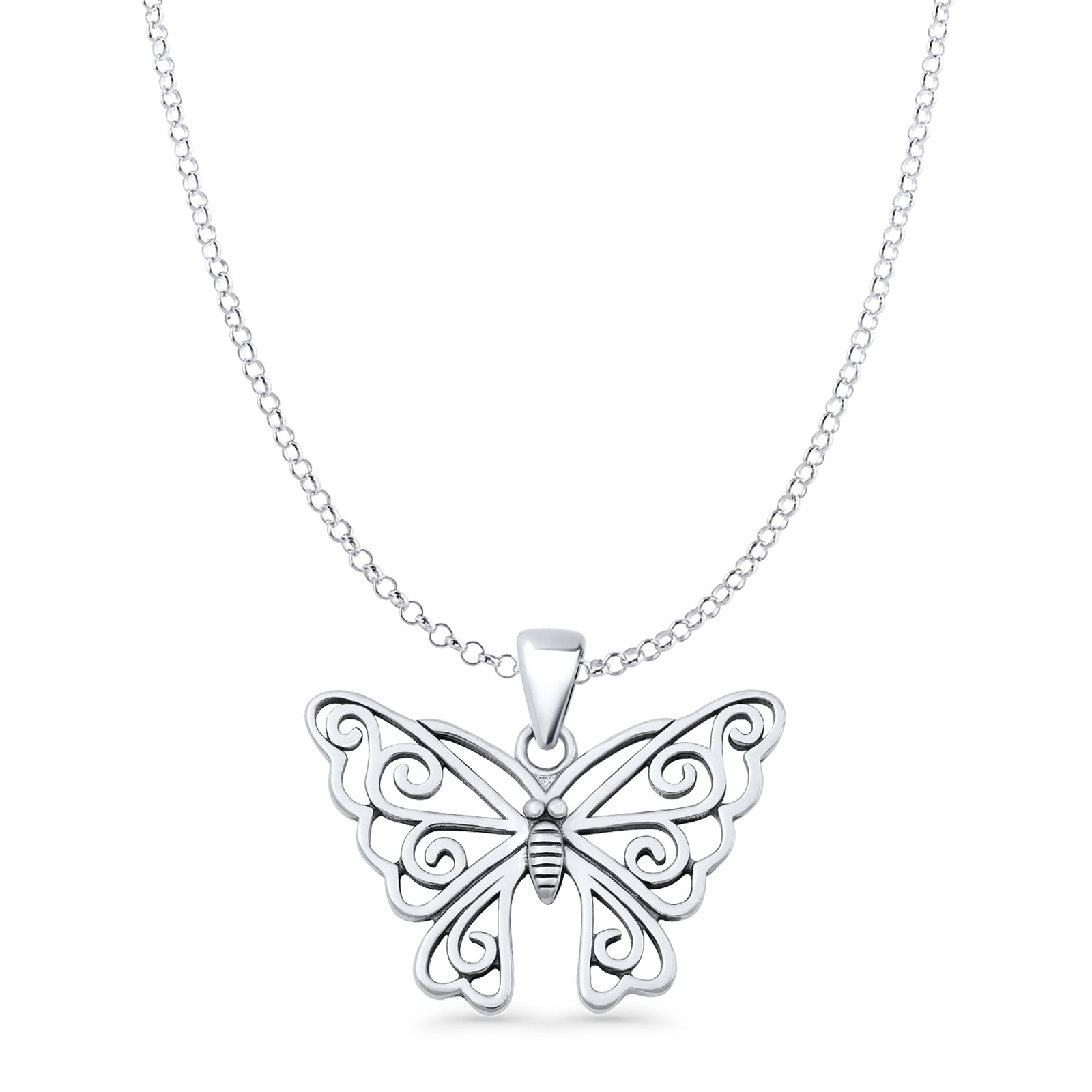 Style: Oxidized Butterfly Filigree Charm Pendant Necklace