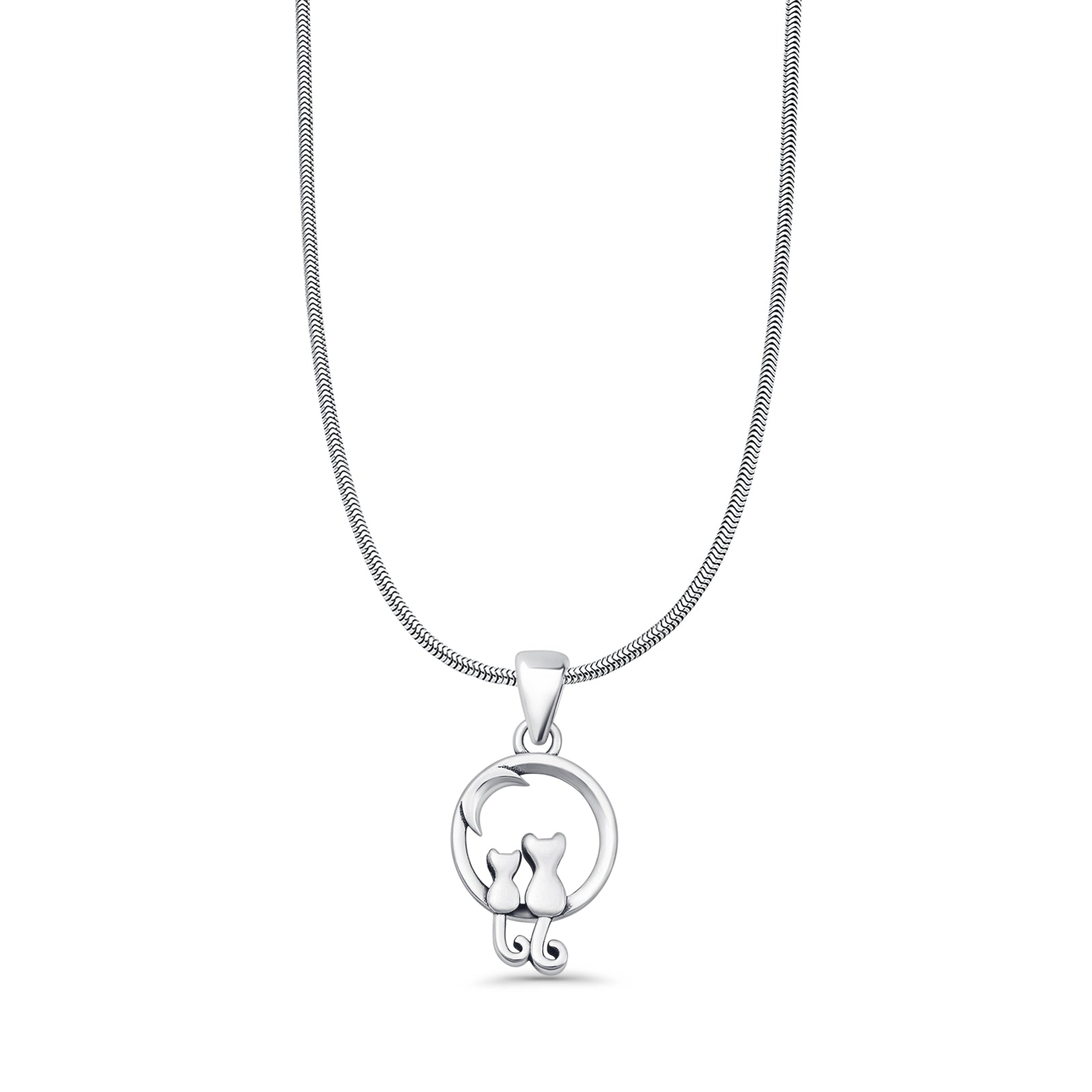 Cat & Moon Pendant Snake Chain Necklace Oxidized 925 Sterling Silver