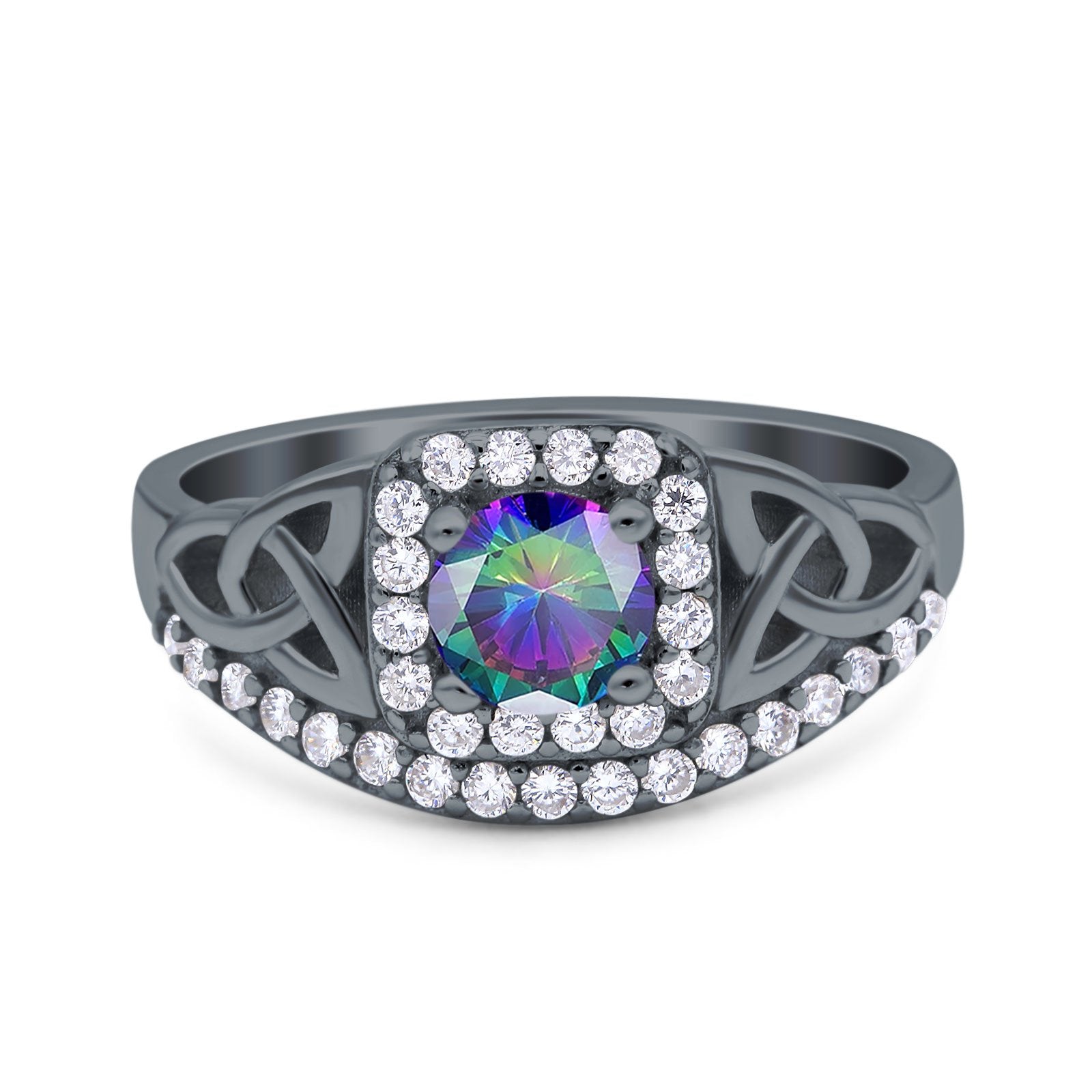 Celtic Art Deco Wedding Bridal Engagement Ring Simulated Cubic Zirconia 925 Sterling Silver