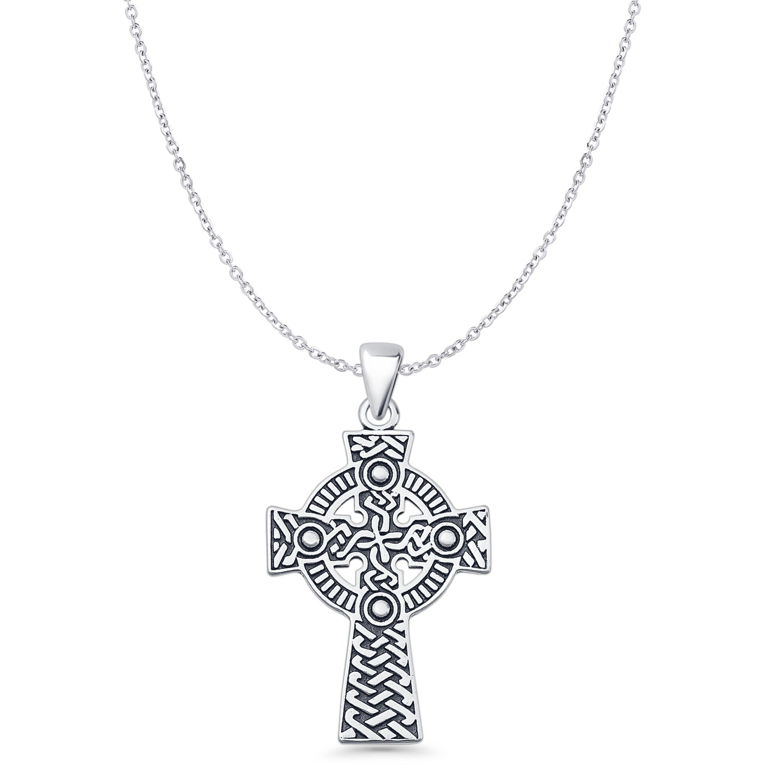 Celtic Cross Pendant Cable Chain Necklace Oxidized 925 Sterling Silver