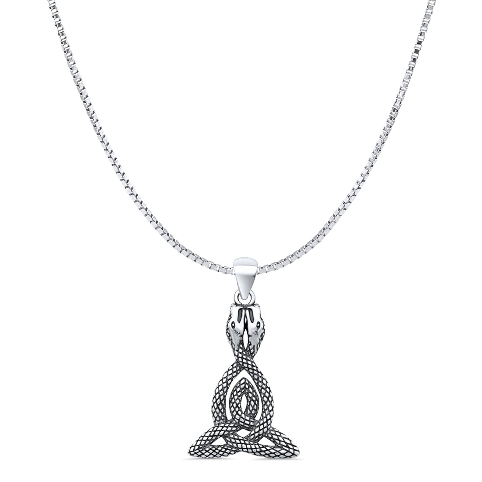 Celtic Knot Snakes Pendant Oxidized Box Chain Necklace 925 Sterling Silver