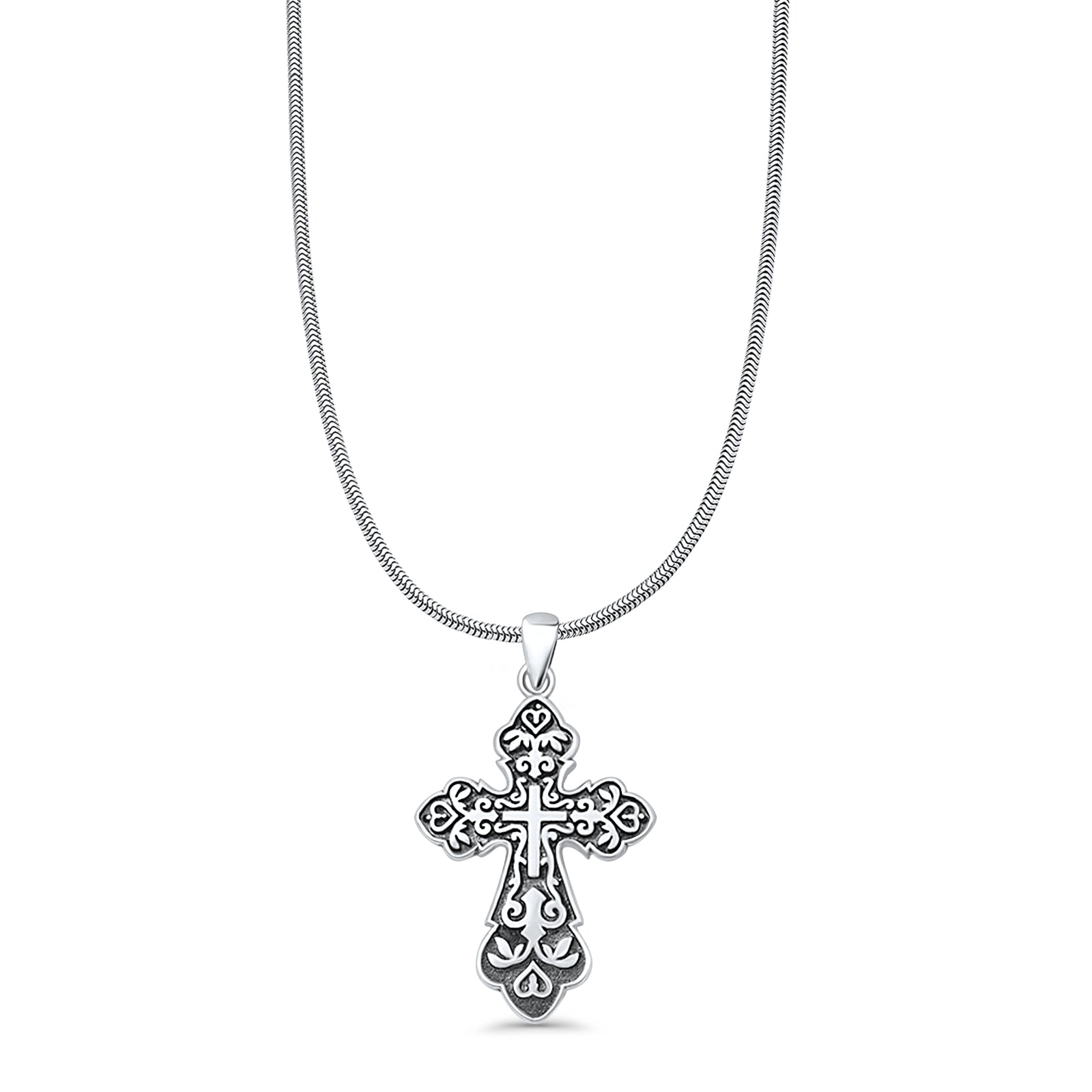 Cross Pendant Snake Chain Necklace Oxidized 925 Sterling Silver