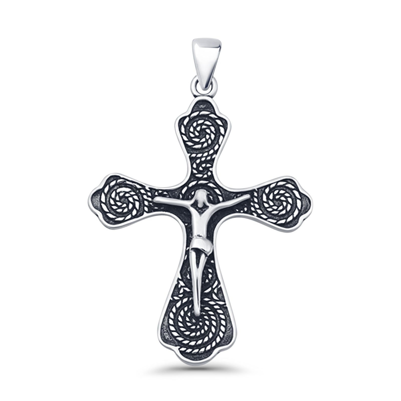 Style: Oxidized Crucifix Cross Pendant Necklace