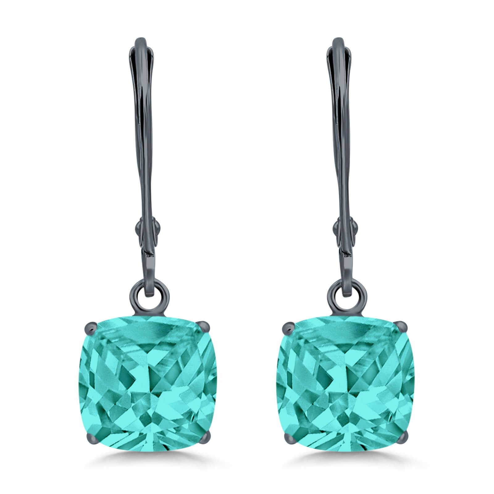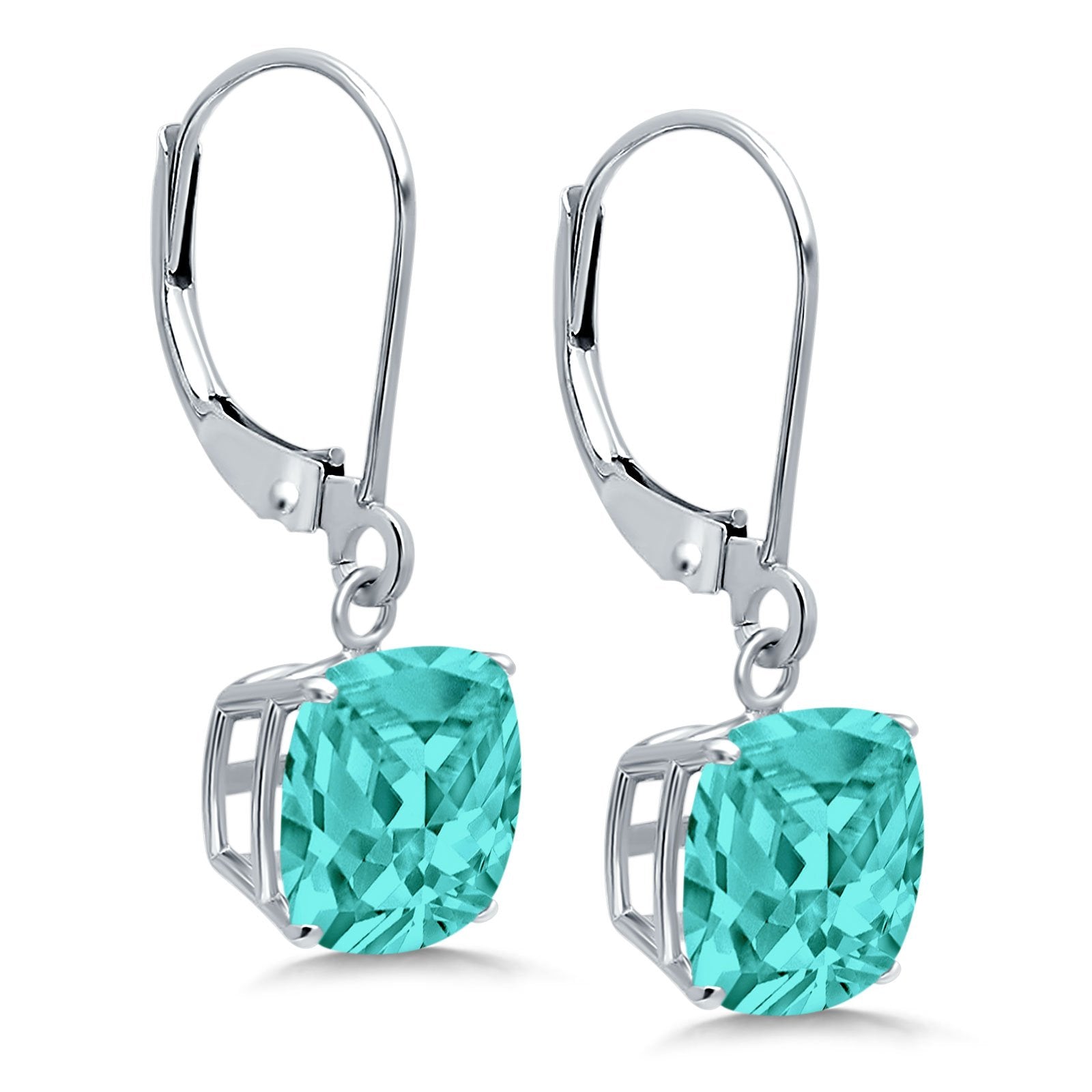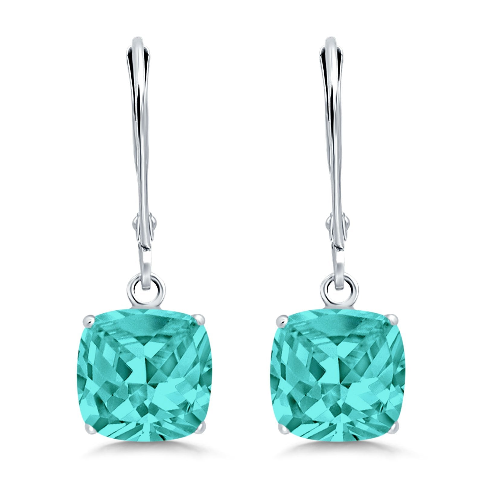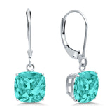 Cushion Cut Bridal Dangling Leverback Earrings Simulated Cubic Zirconia 925 Sterling Silver (3mm-10mm)