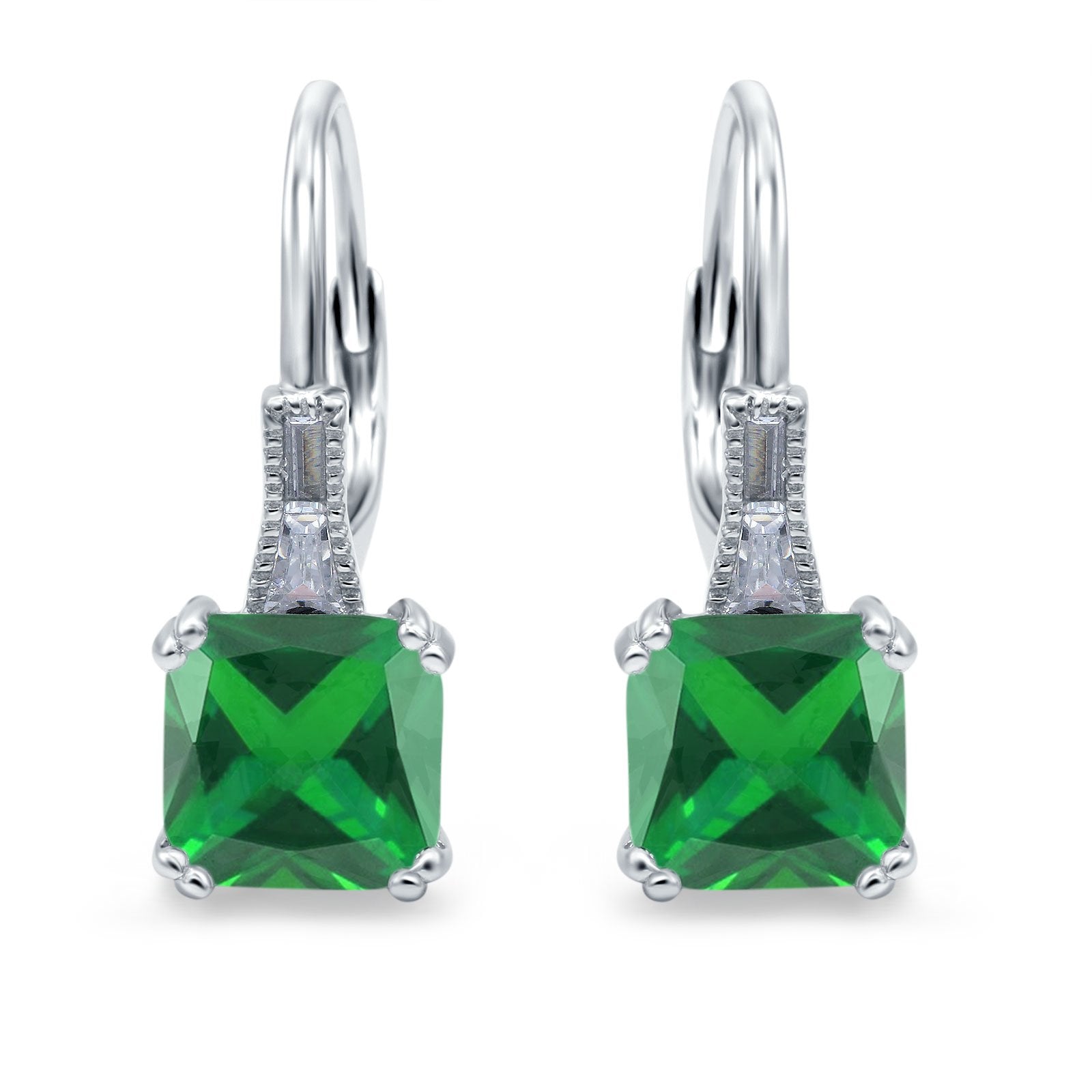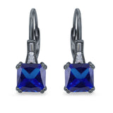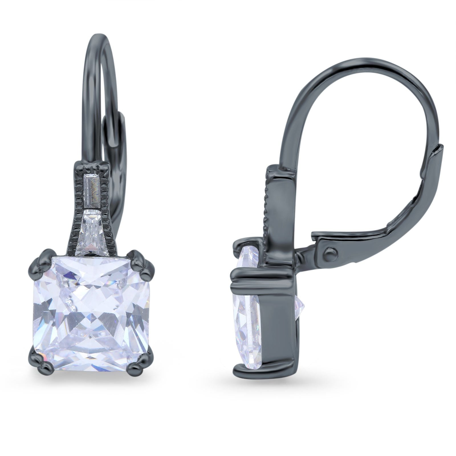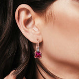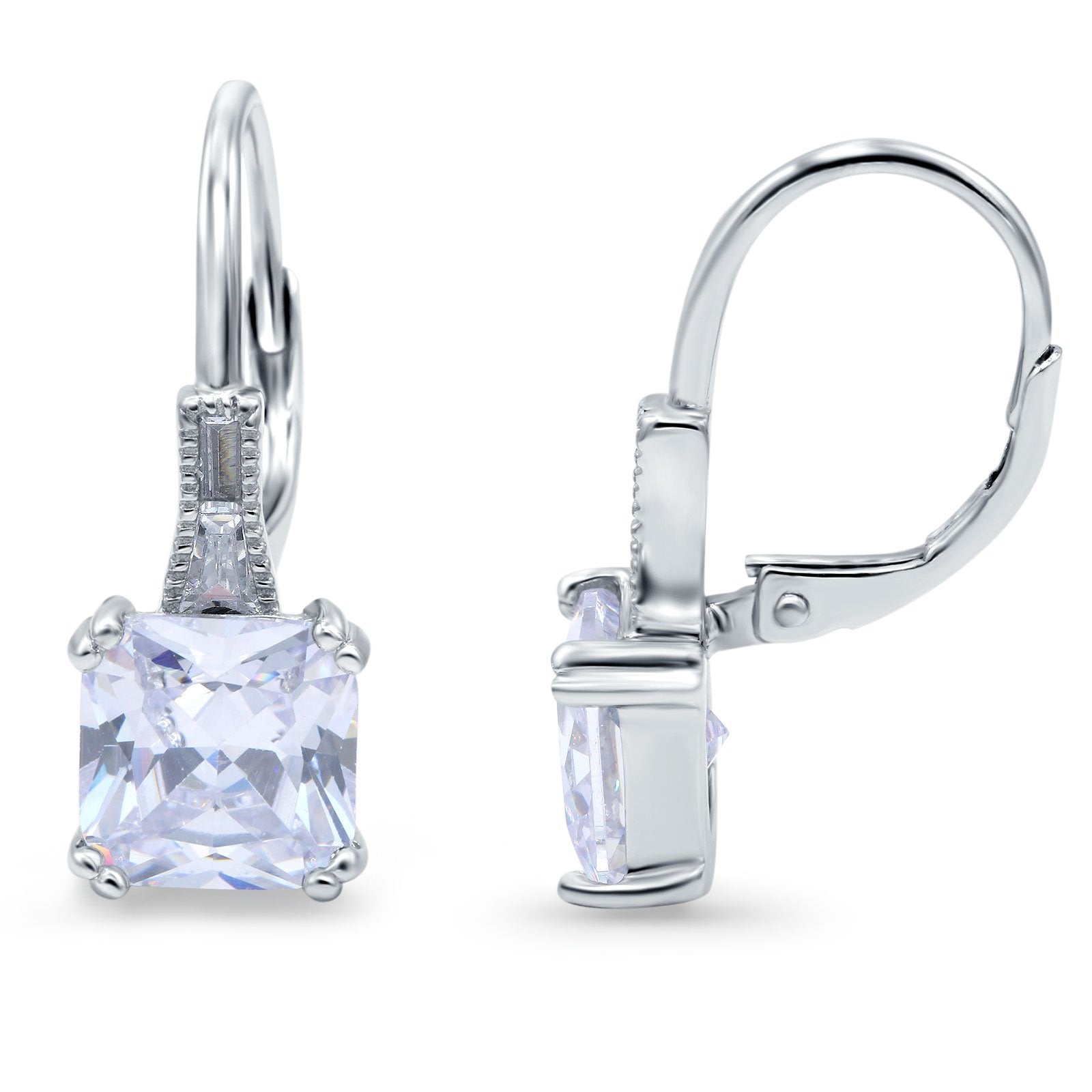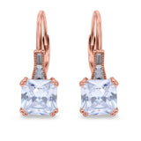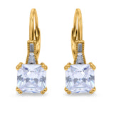 Cushion Cut Dangling Leverback Earrings Wedding Simulated Cubic Zirconia 925 Sterling Silver (15mm)