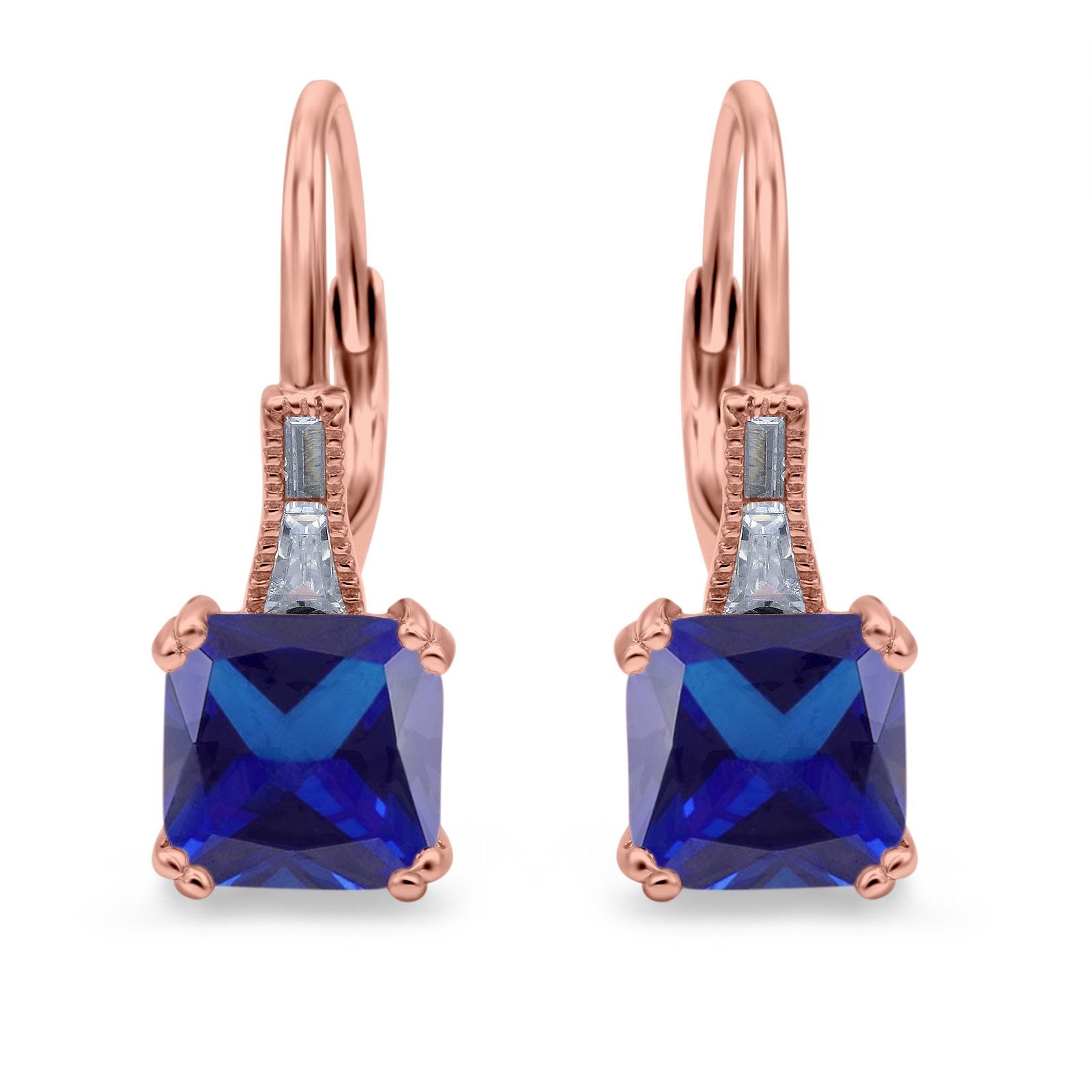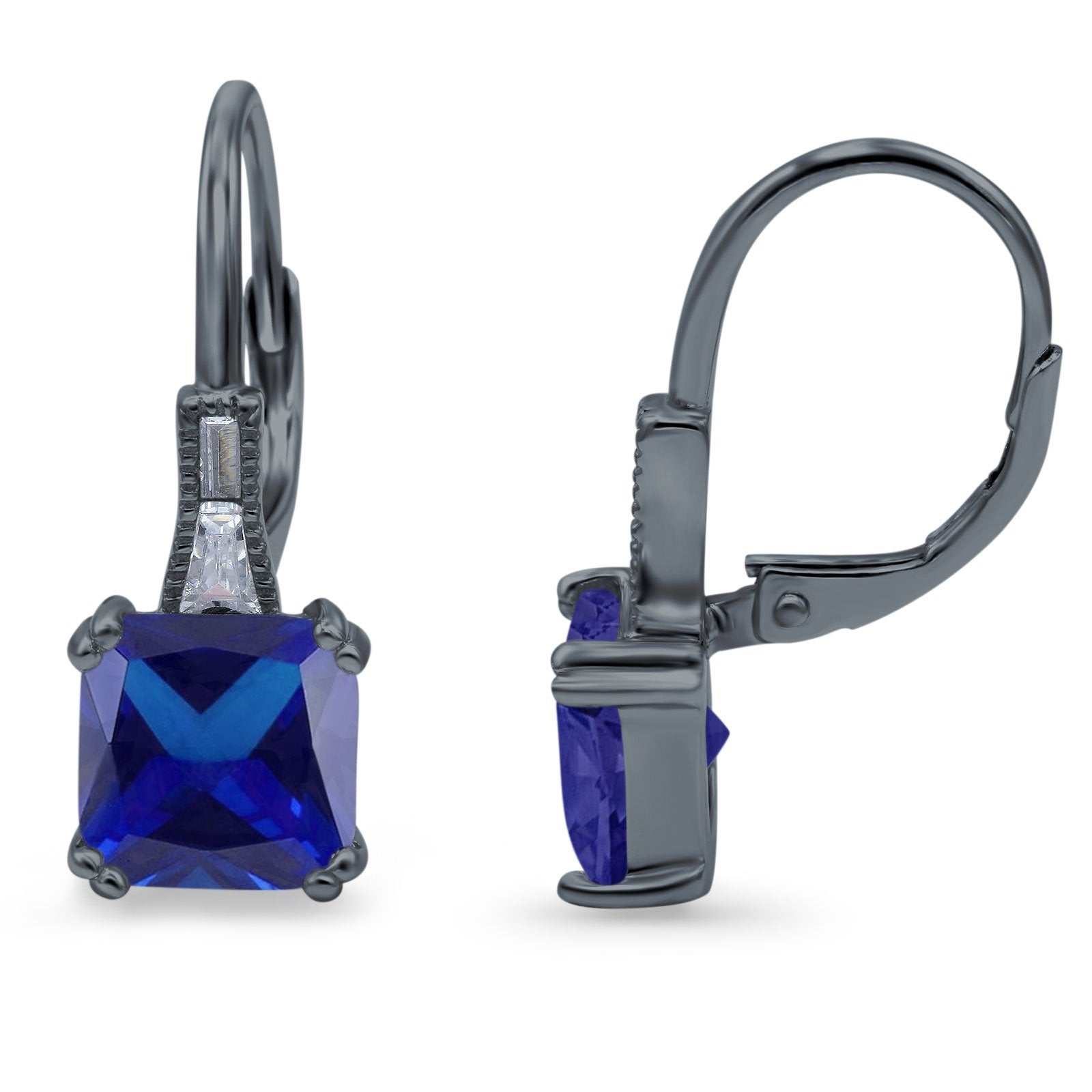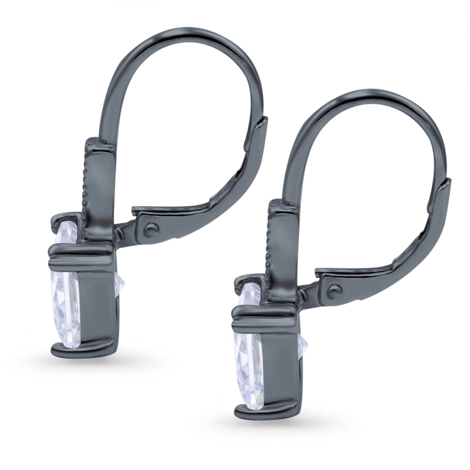Cushion Cut Dangling Leverback Earrings Wedding Simulated Cubic Zirconia 925 Sterling Silver (15mm)