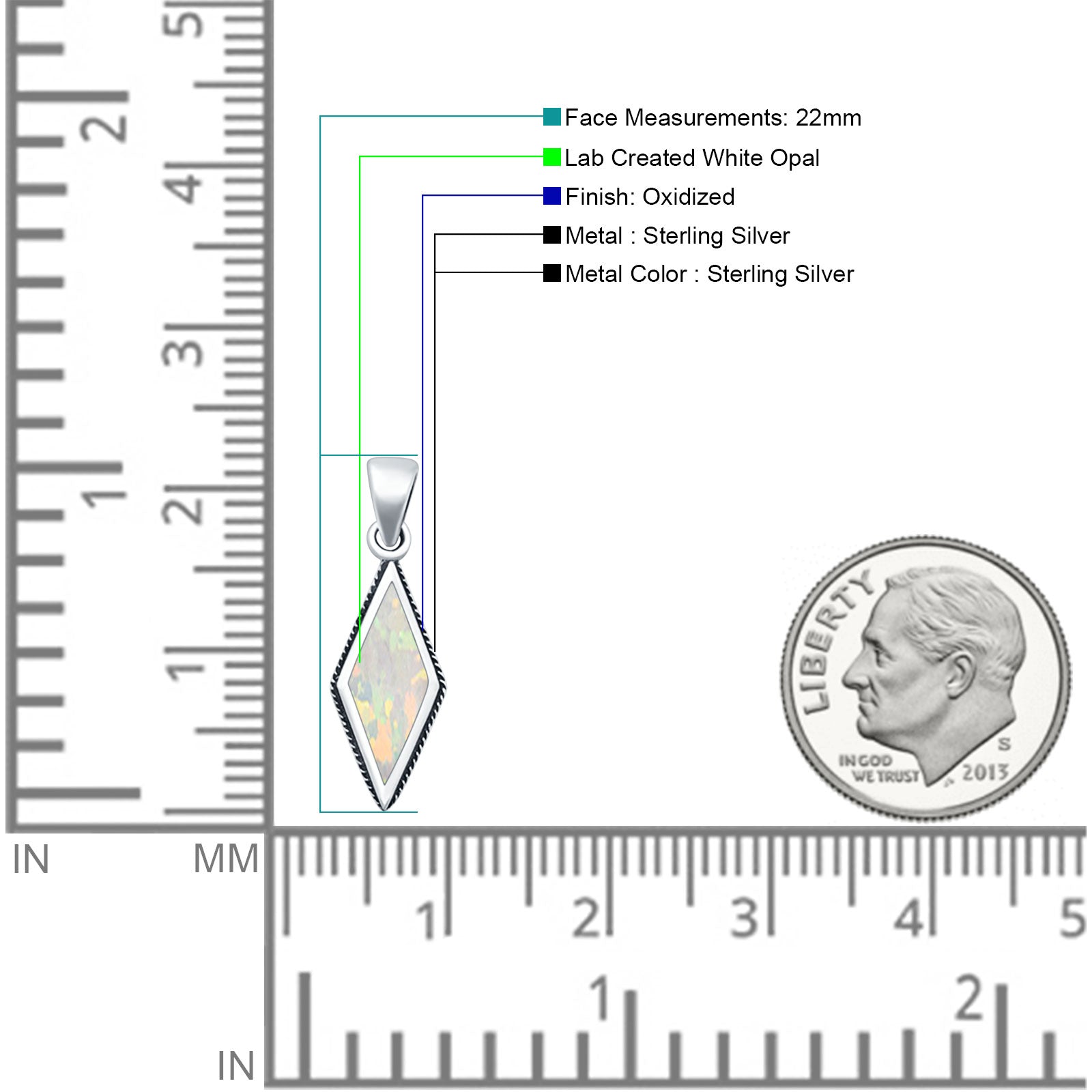 Style: Diamond Shape Lab Created White Opal Oxidized Pendant Necklace