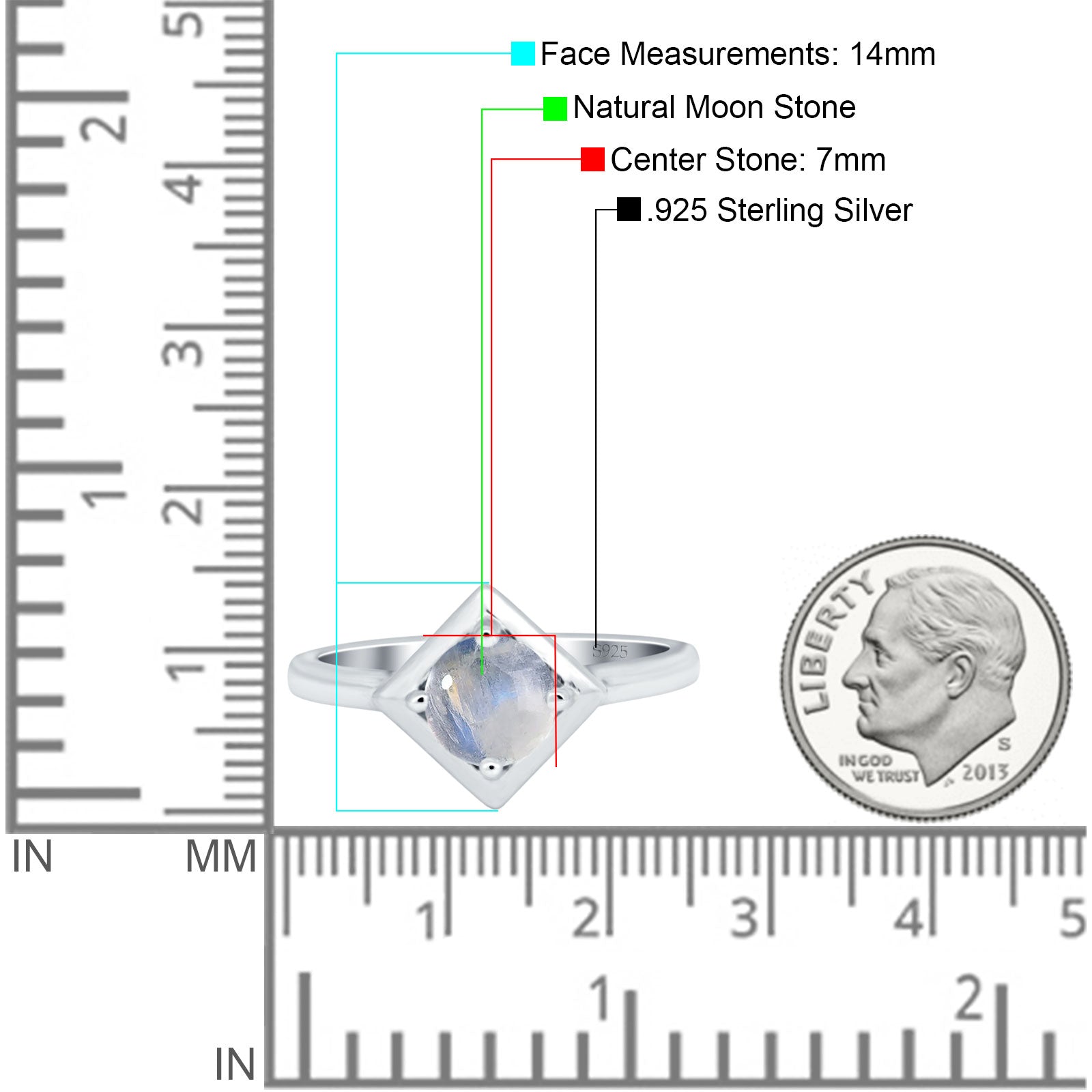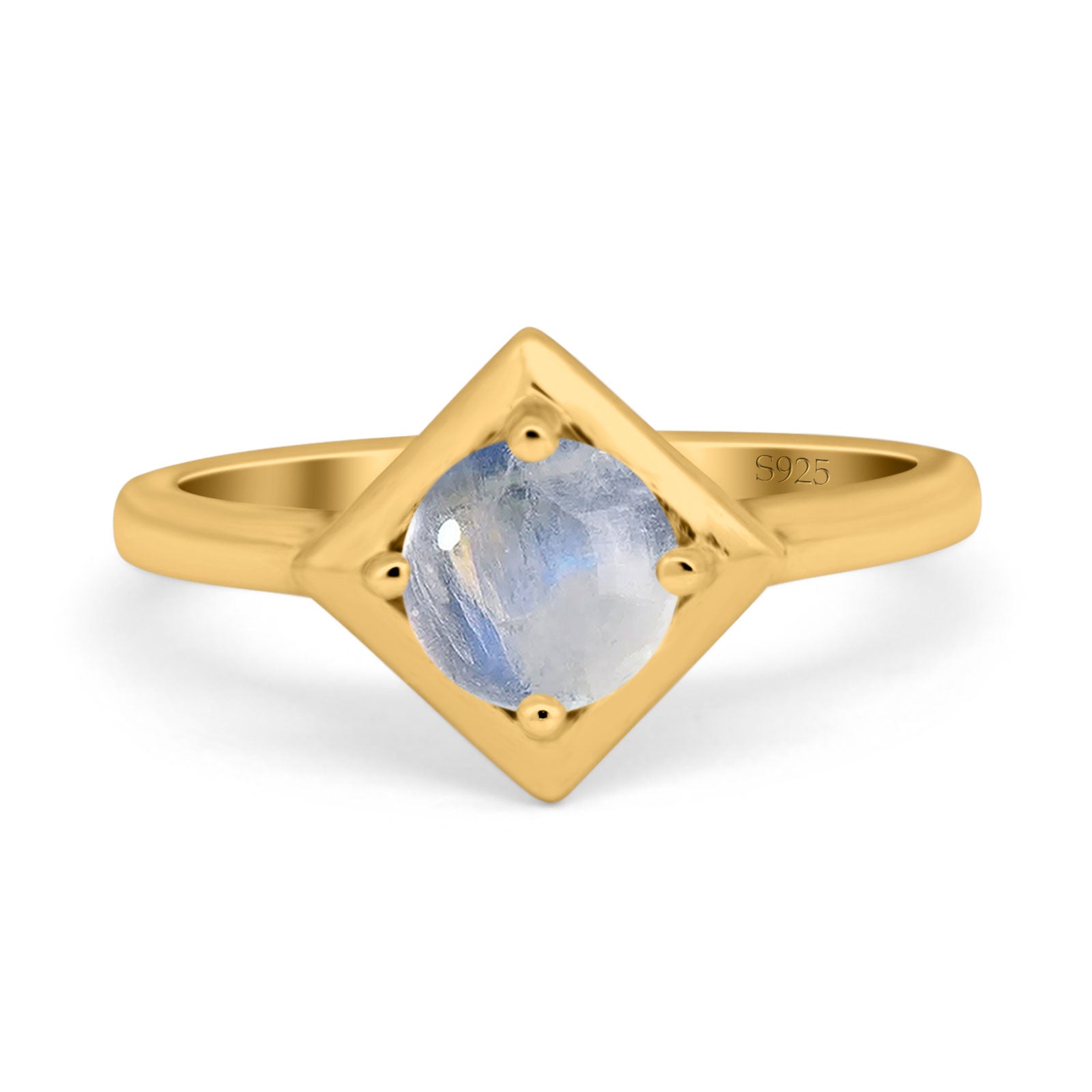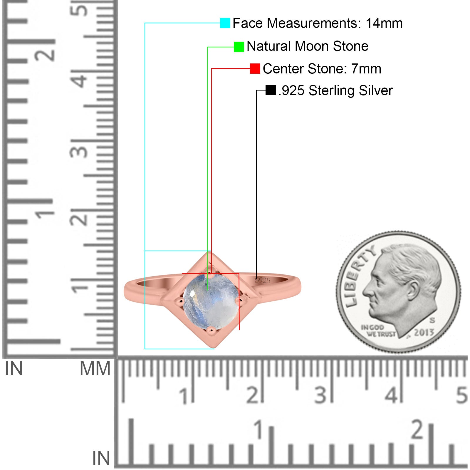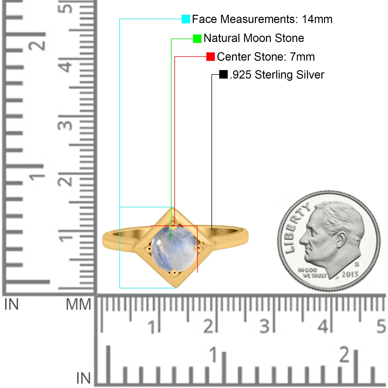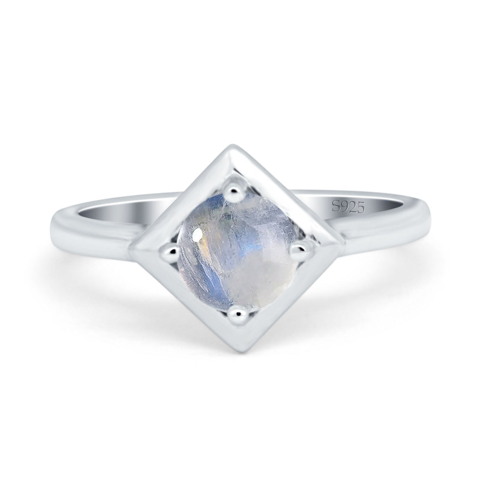 Diamond Shape Round Natural Moonstone Solitaire Ring 925 Sterling Silver