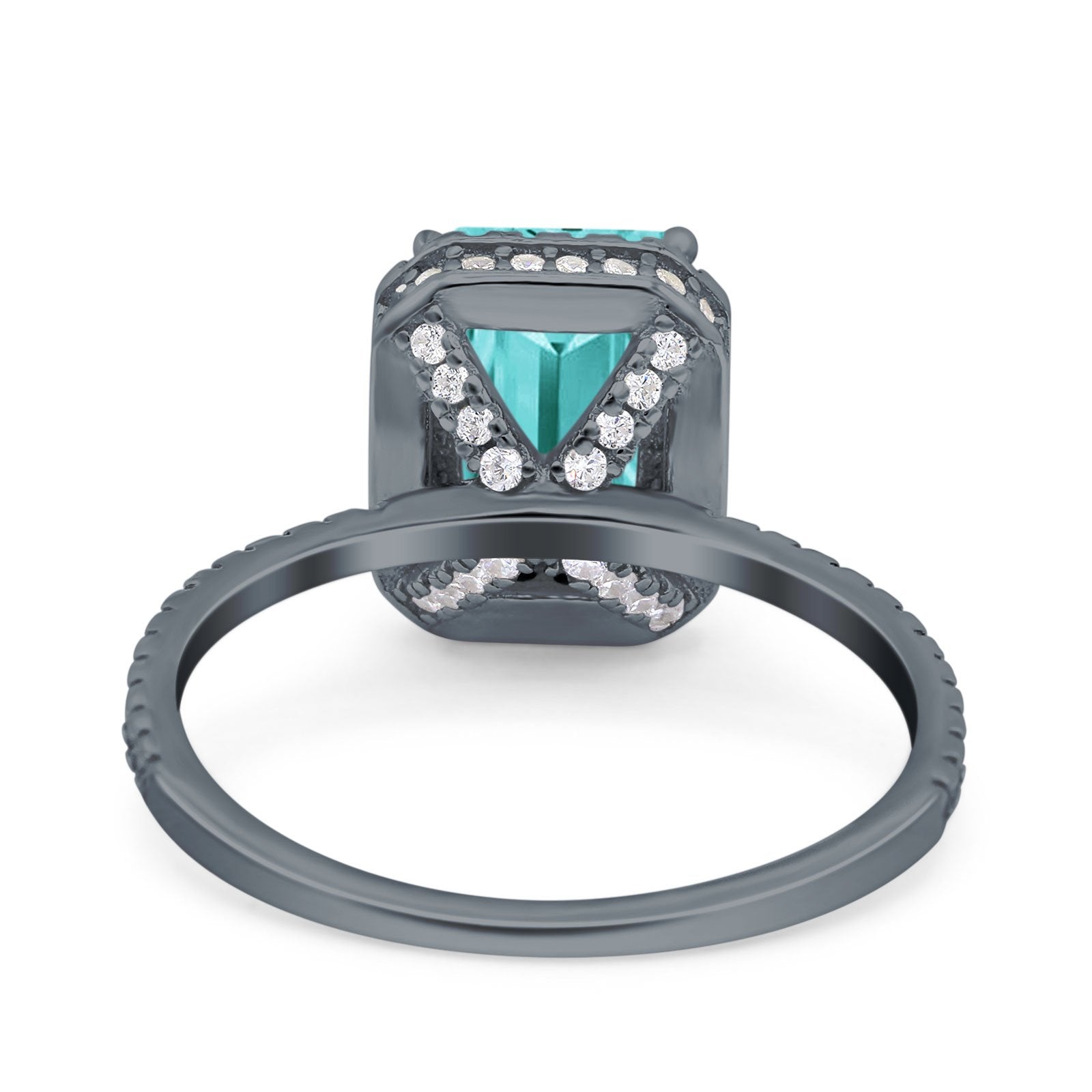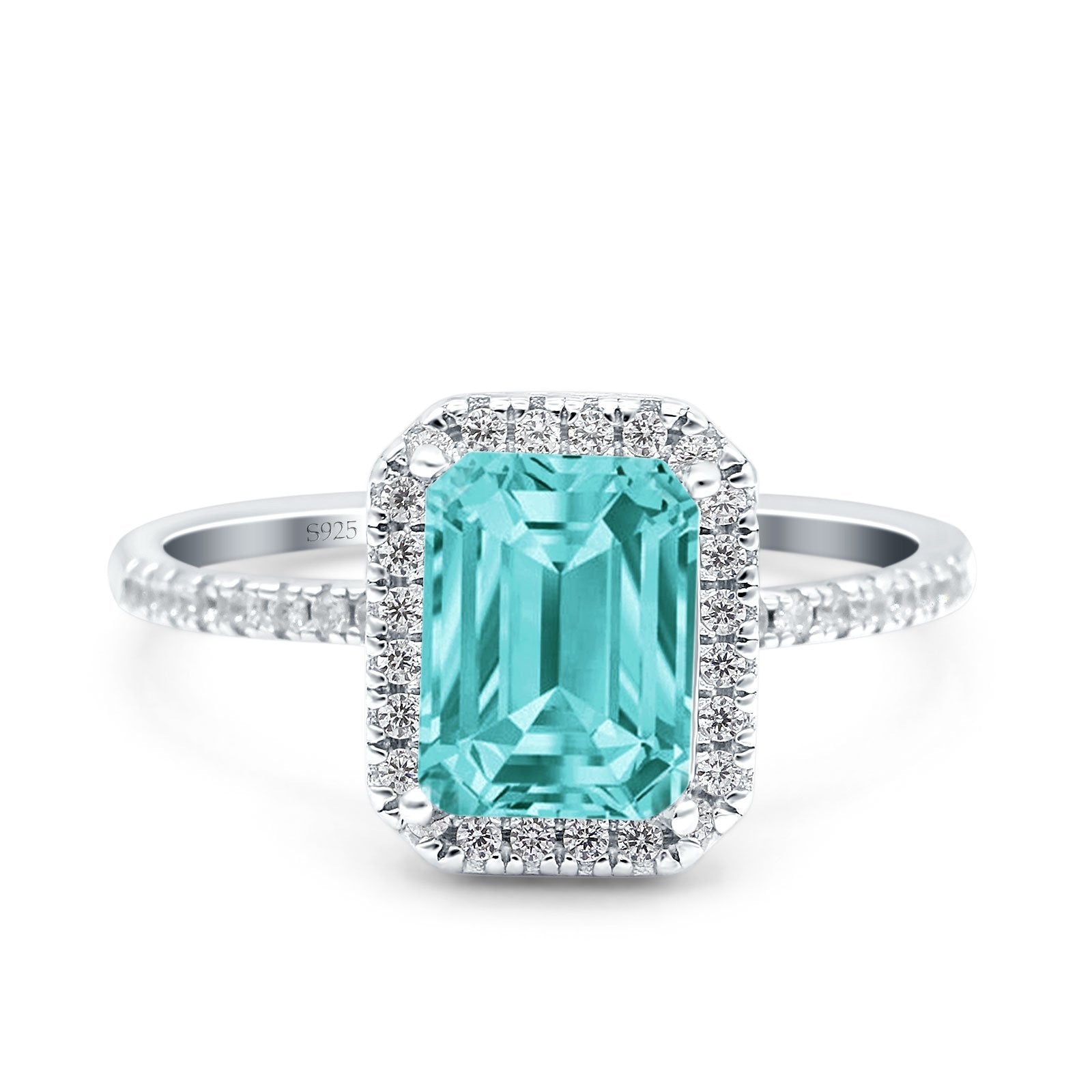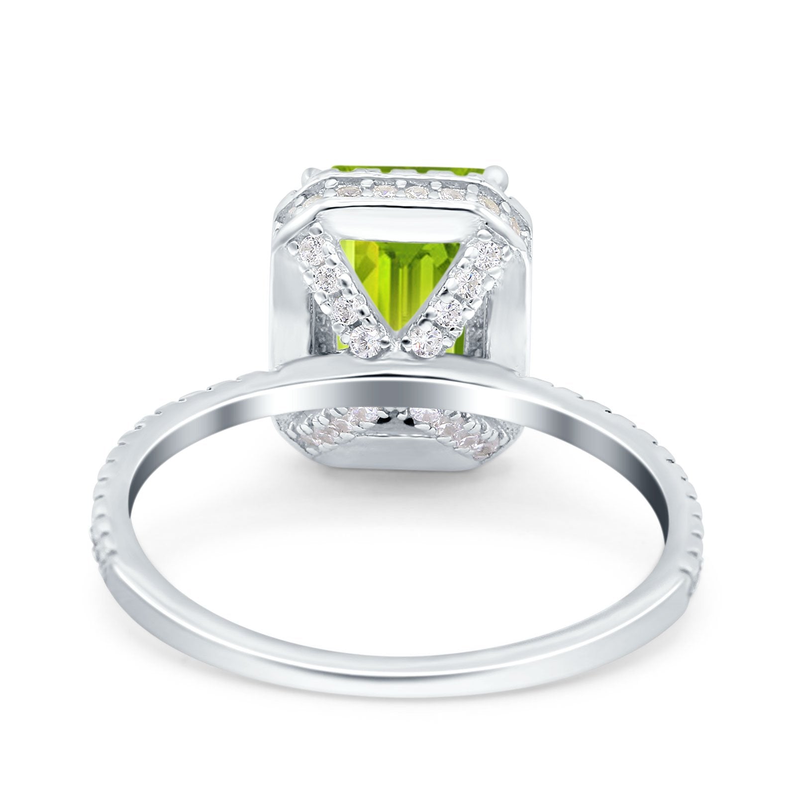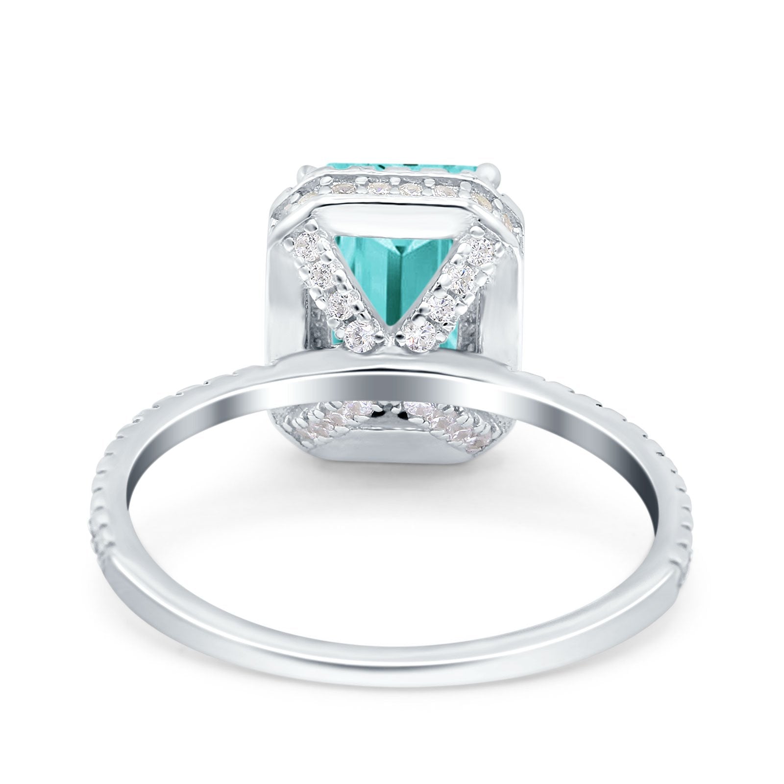 Emerald Cut Art Deco Halo Wedding Bridal Engagement Ring Round Simulated Cubic Zirconia 925 Sterling Silver