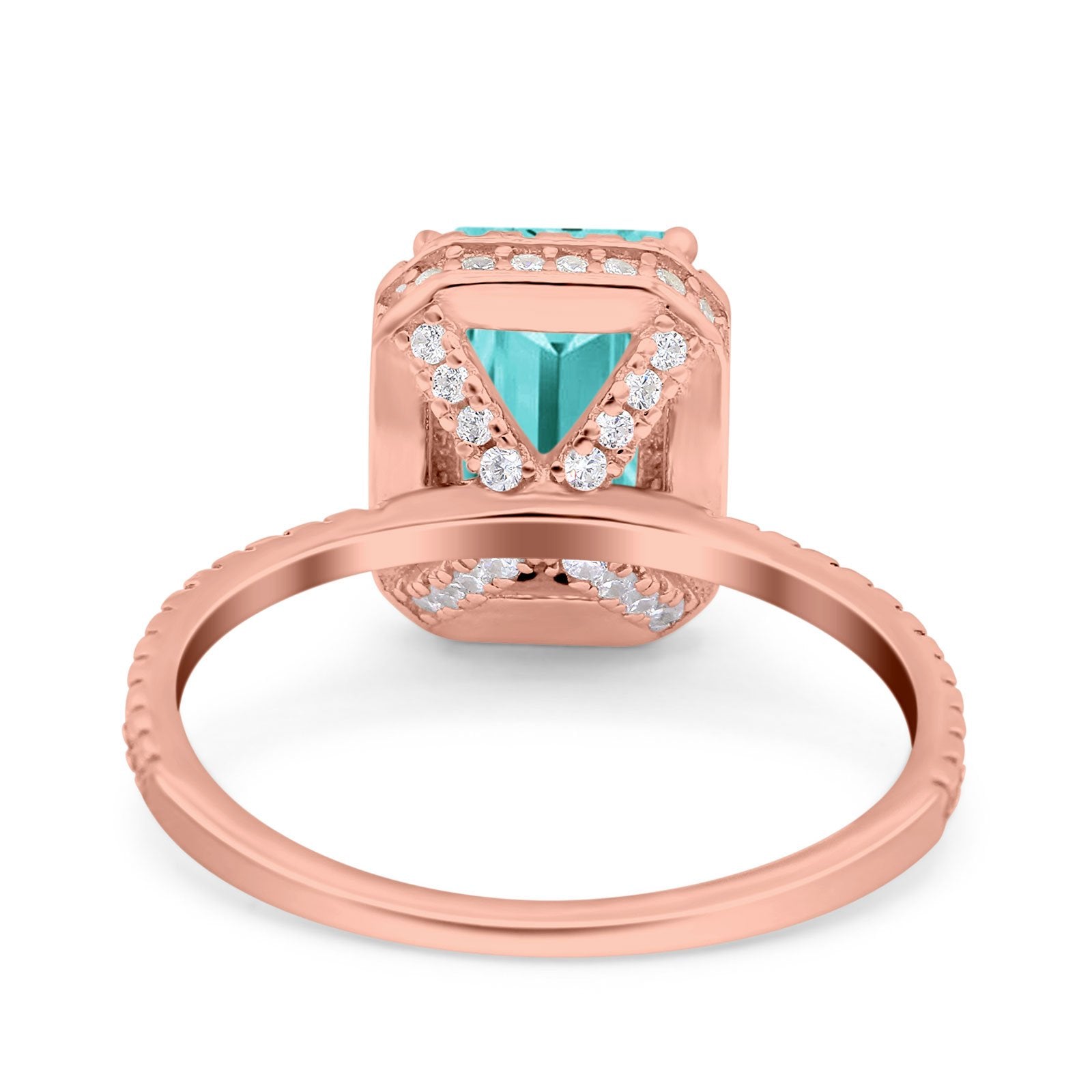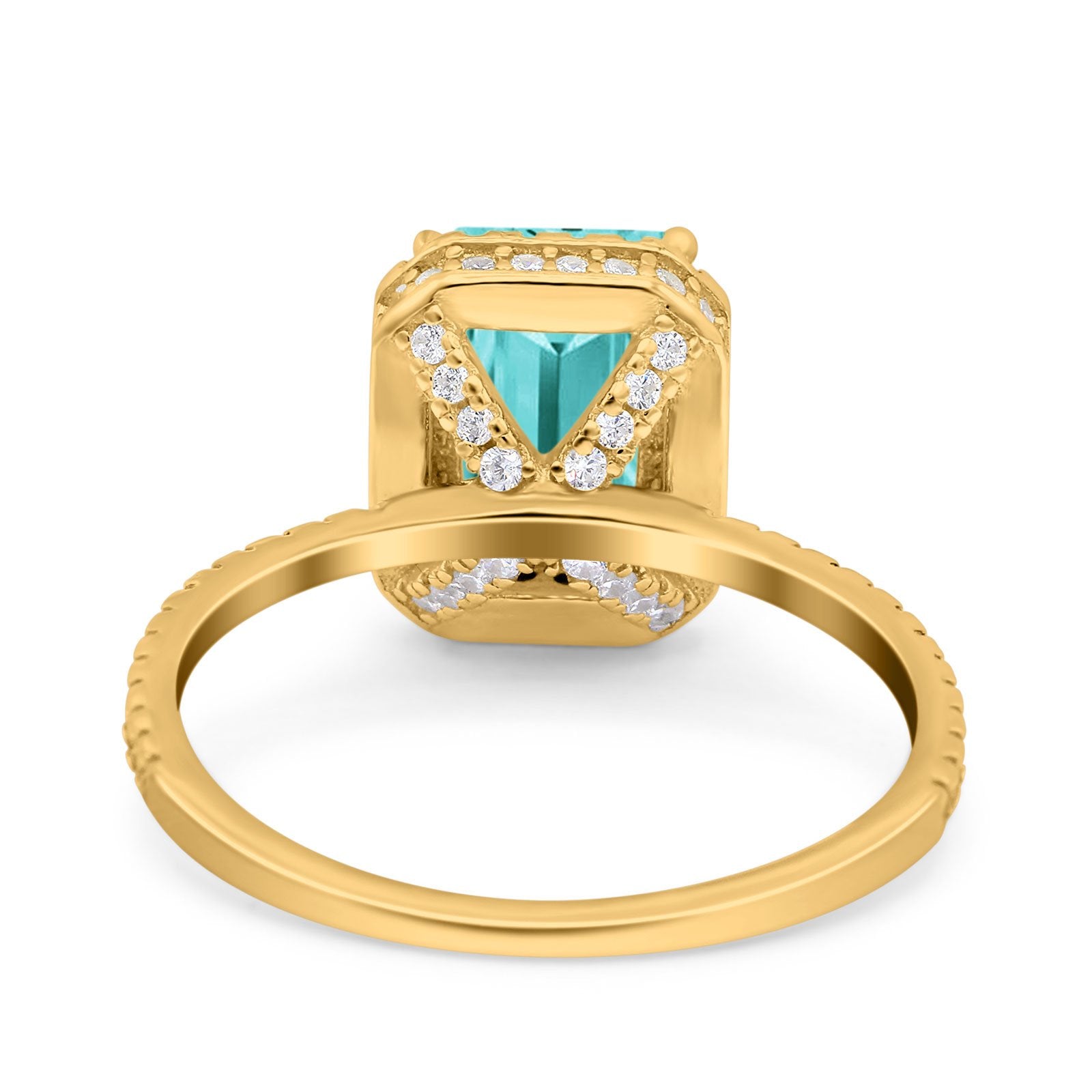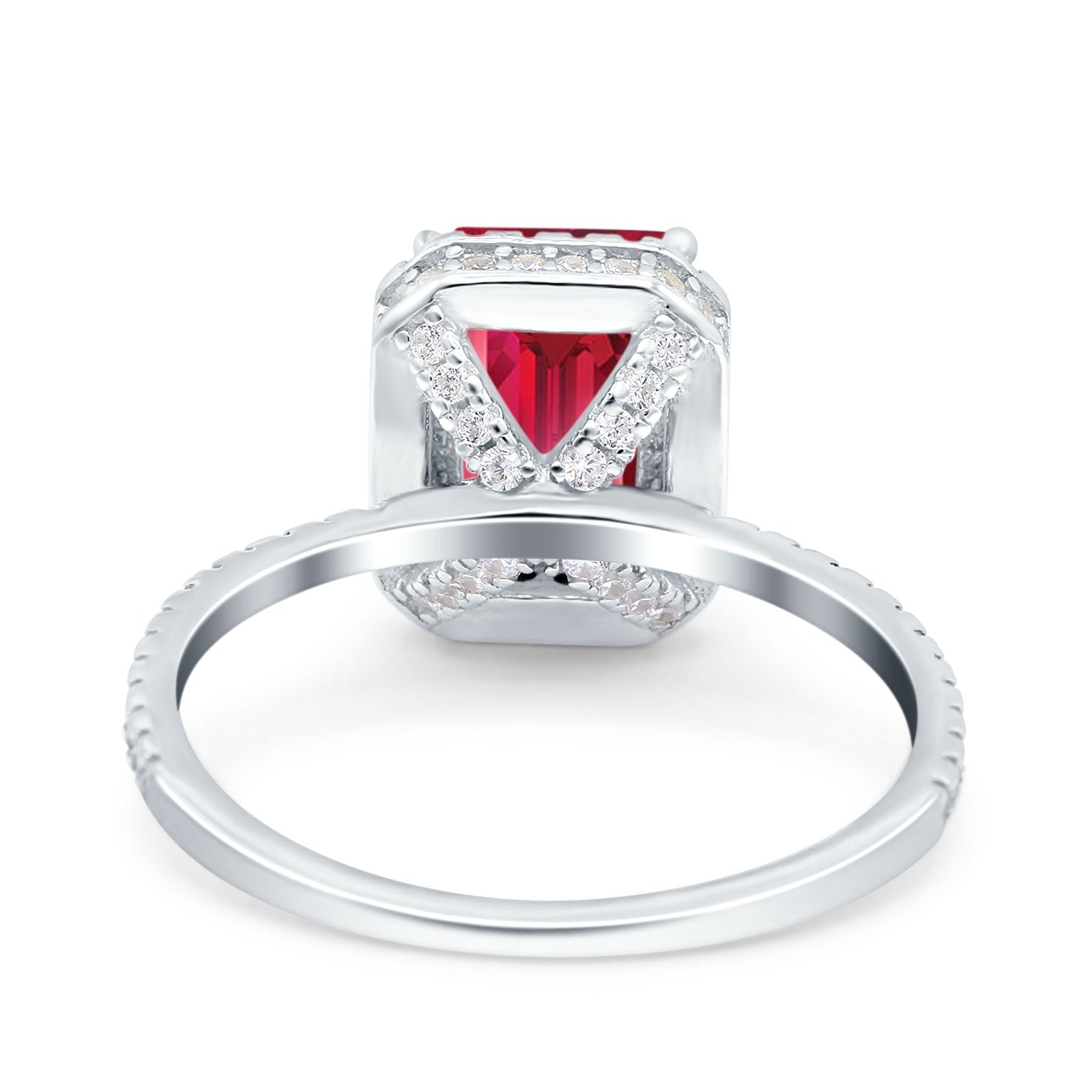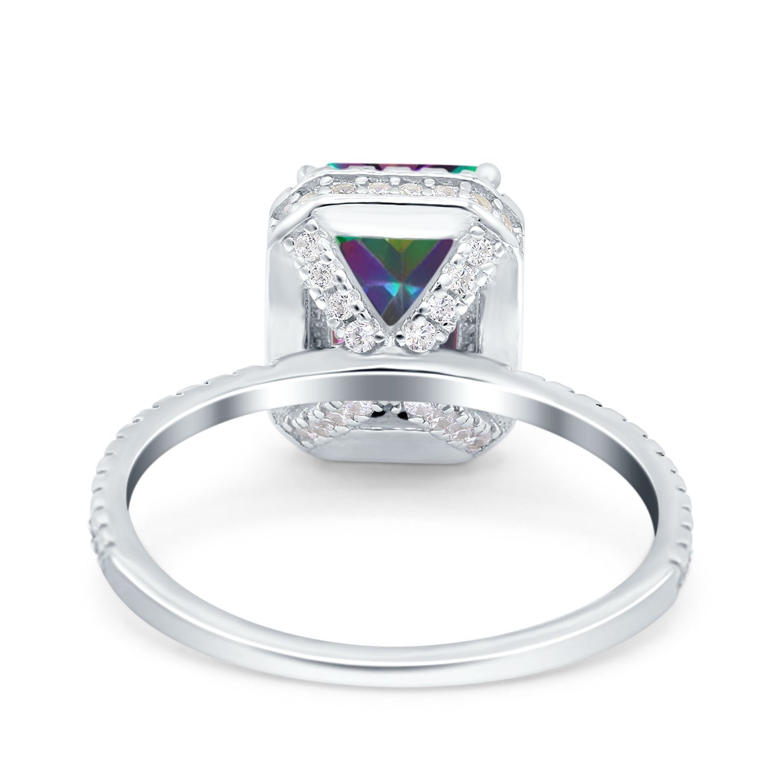 Emerald Cut Art Deco Halo Wedding Bridal Engagement Ring Round Simulated Cubic Zirconia 925 Sterling Silver