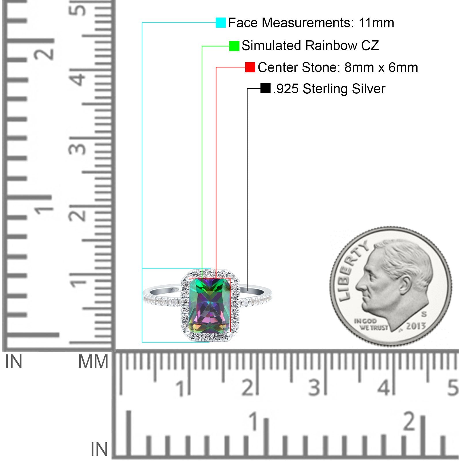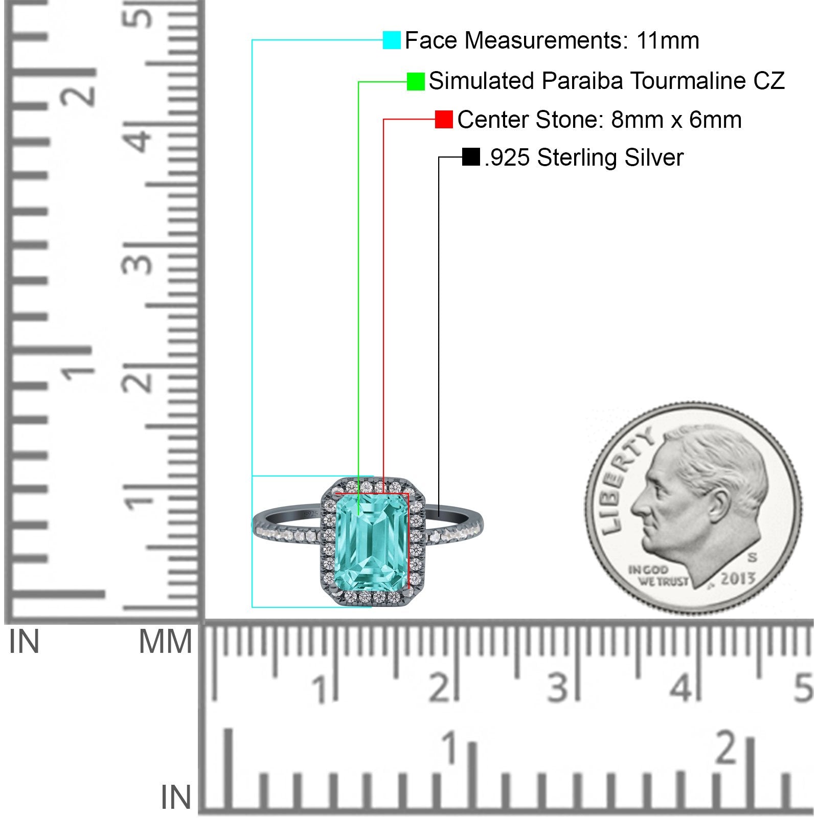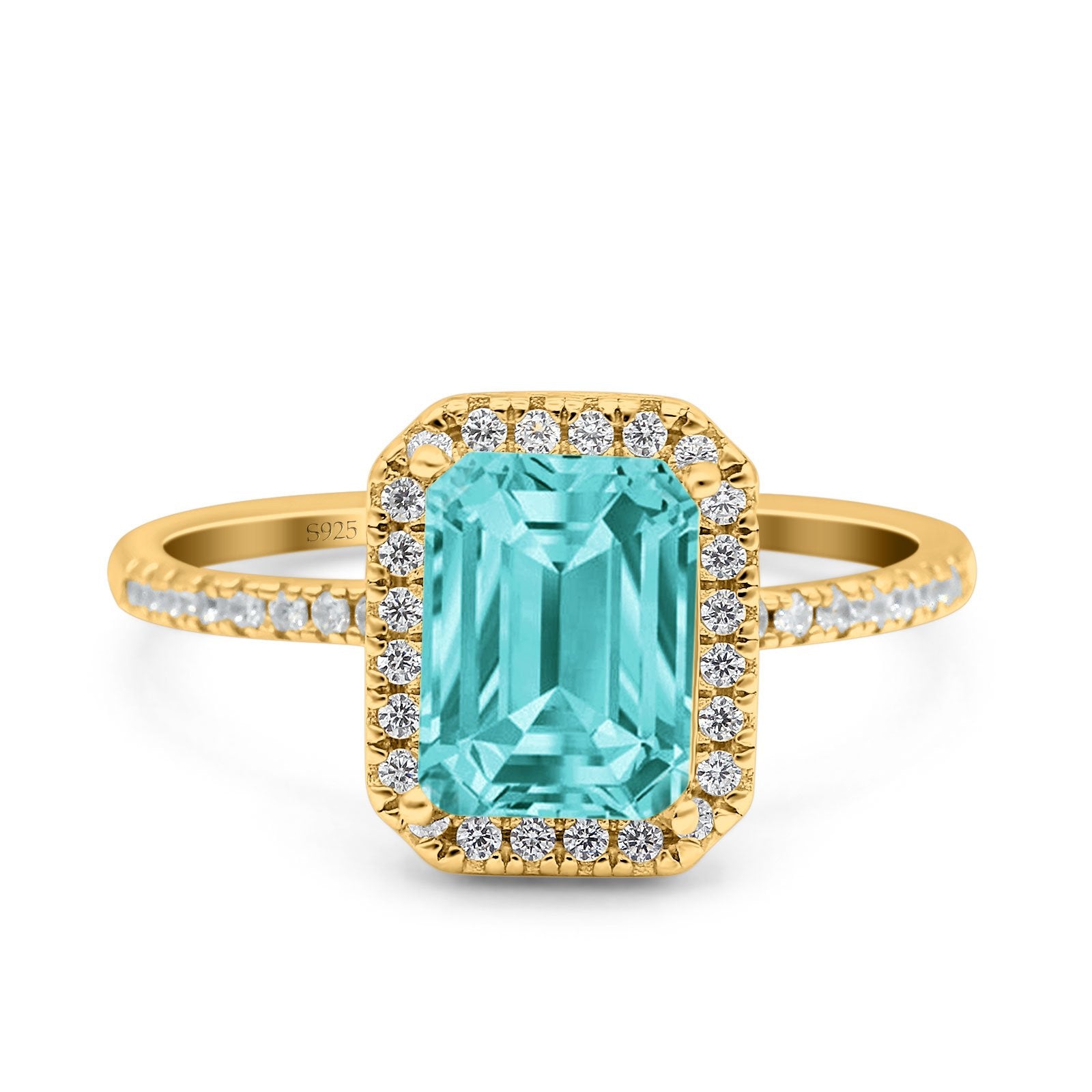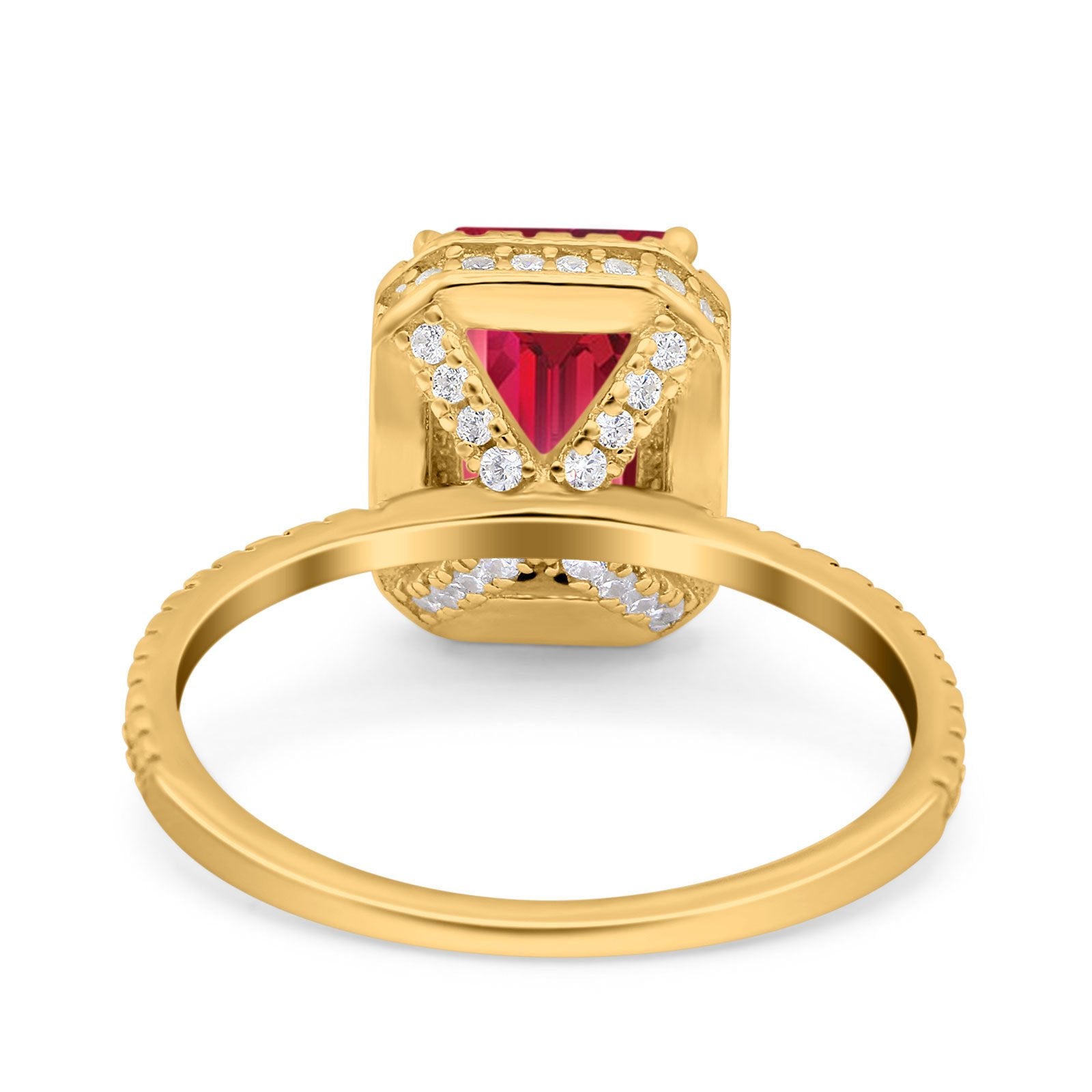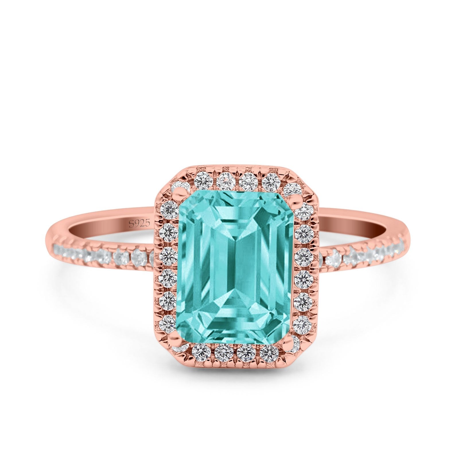 Emerald Cut Art Deco Halo Wedding Bridal Engagement Ring Round Simulated Cubic Zirconia 925 Sterling Silver