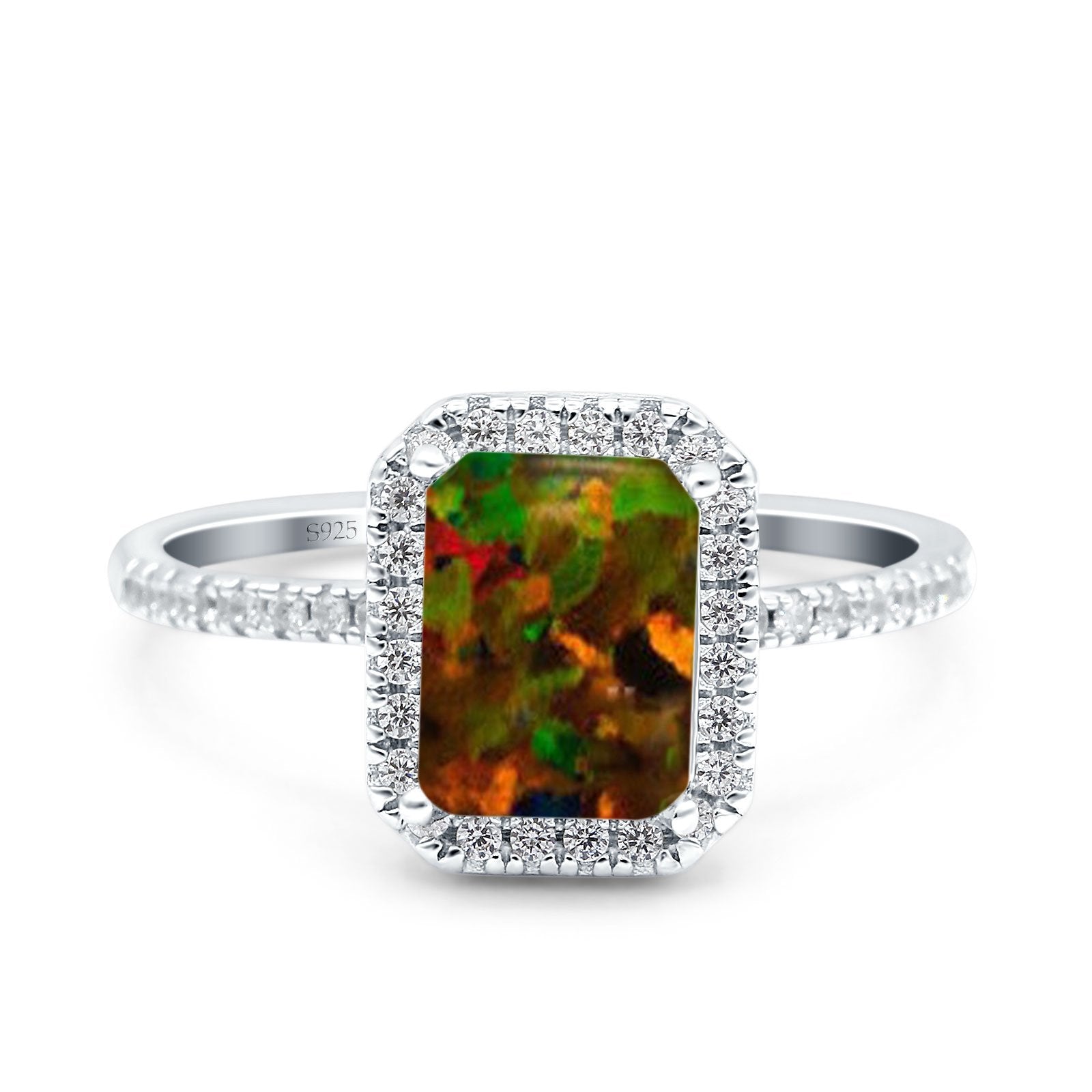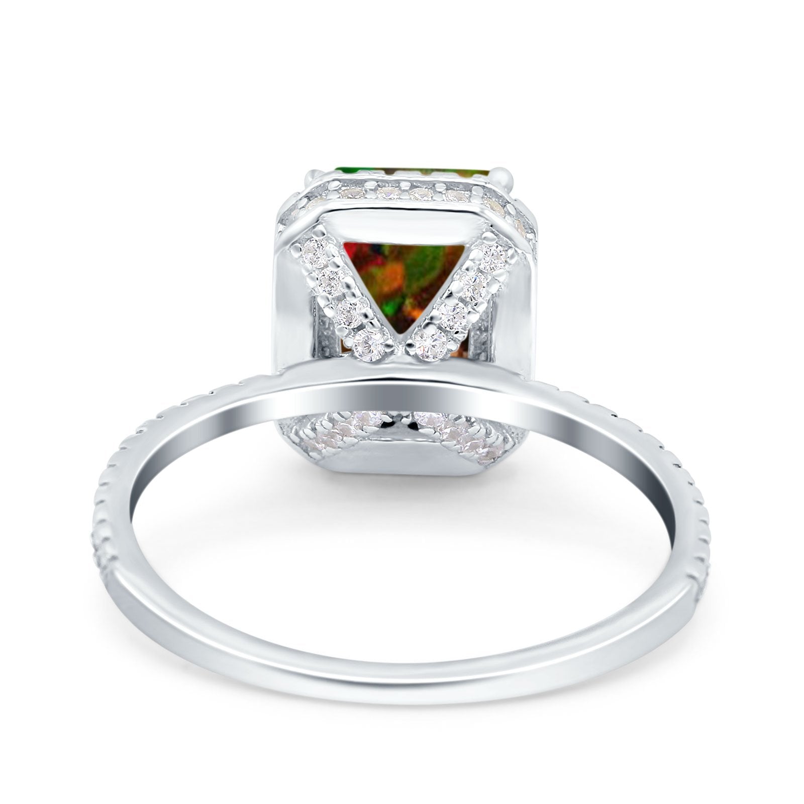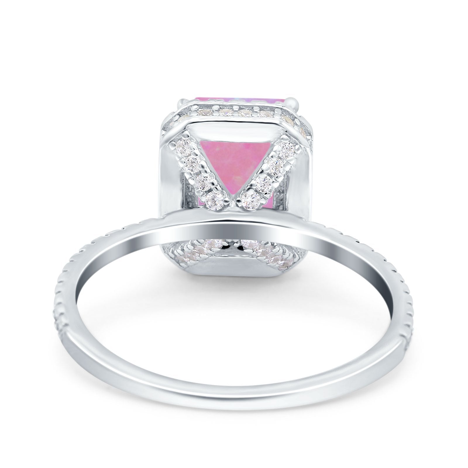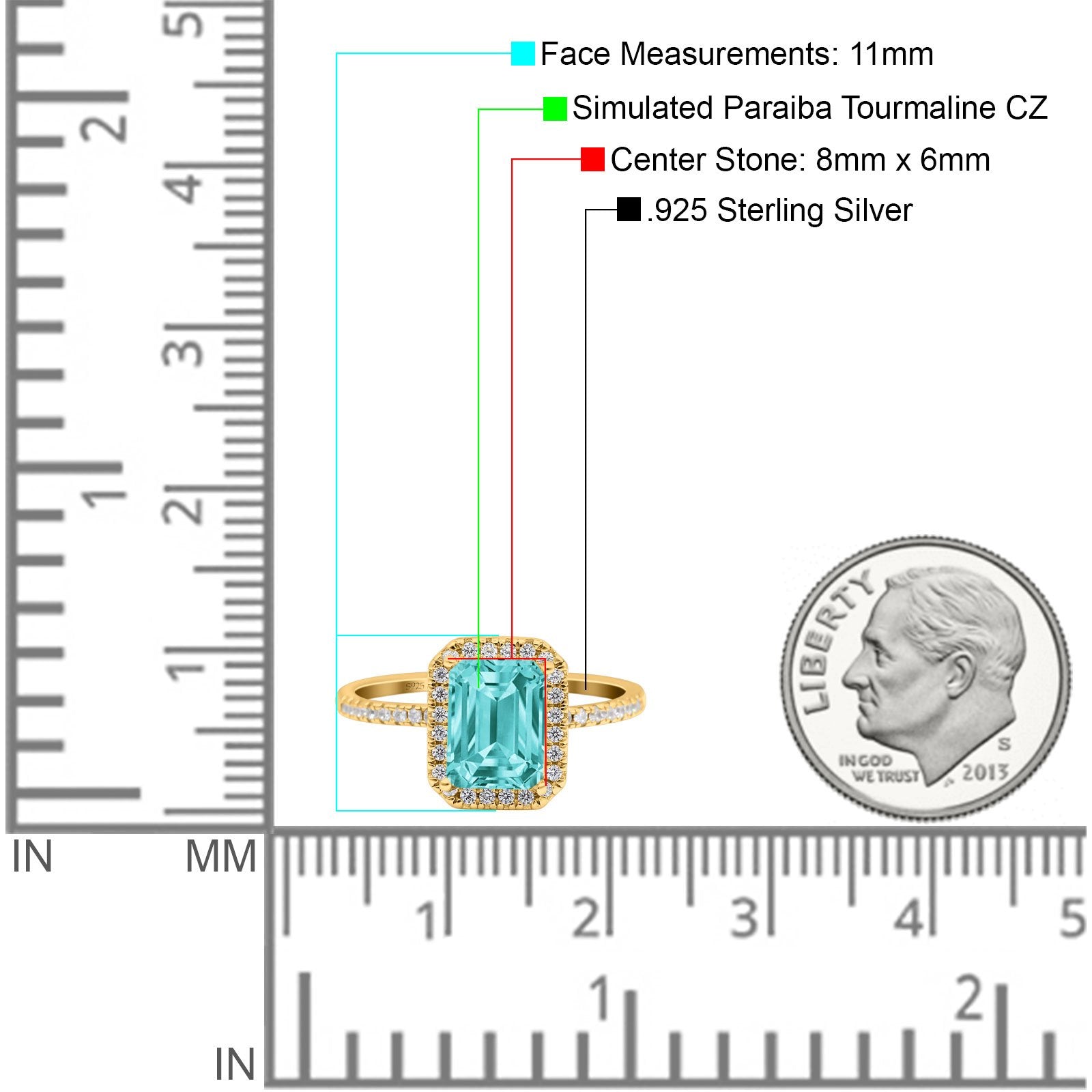 Emerald Cut Art Deco Halo Wedding Bridal Engagement Ring Round Simulated Cubic Zirconia 925 Sterling Silver