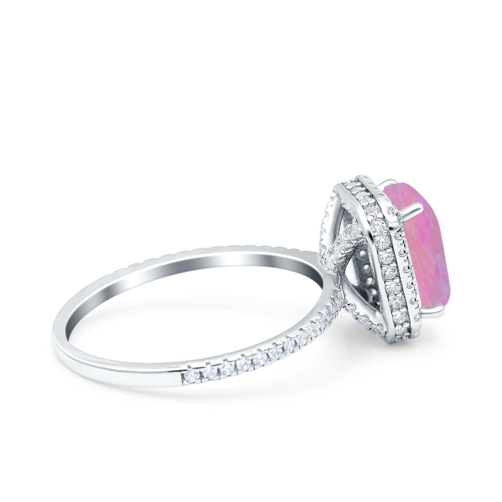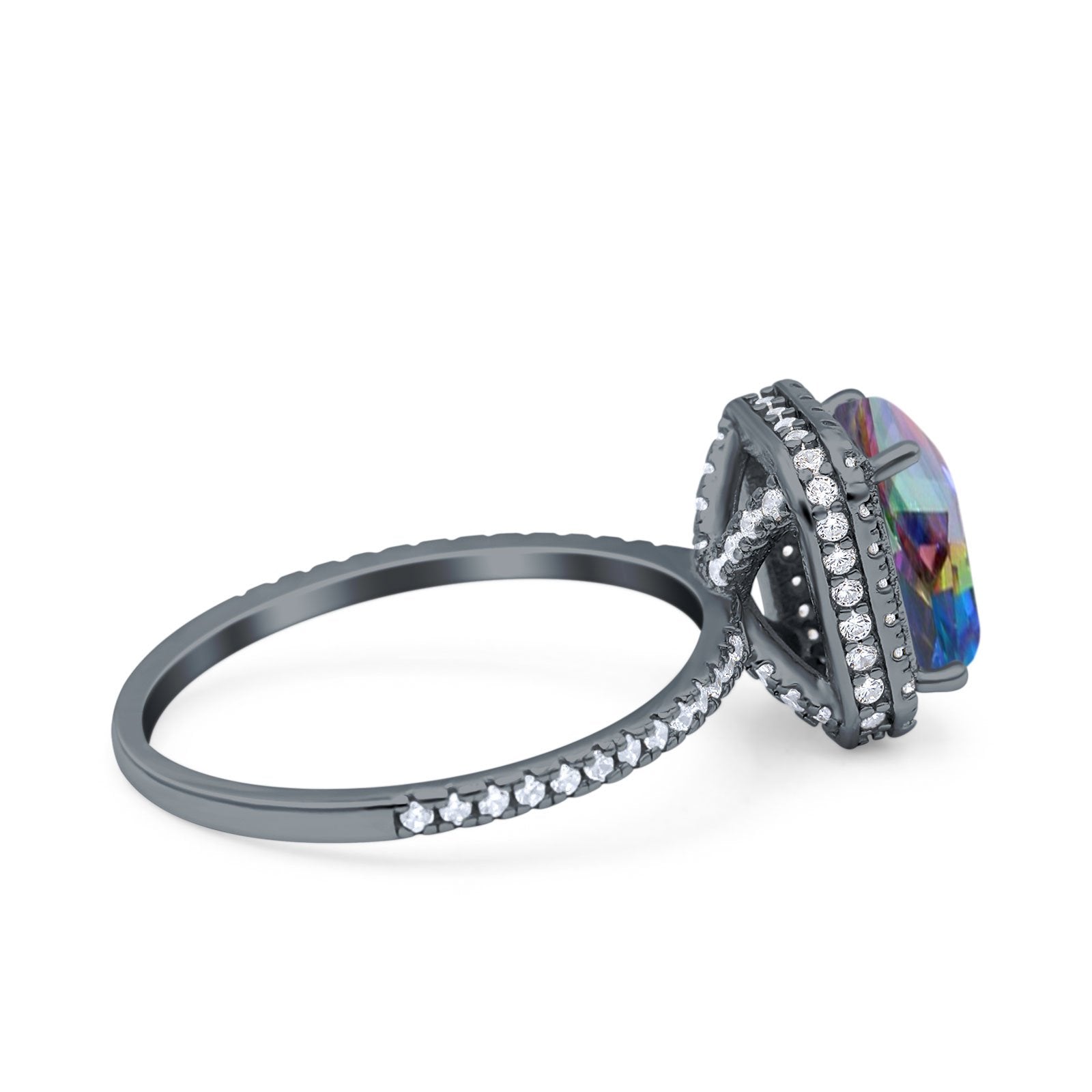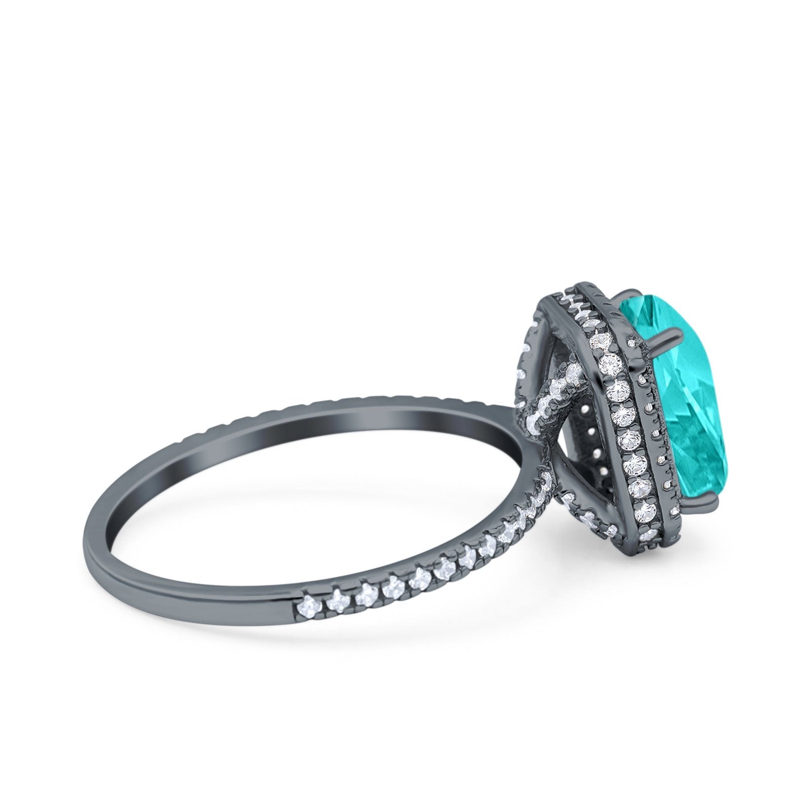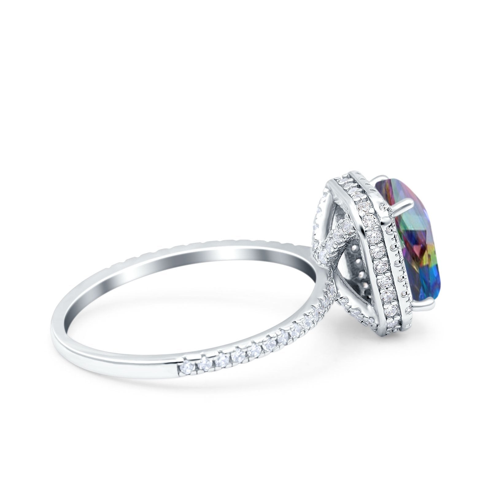 Emerald Cut Art Deco Halo Wedding Bridal Engagement Ring Round Simulated Cubic Zirconia 925 Sterling Silver