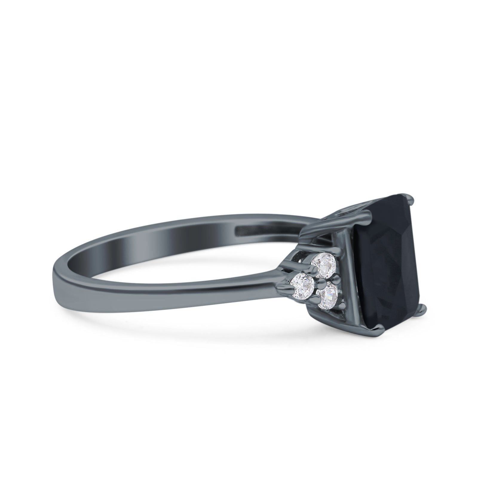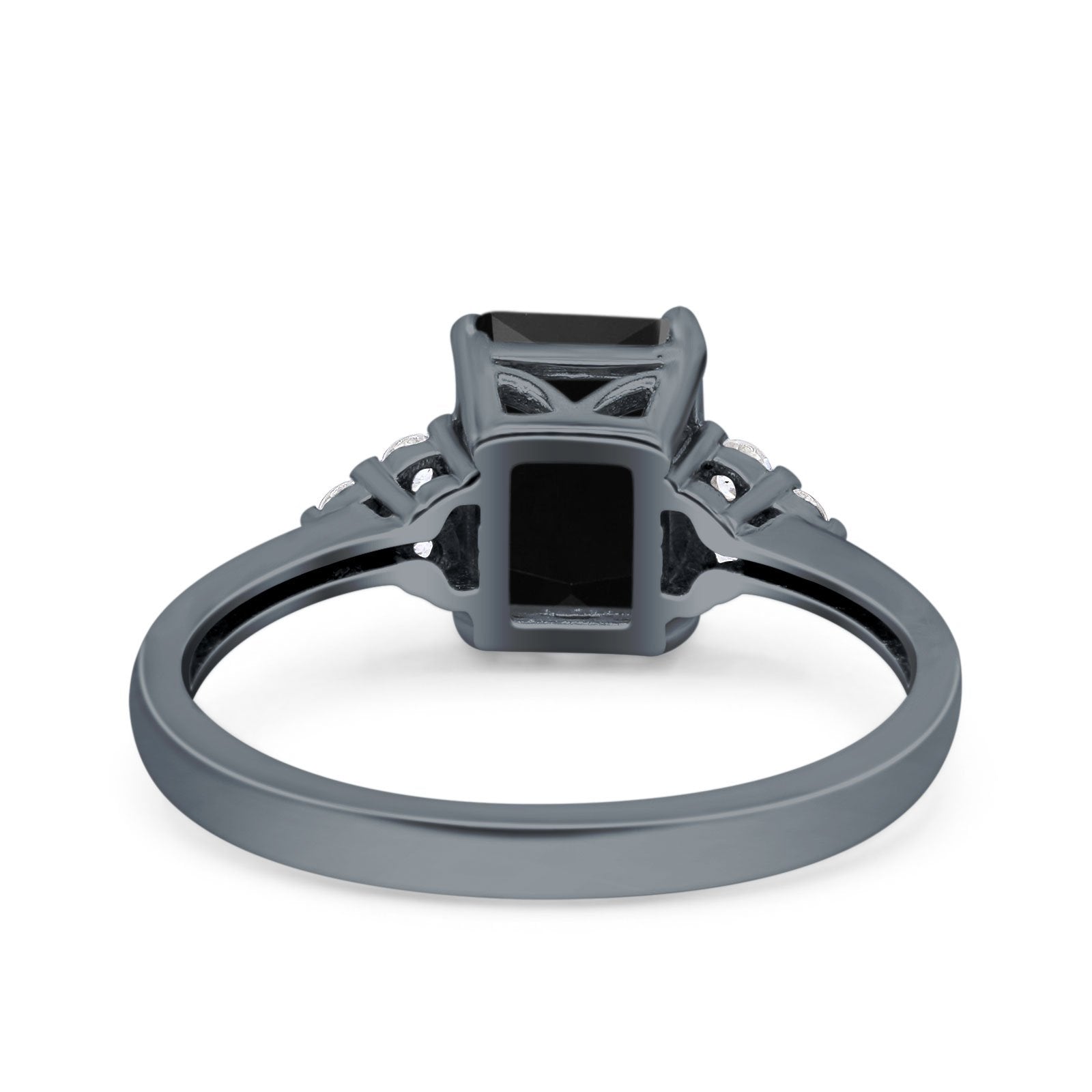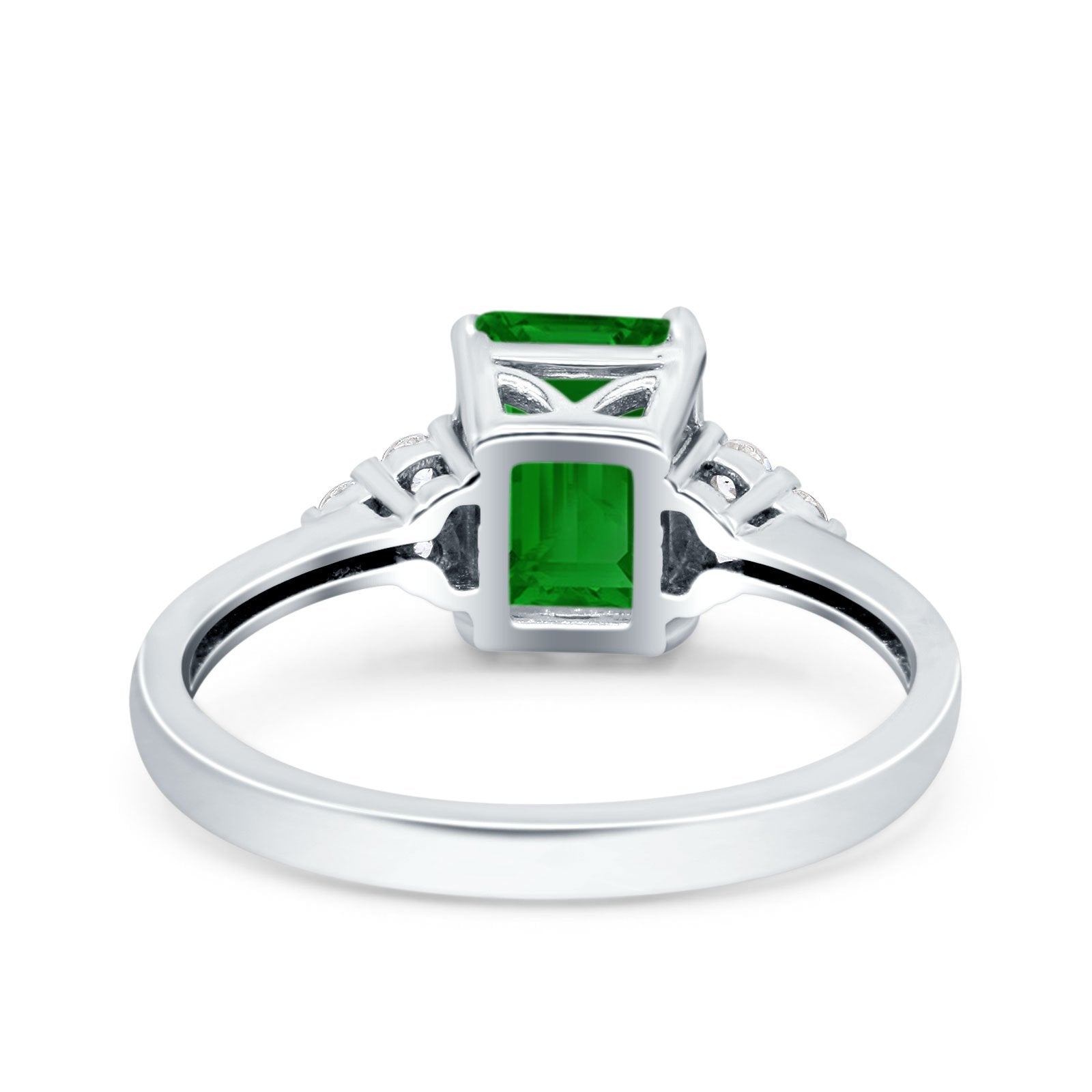 Emerald Cut Art Deco Wedding Engagement Ring Round Simulated Cubic Zirconia 925 Sterling Silver