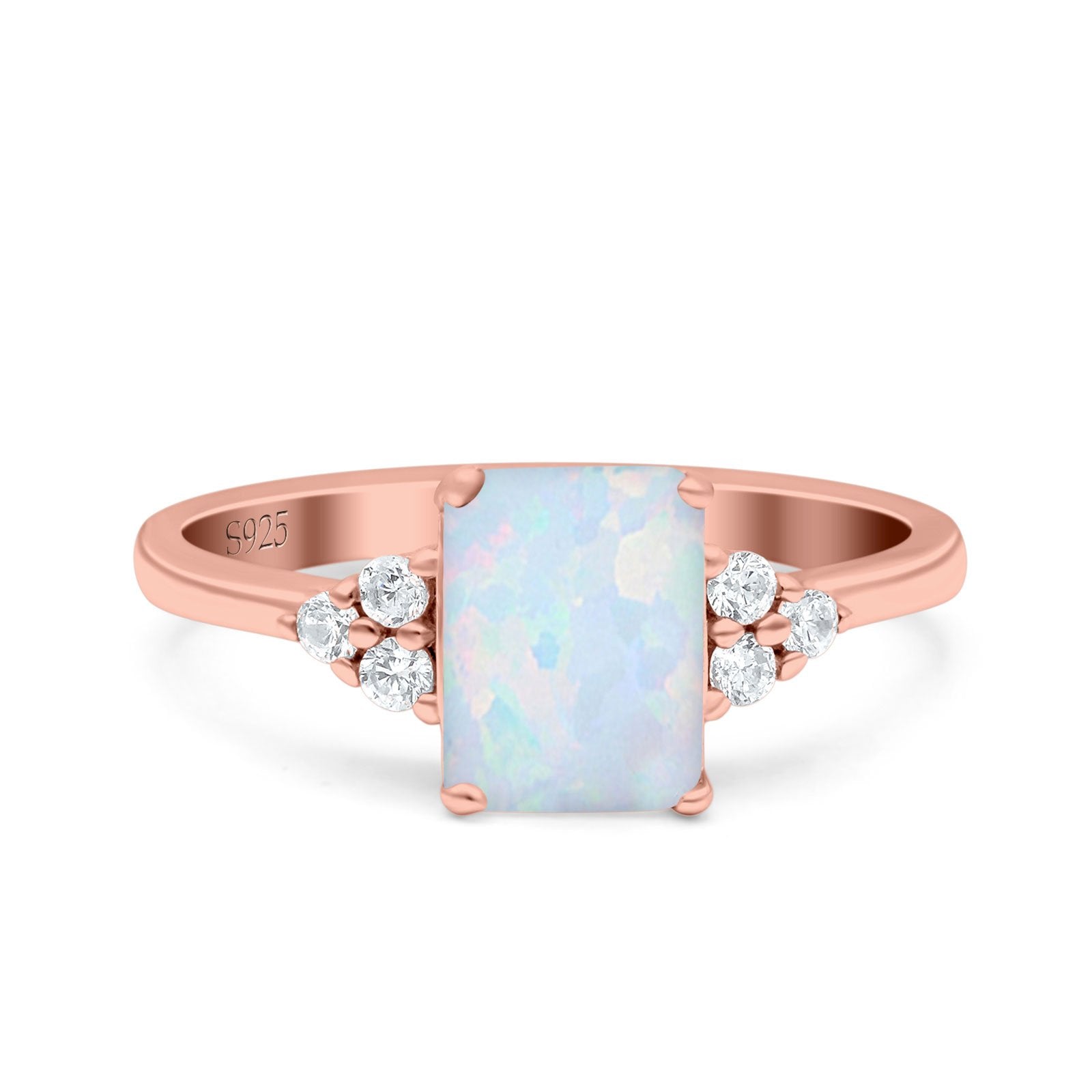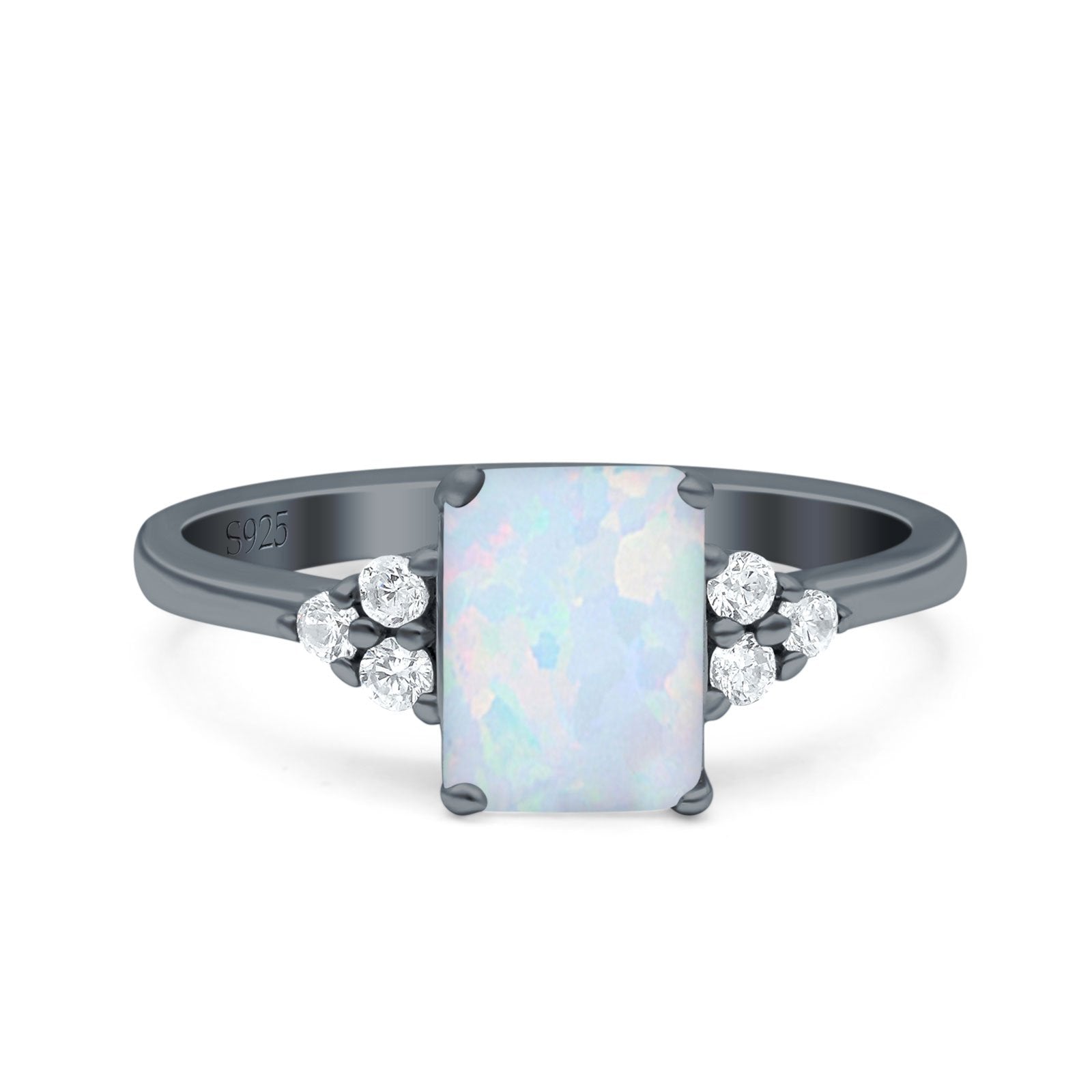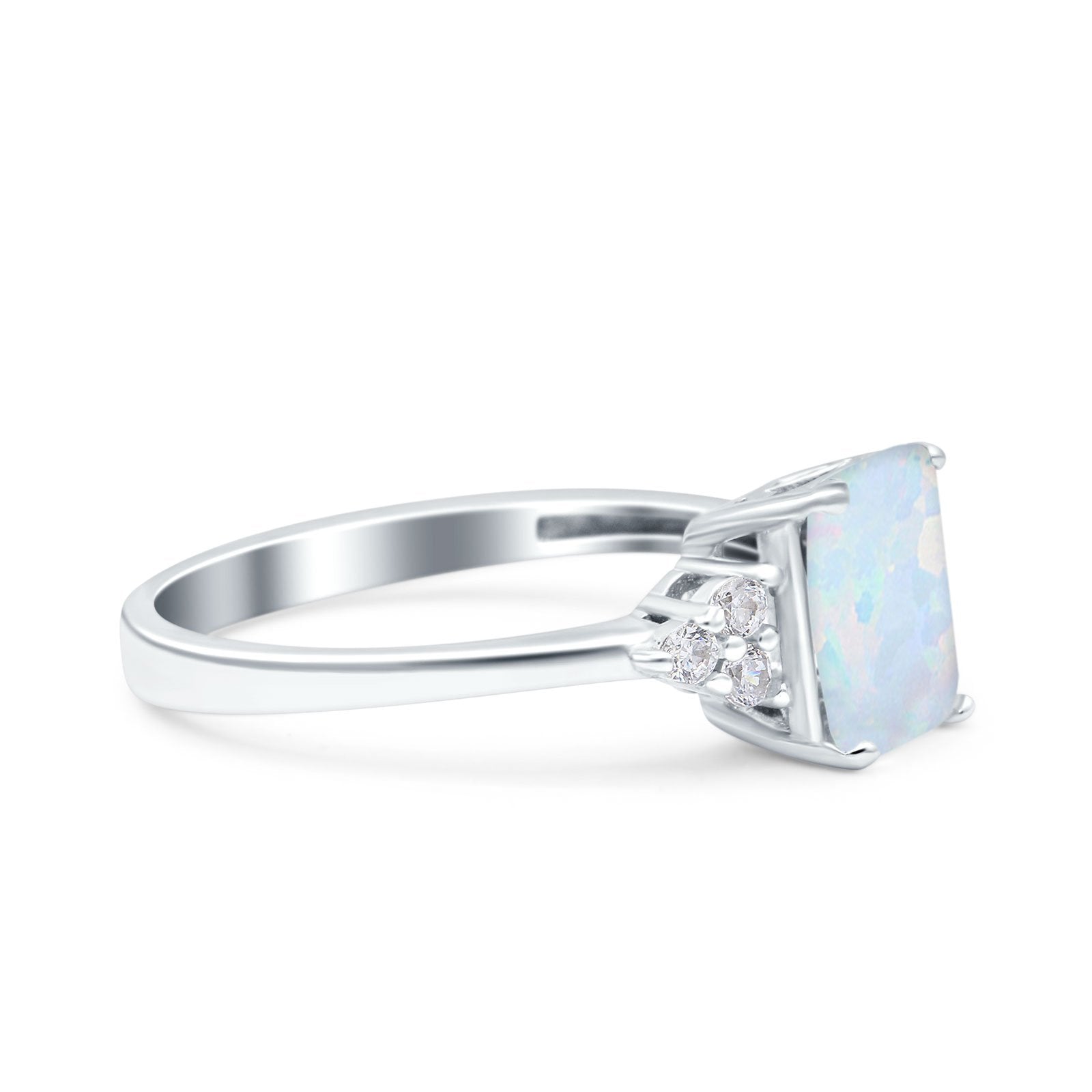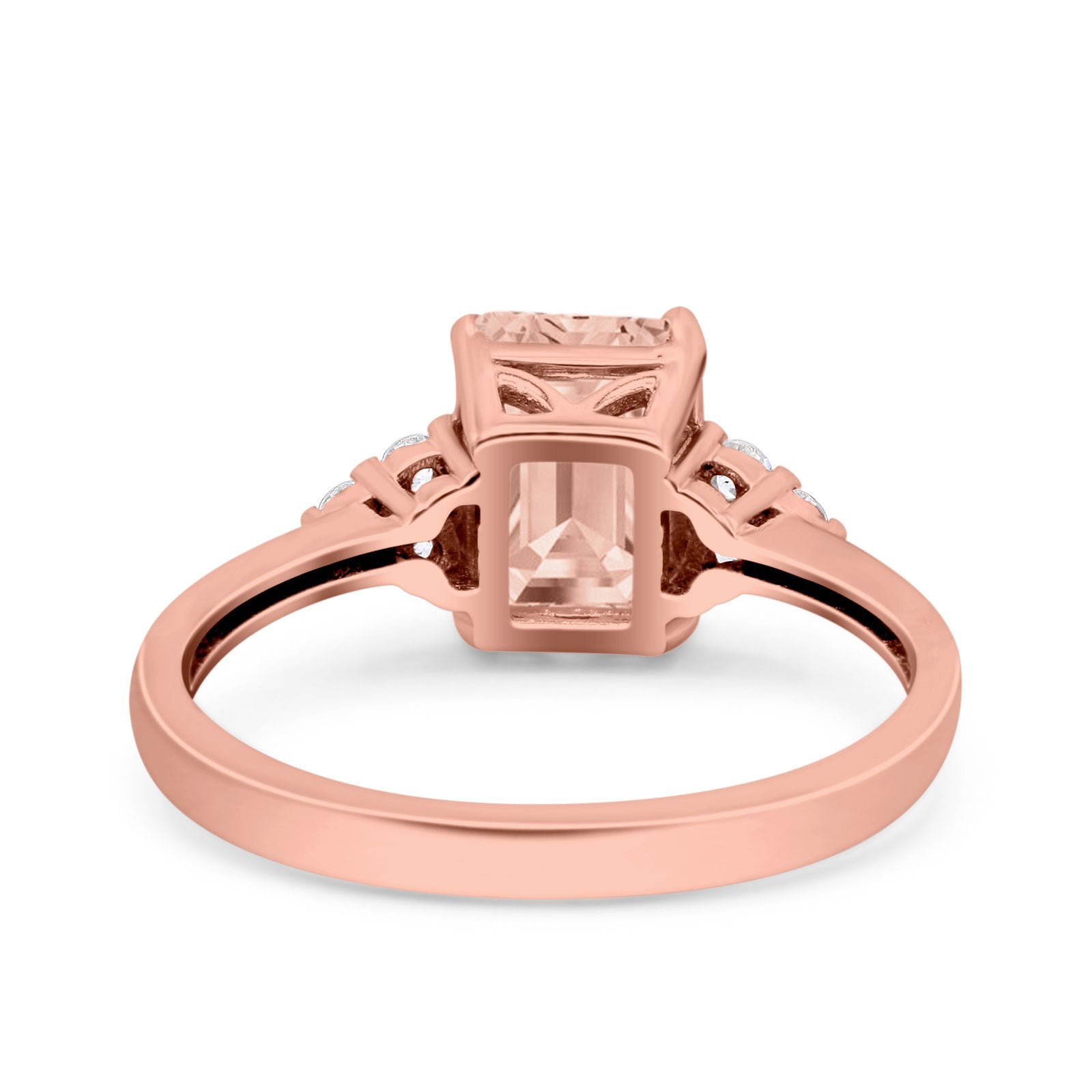 Emerald Cut Art Deco Wedding Engagement Ring Round Simulated Cubic Zirconia 925 Sterling Silver
