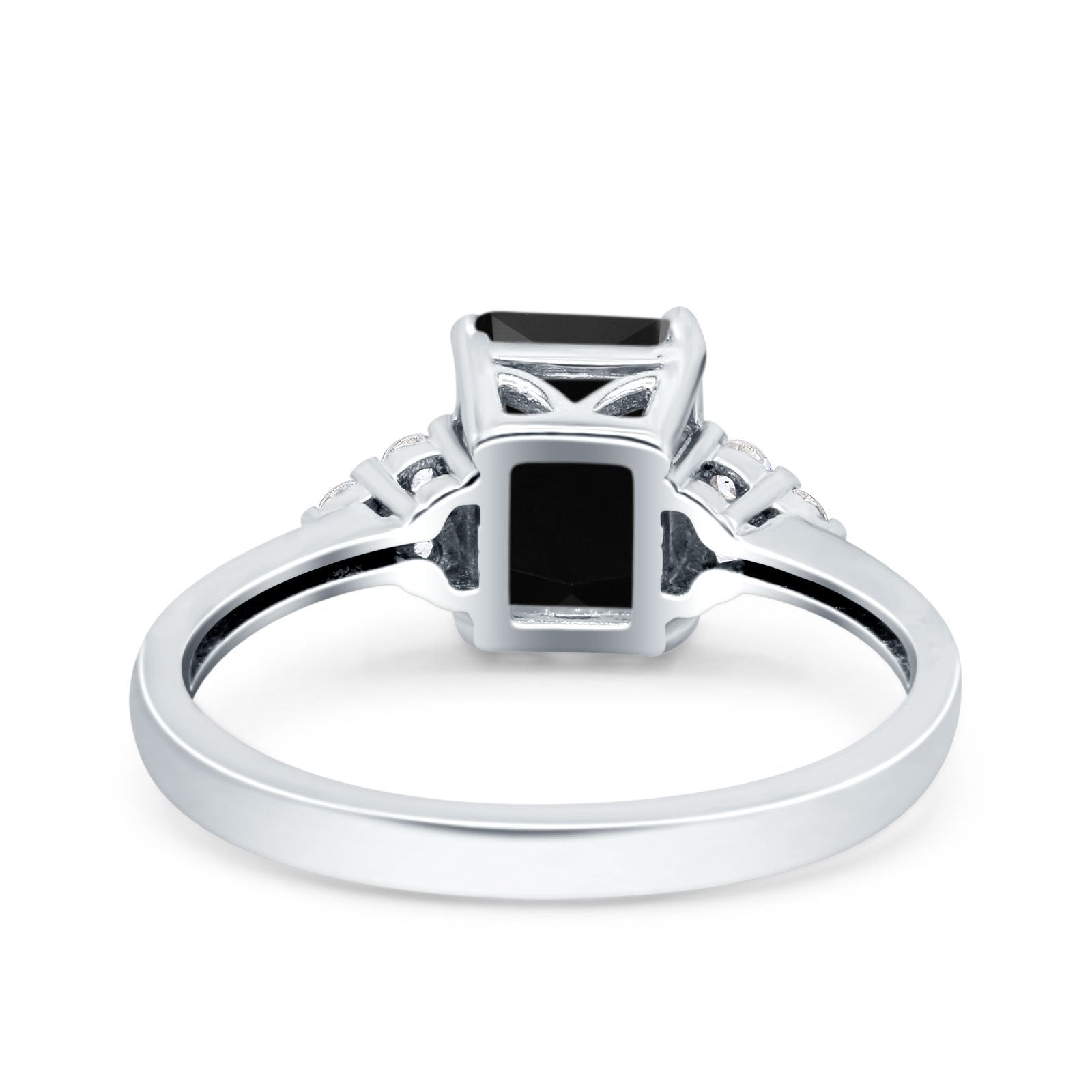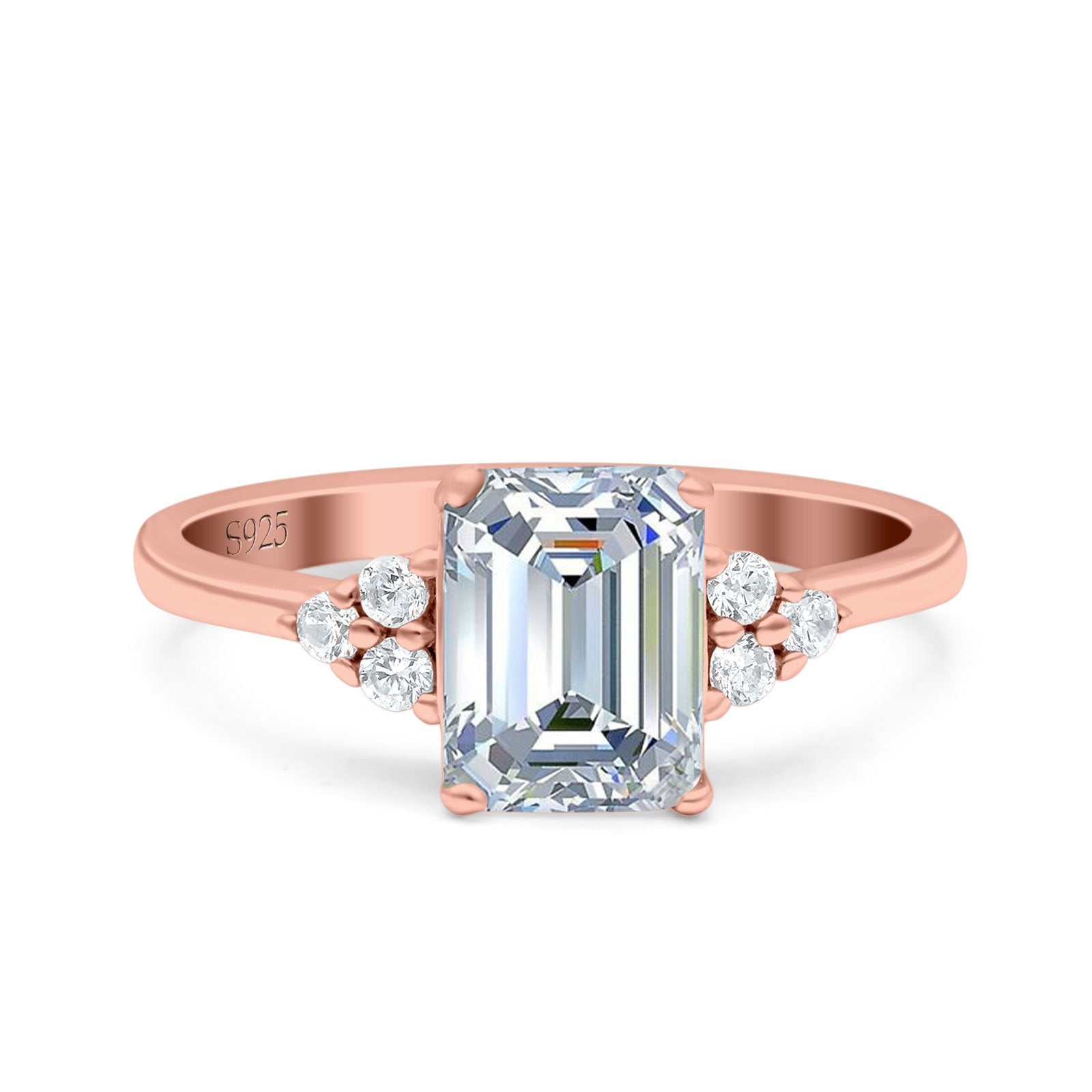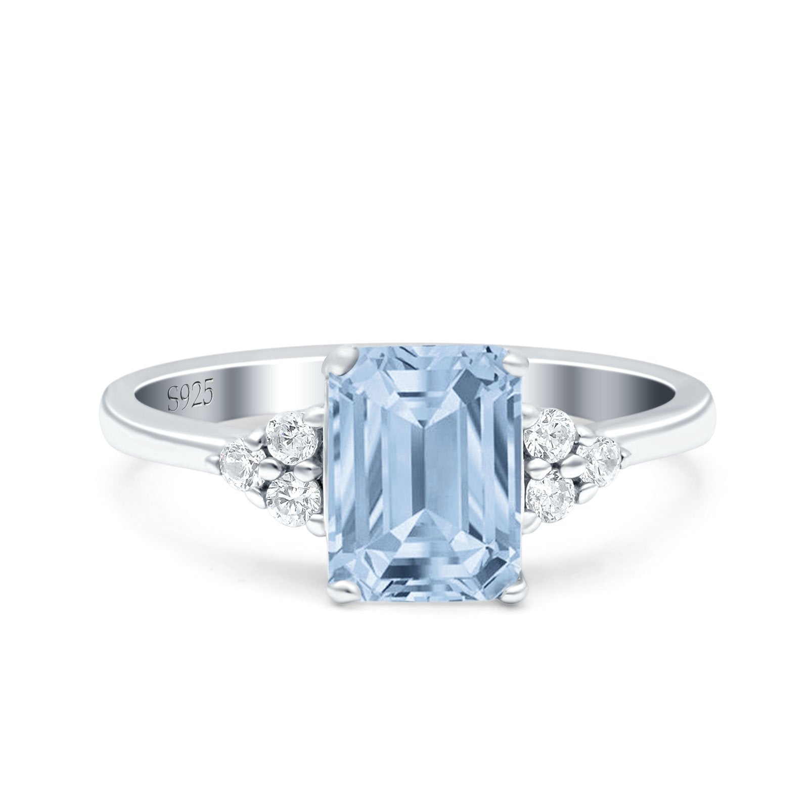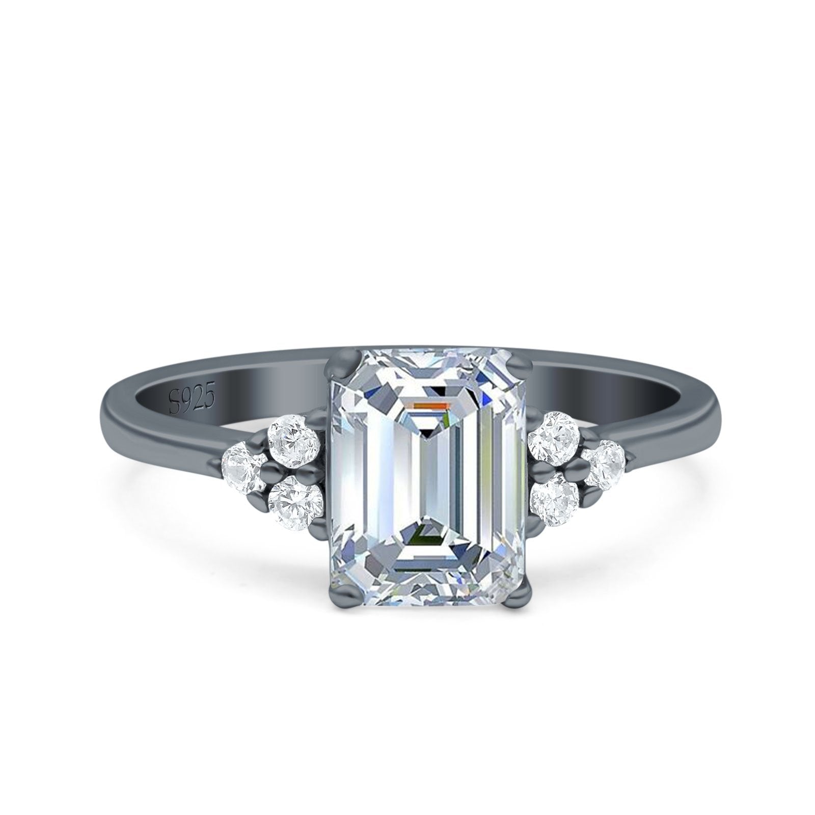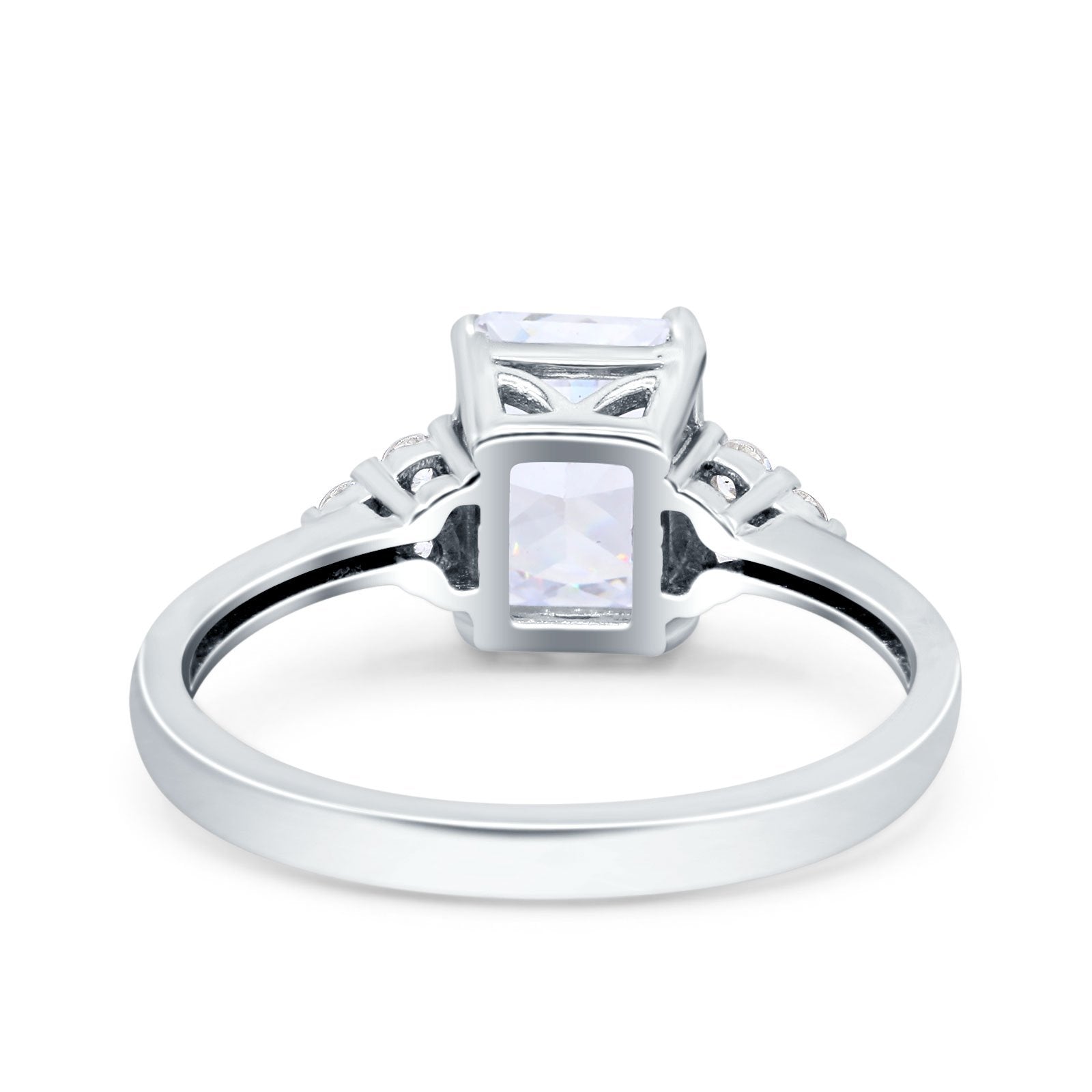Emerald Cut Art Deco Wedding Engagement Ring Round Simulated Cubic Zirconia 925 Sterling Silver