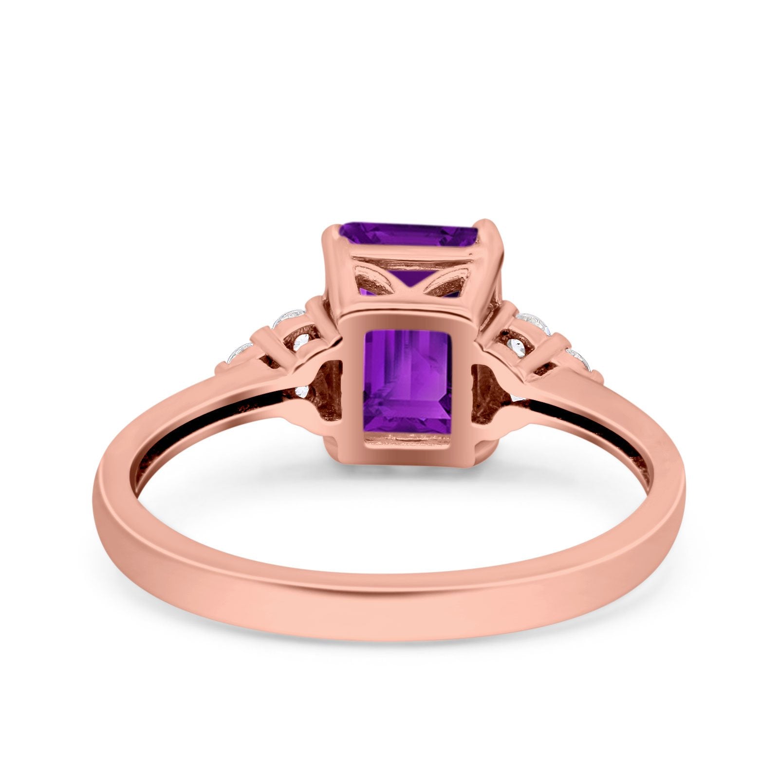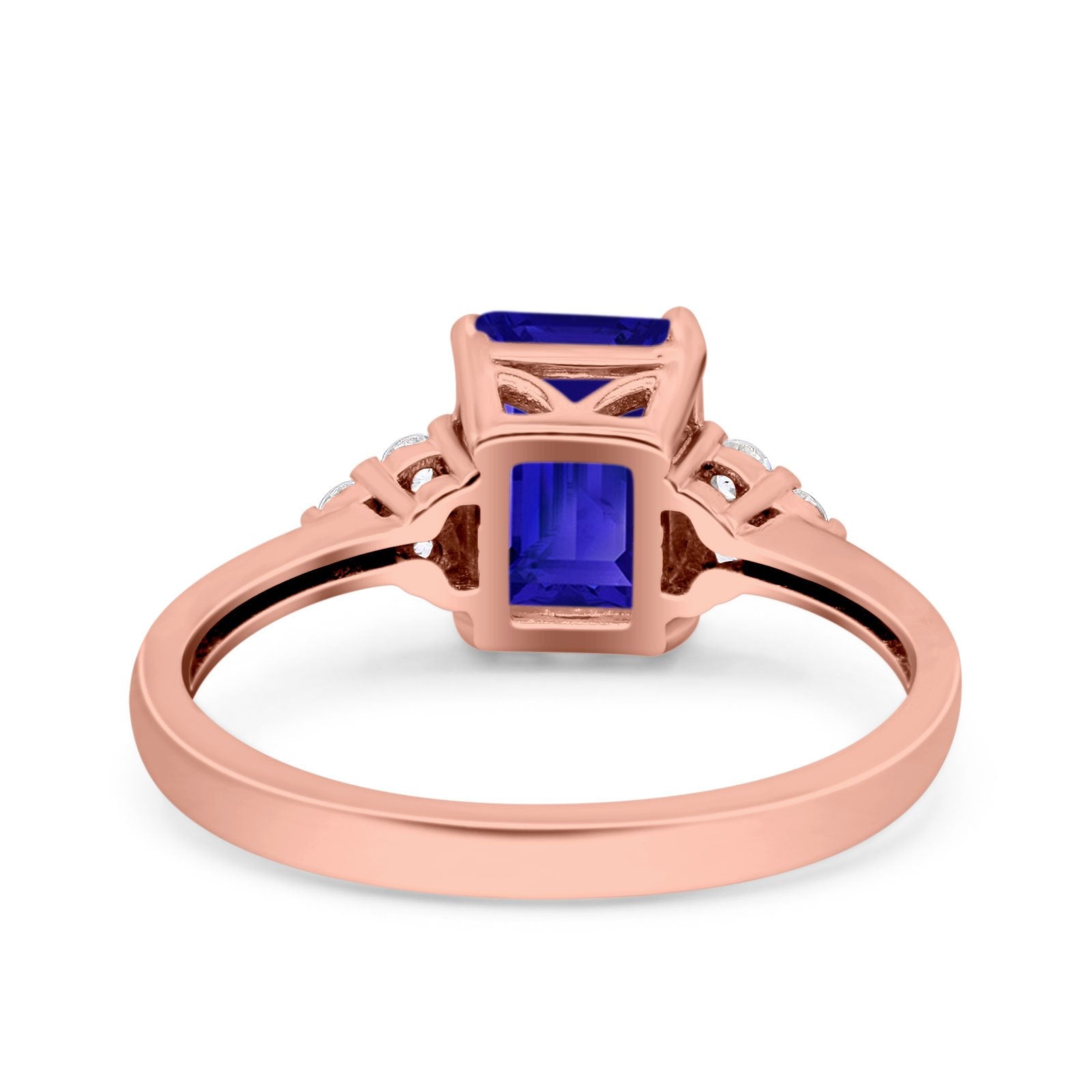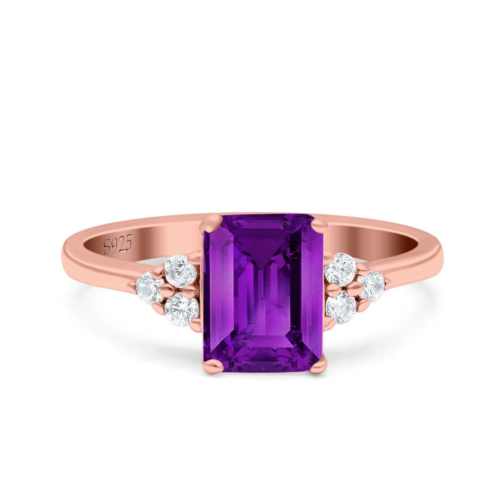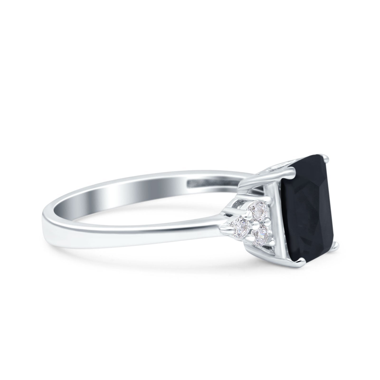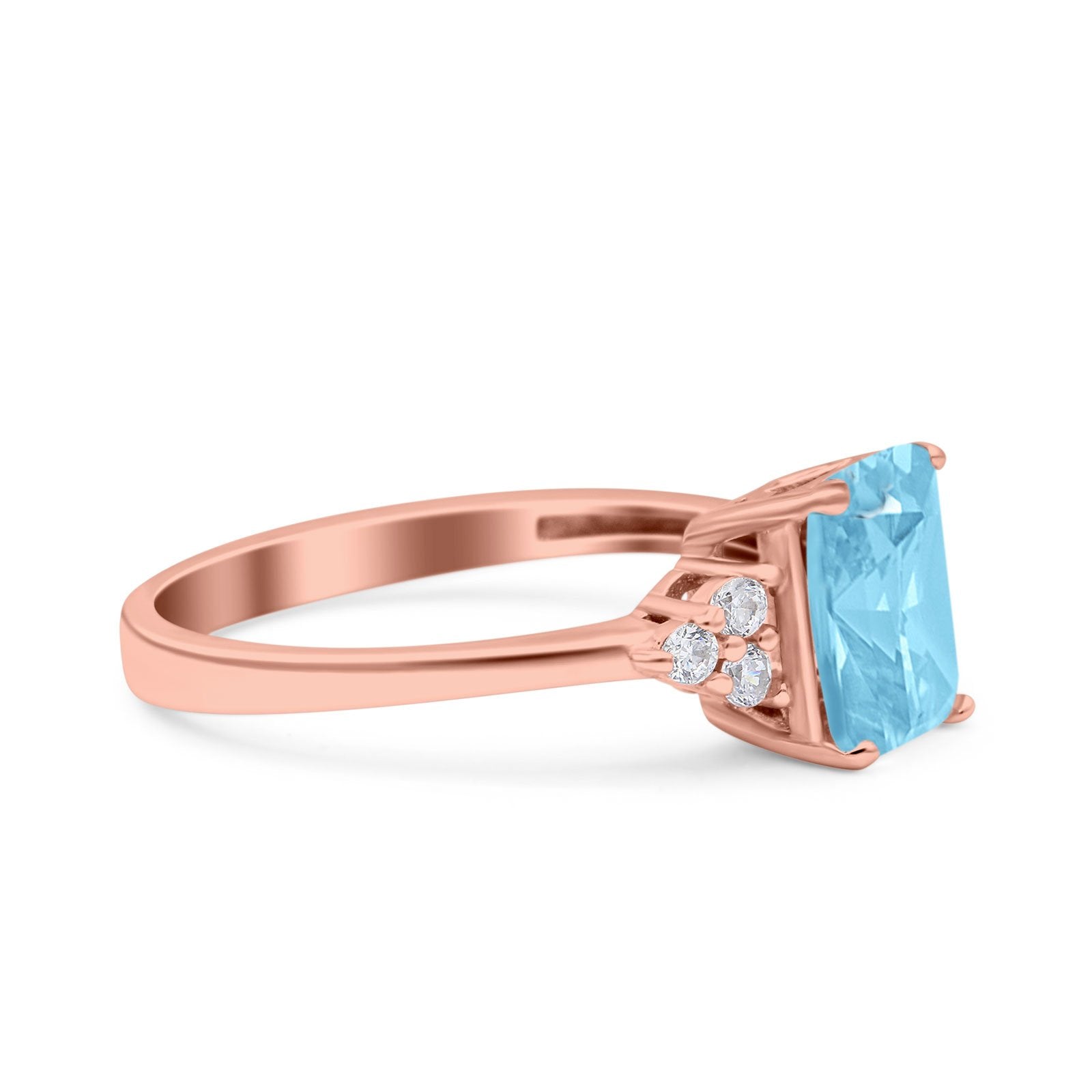 Emerald Cut Art Deco Wedding Engagement Ring Round Simulated Cubic Zirconia 925 Sterling Silver