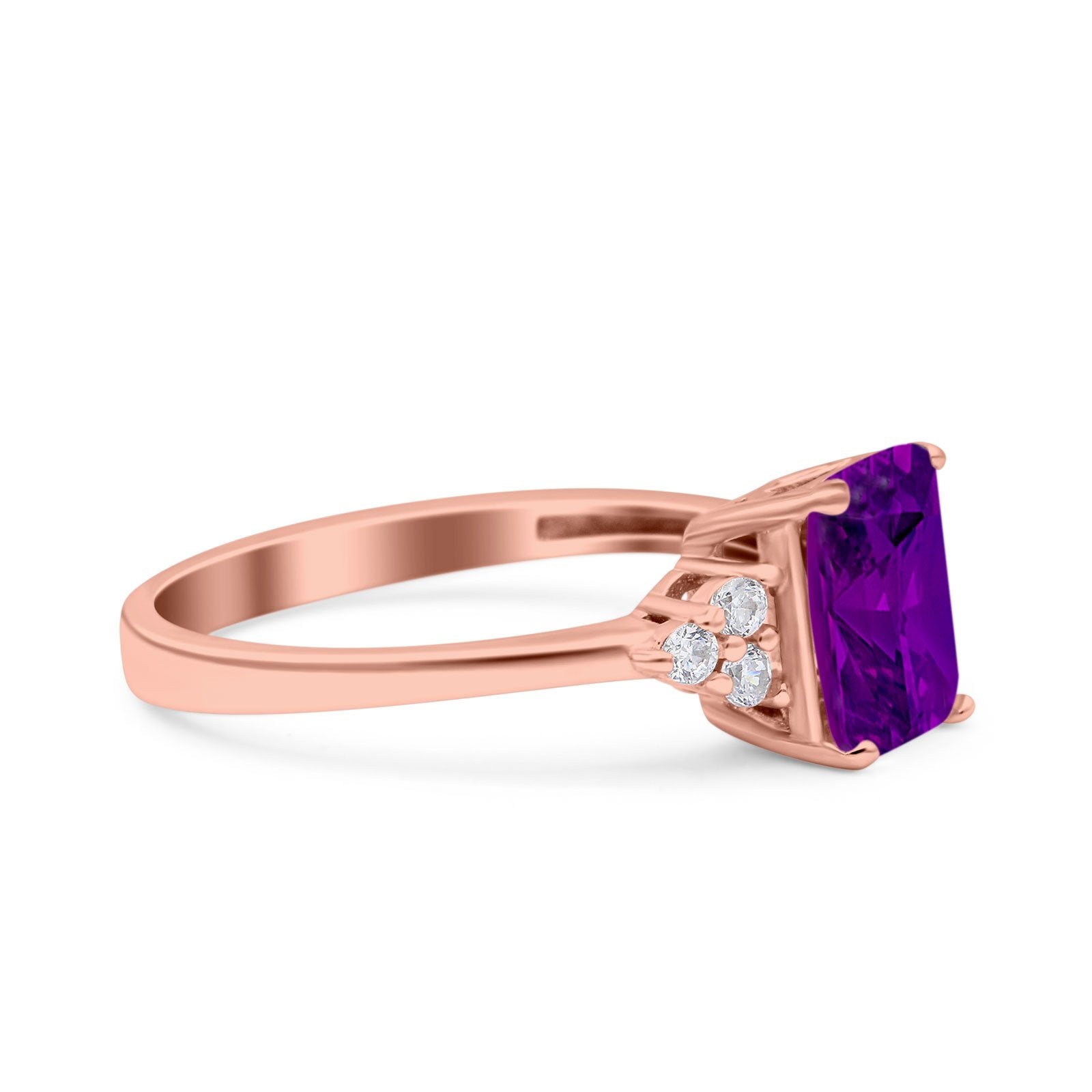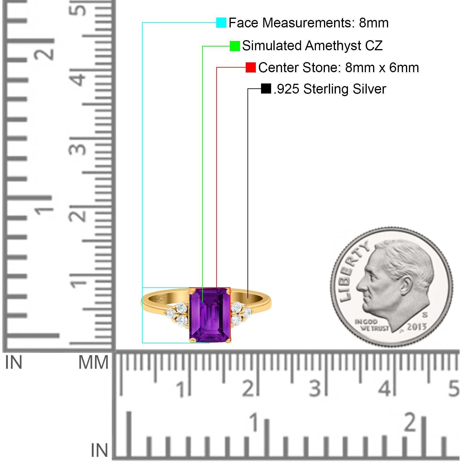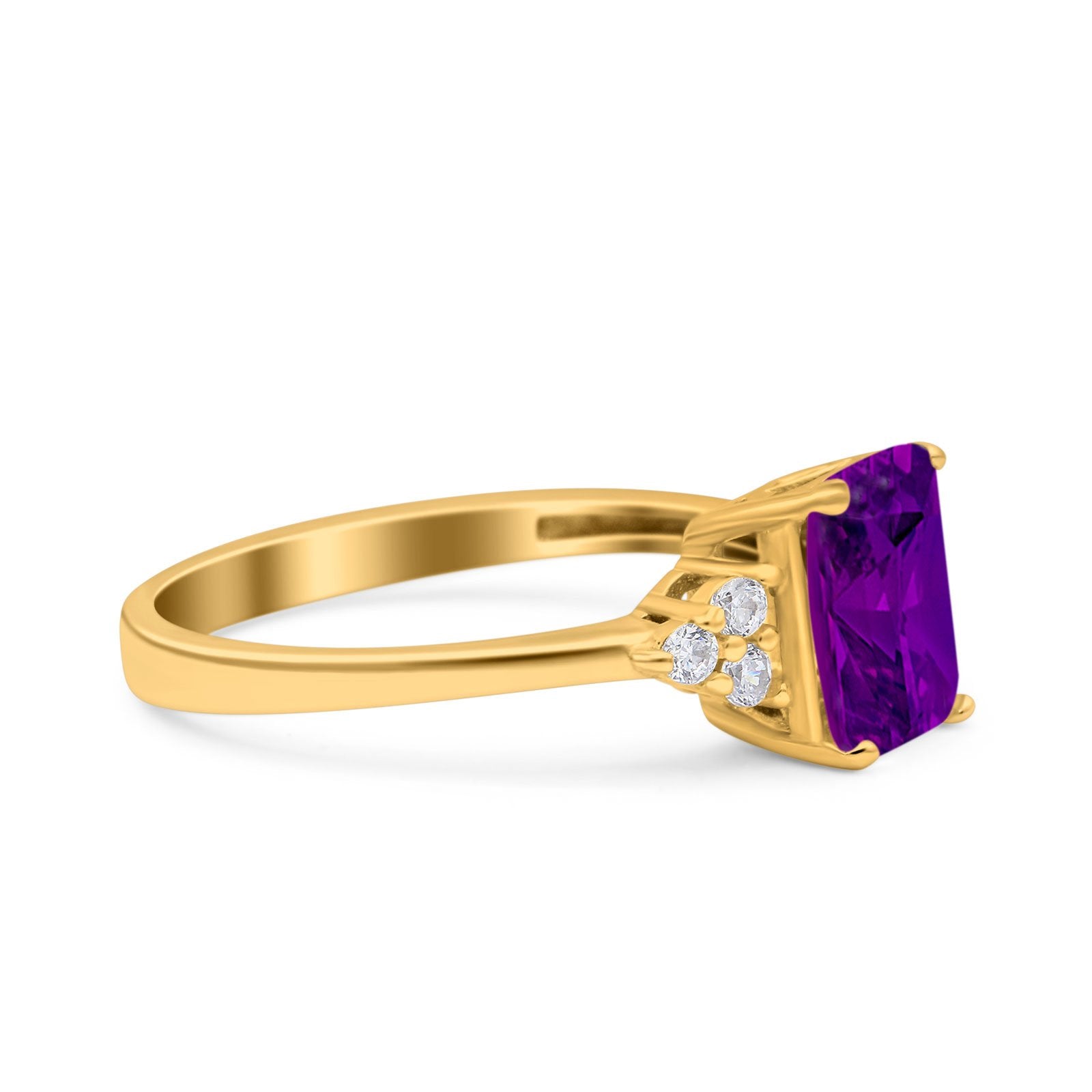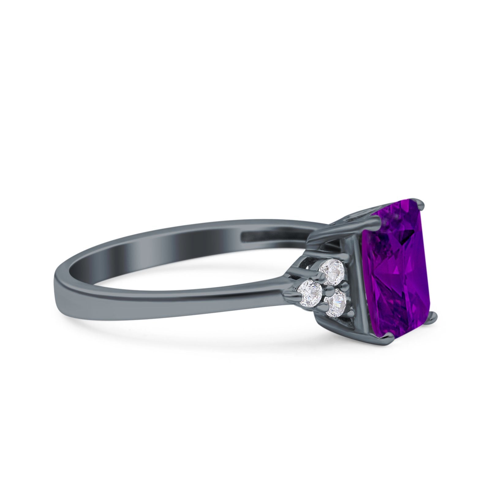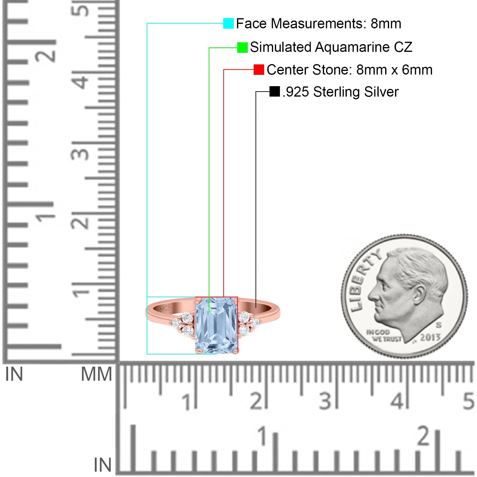 Emerald Cut Art Deco Wedding Engagement Ring Round Simulated Cubic Zirconia 925 Sterling Silver