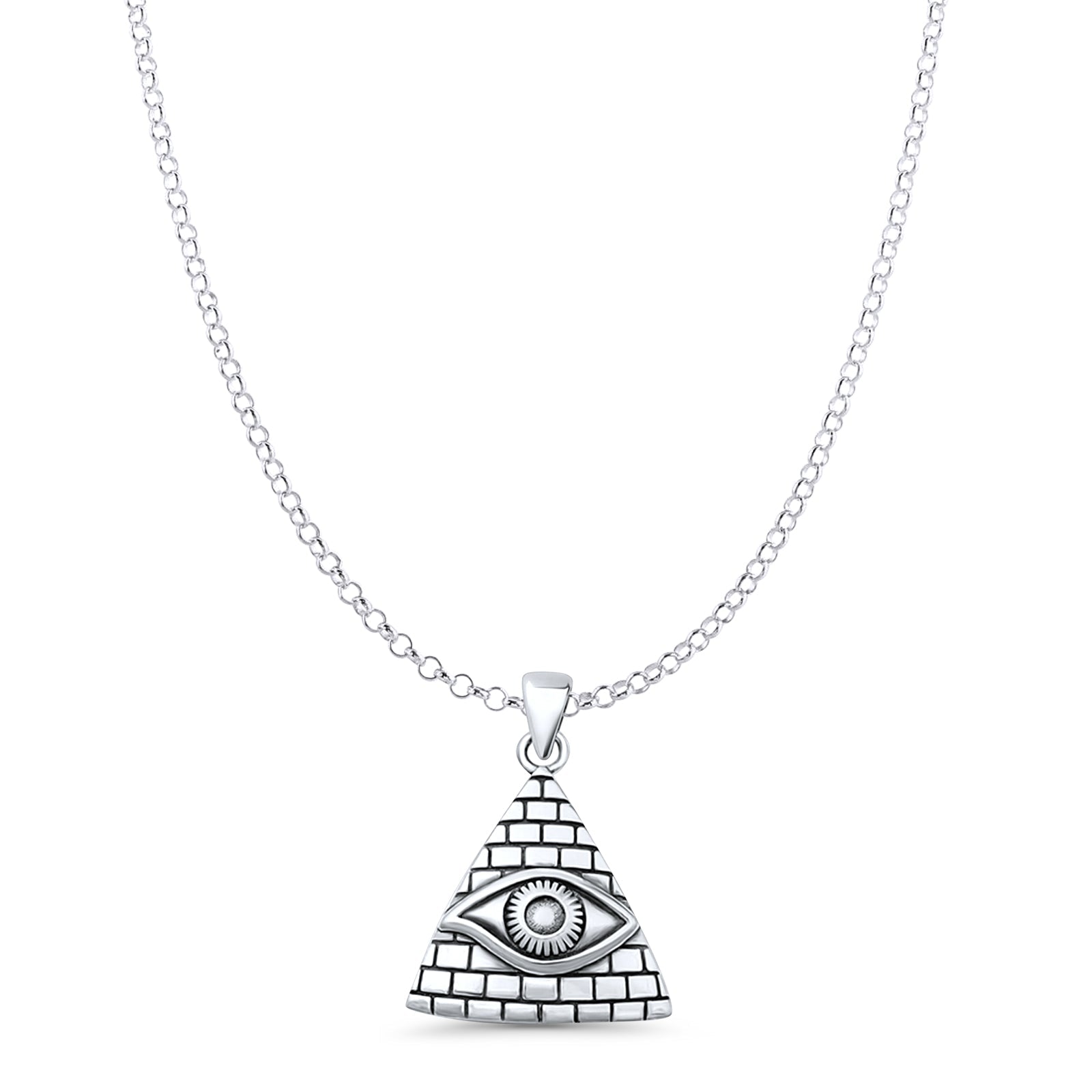 Evil Eye & Pyramid Pendant Rolo Chain Necklace Oxidized 925 Sterling Silver
