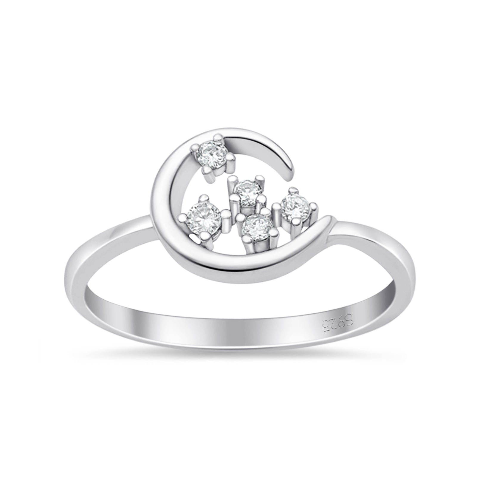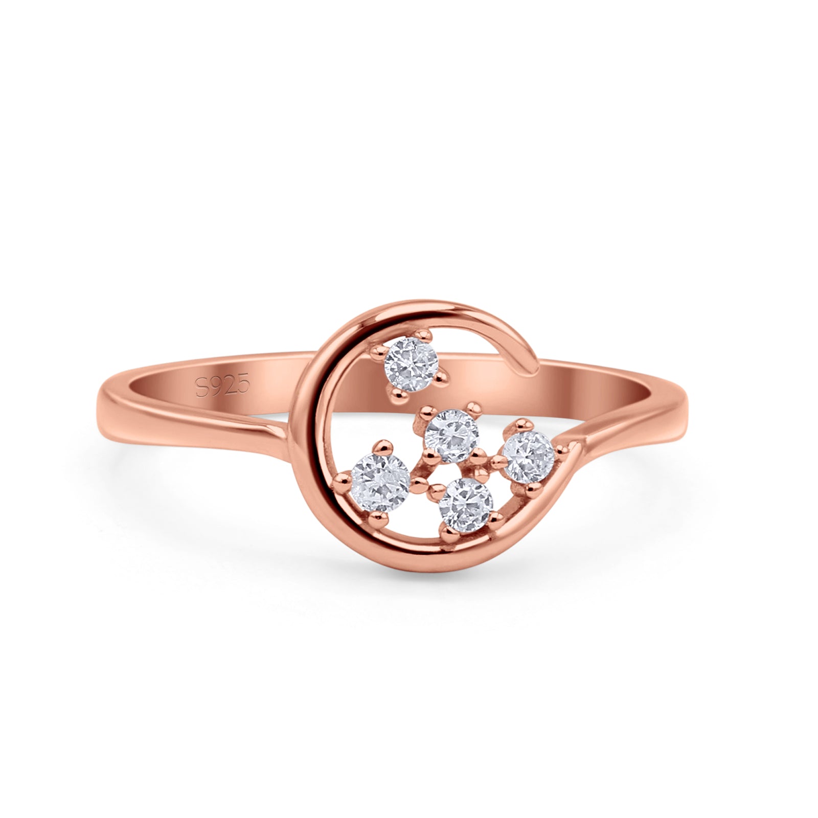 Fashionable Universe Cute Moon Engagement Wedding Round Simulated Cubic Zirconia 925 Sterling Silver