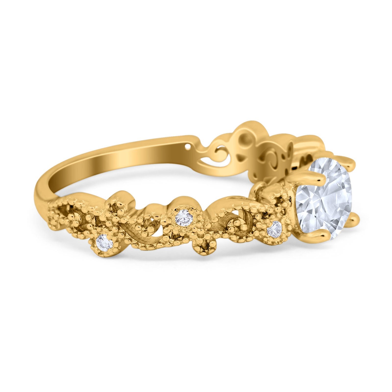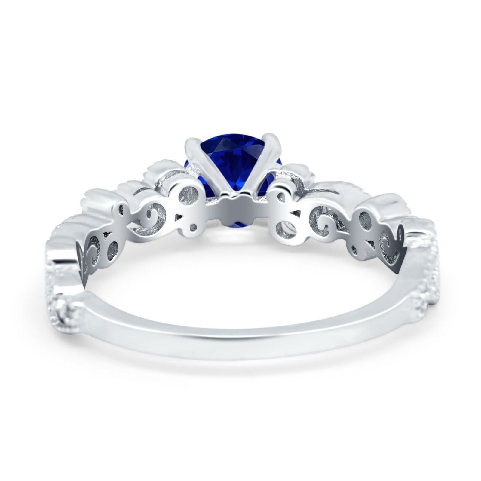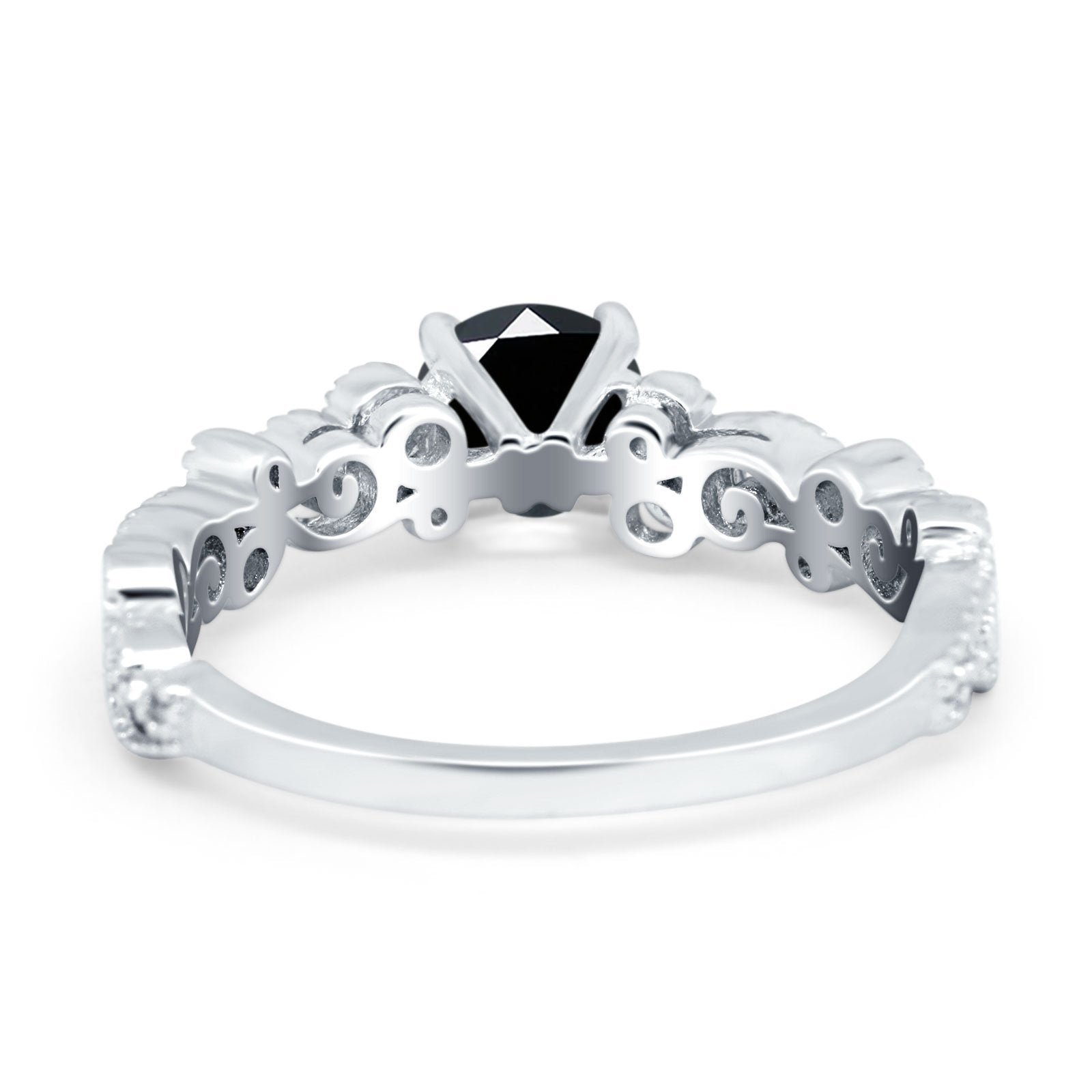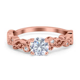 Filigree Art Deco Wedding Ring Round Simulated Cubic Zirconia 925 Sterling Silver