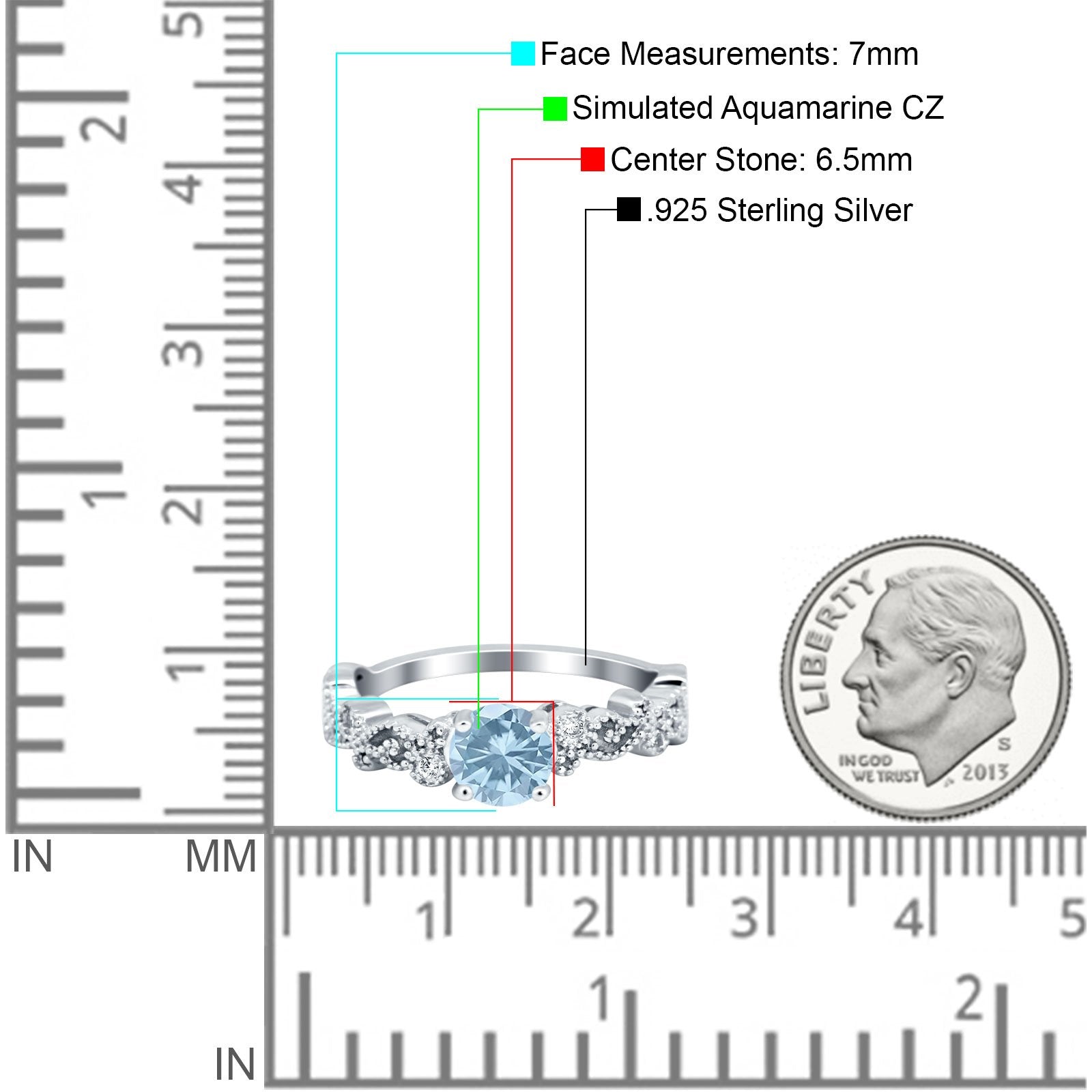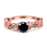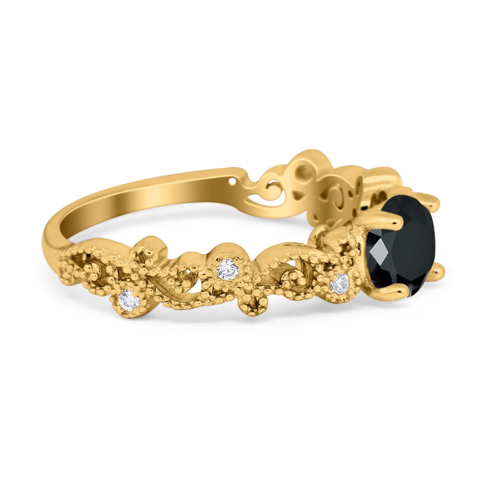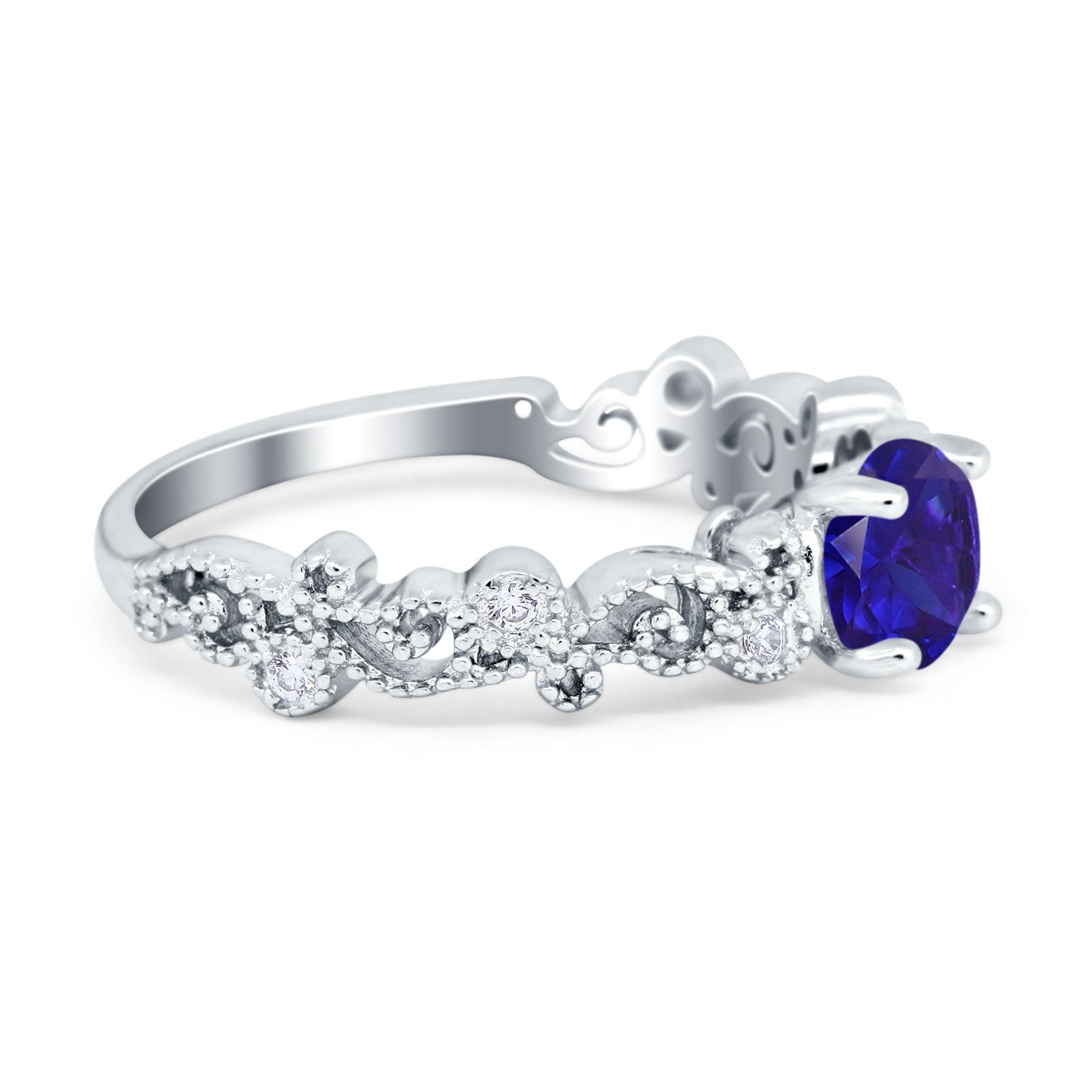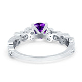Filigree Art Deco Wedding Ring Round Simulated Cubic Zirconia 925 Sterling Silver