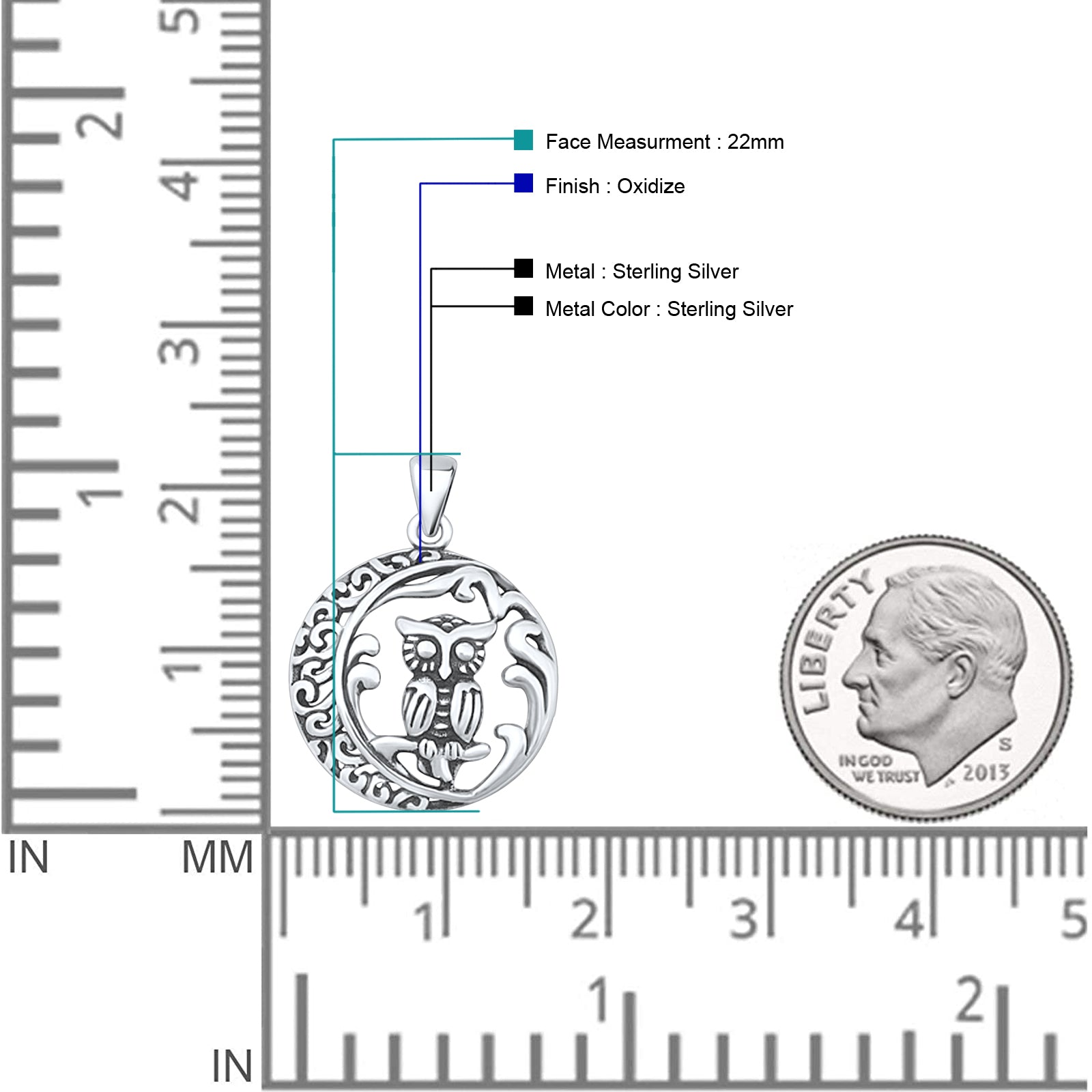 Style: Oxidized Filigree Owl & Moon Pendant Necklace
