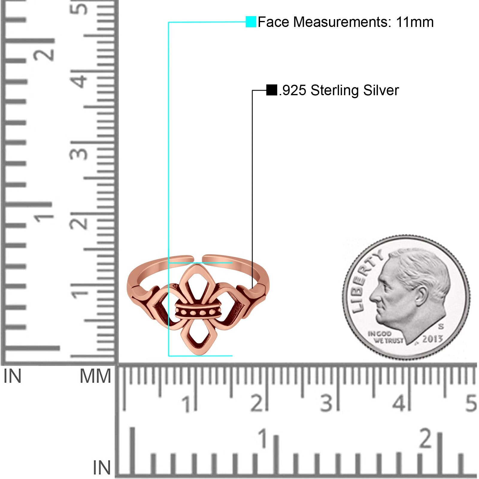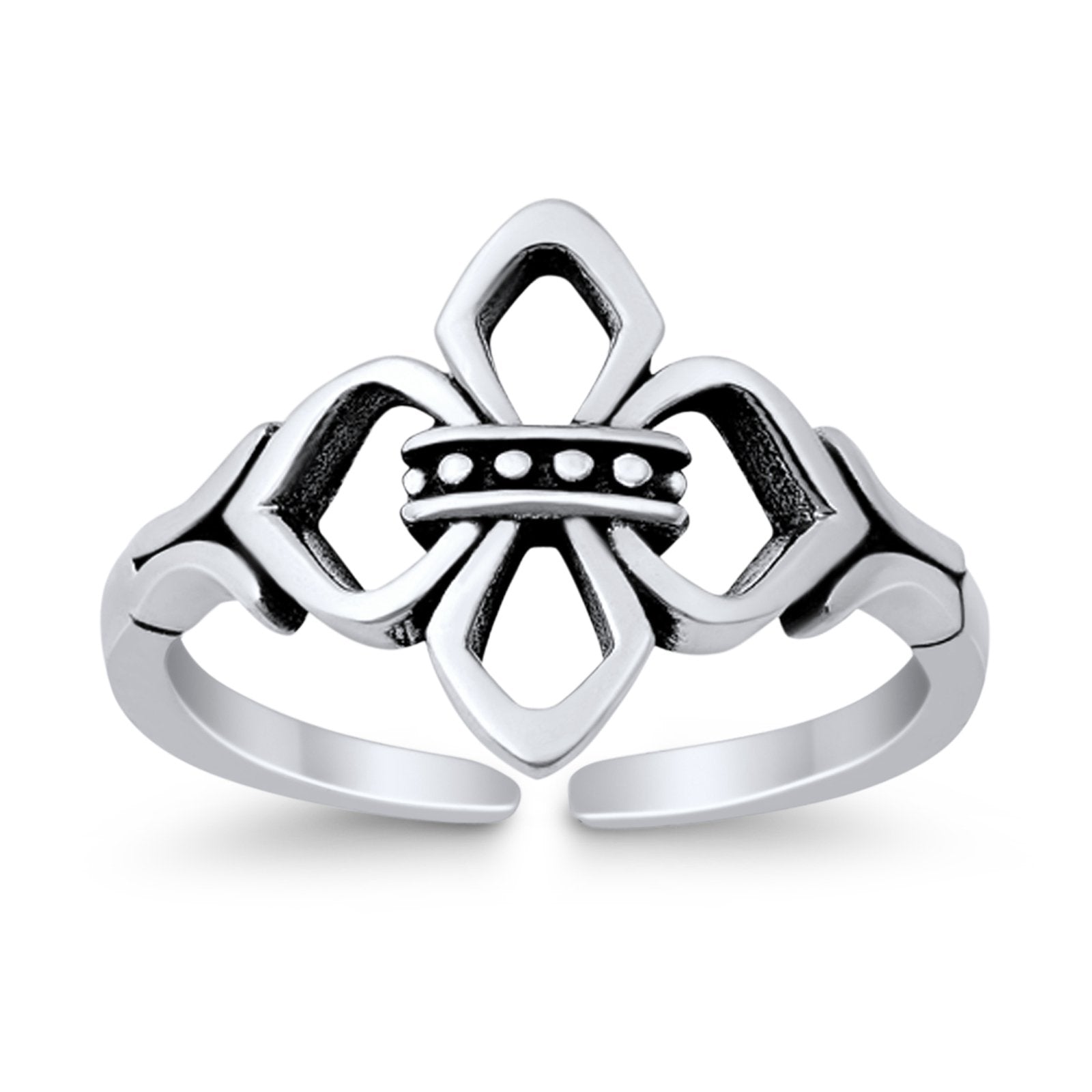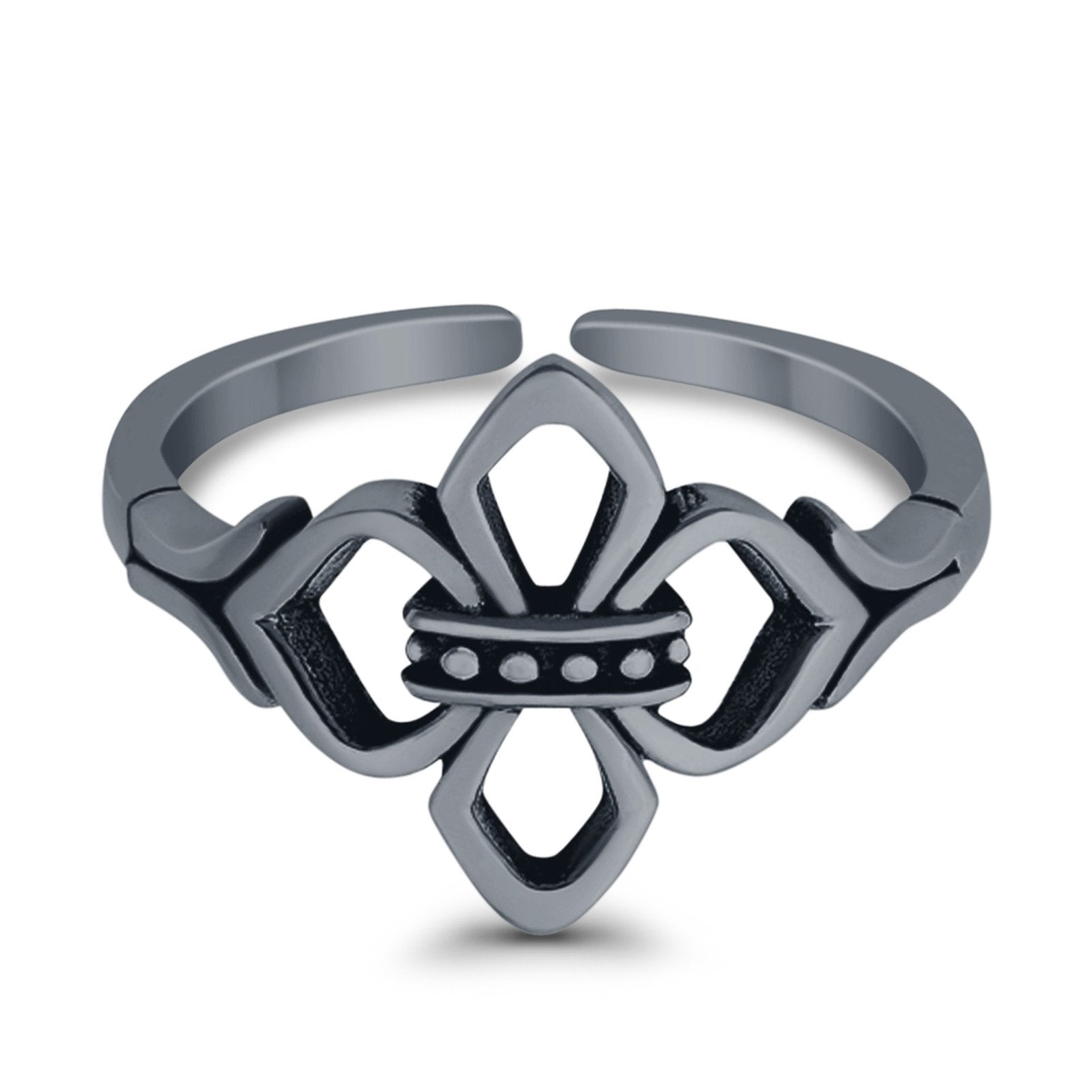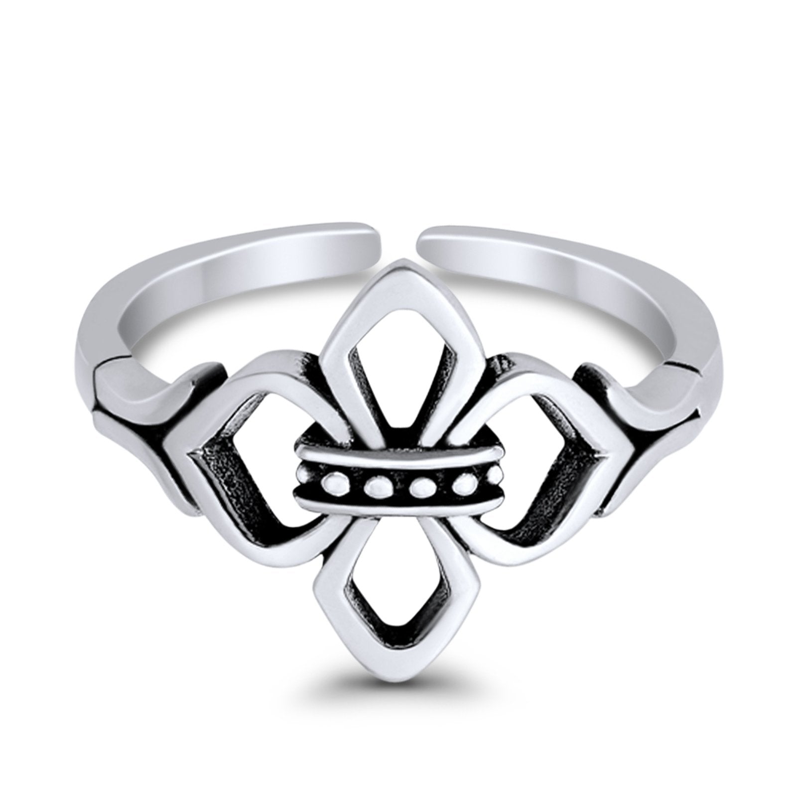 Fleur De Lis Toe Ring Adjustable Band 925 Sterling Silver (11mm)