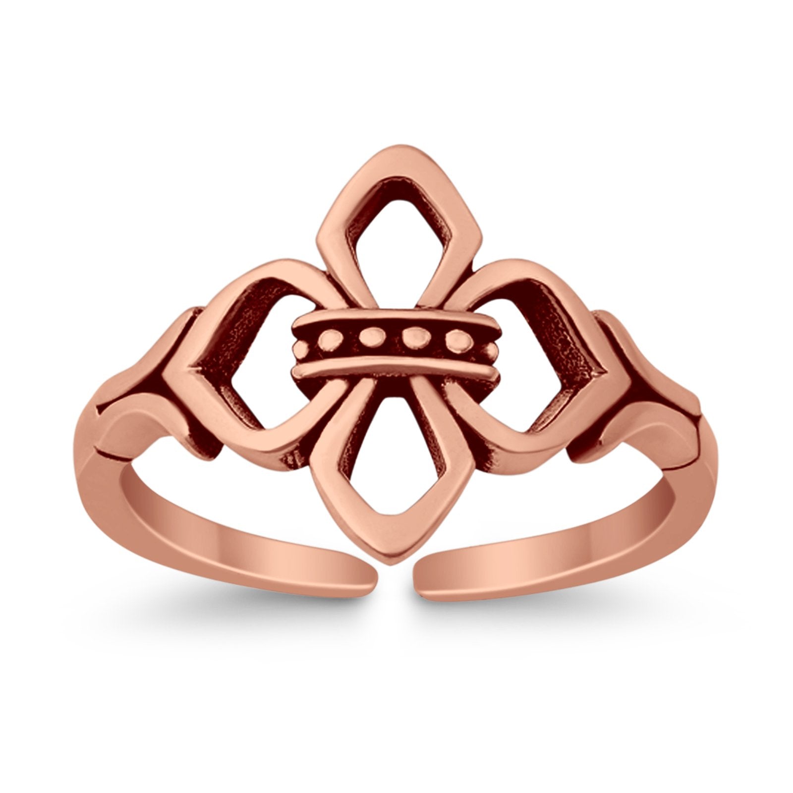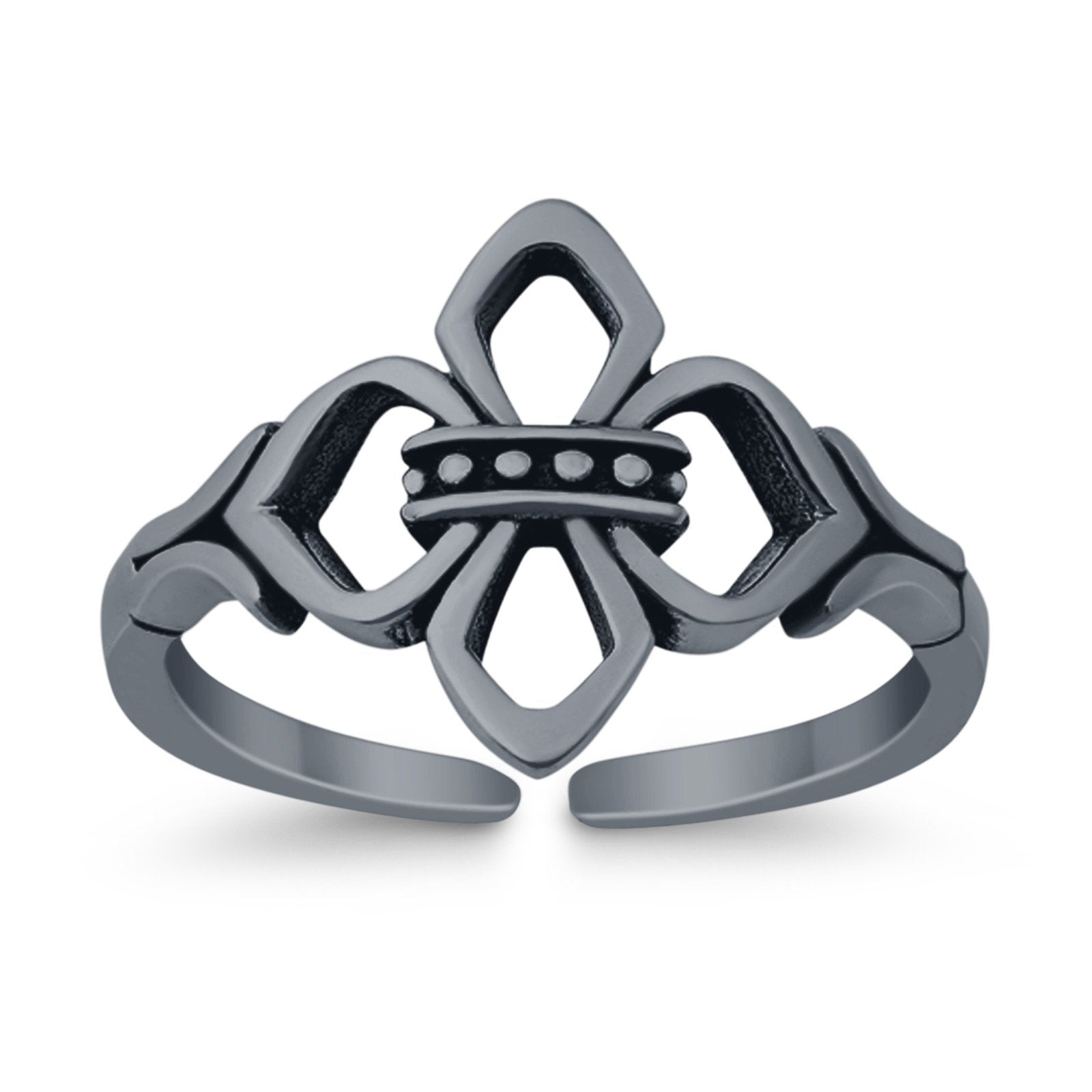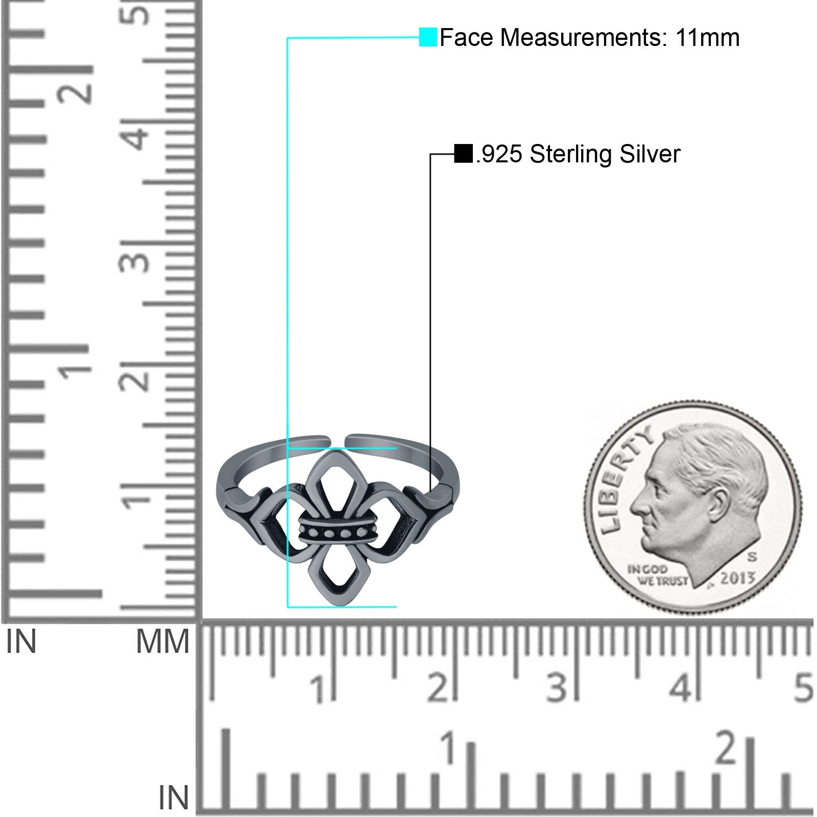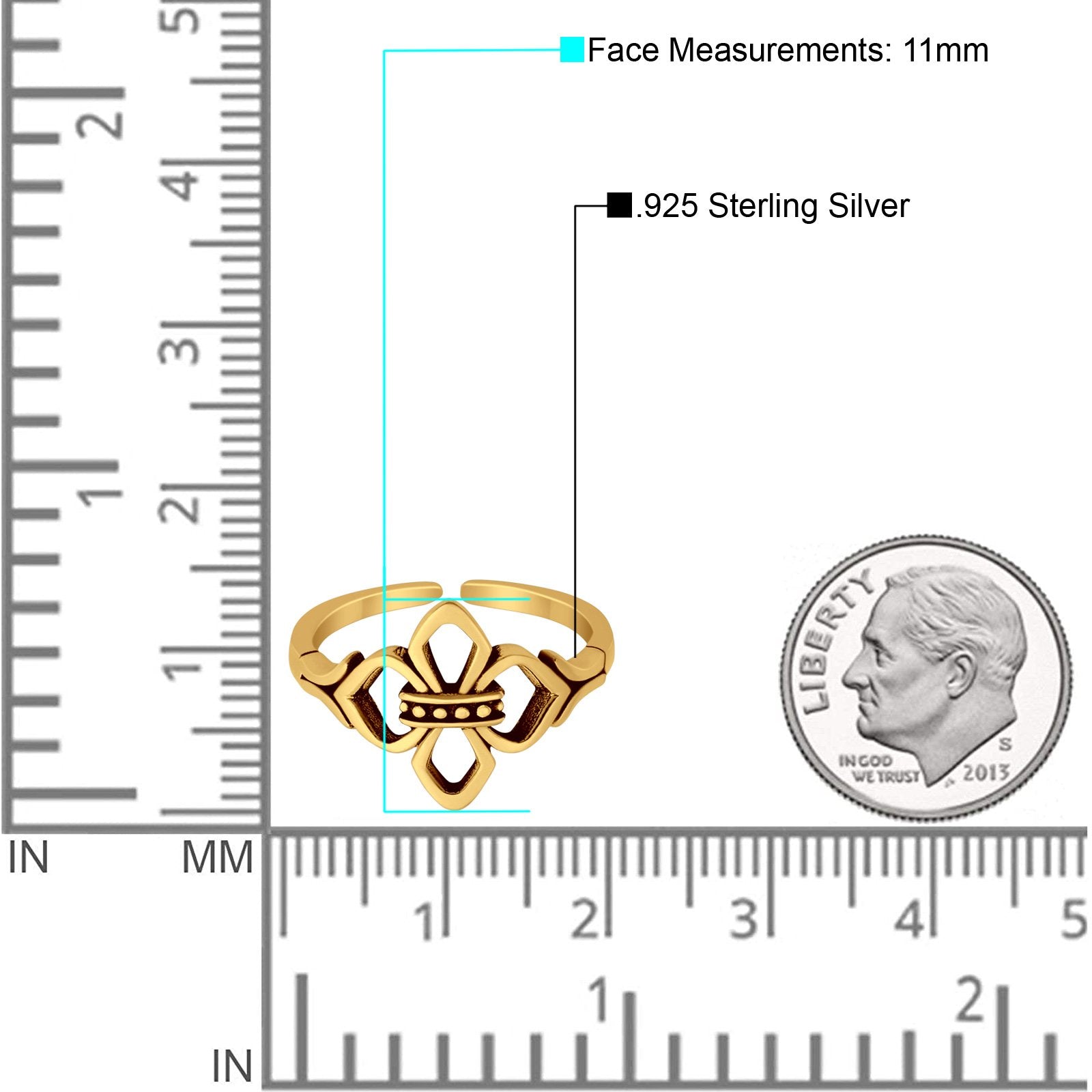 Fleur De Lis Toe Ring Adjustable Band 925 Sterling Silver (11mm)