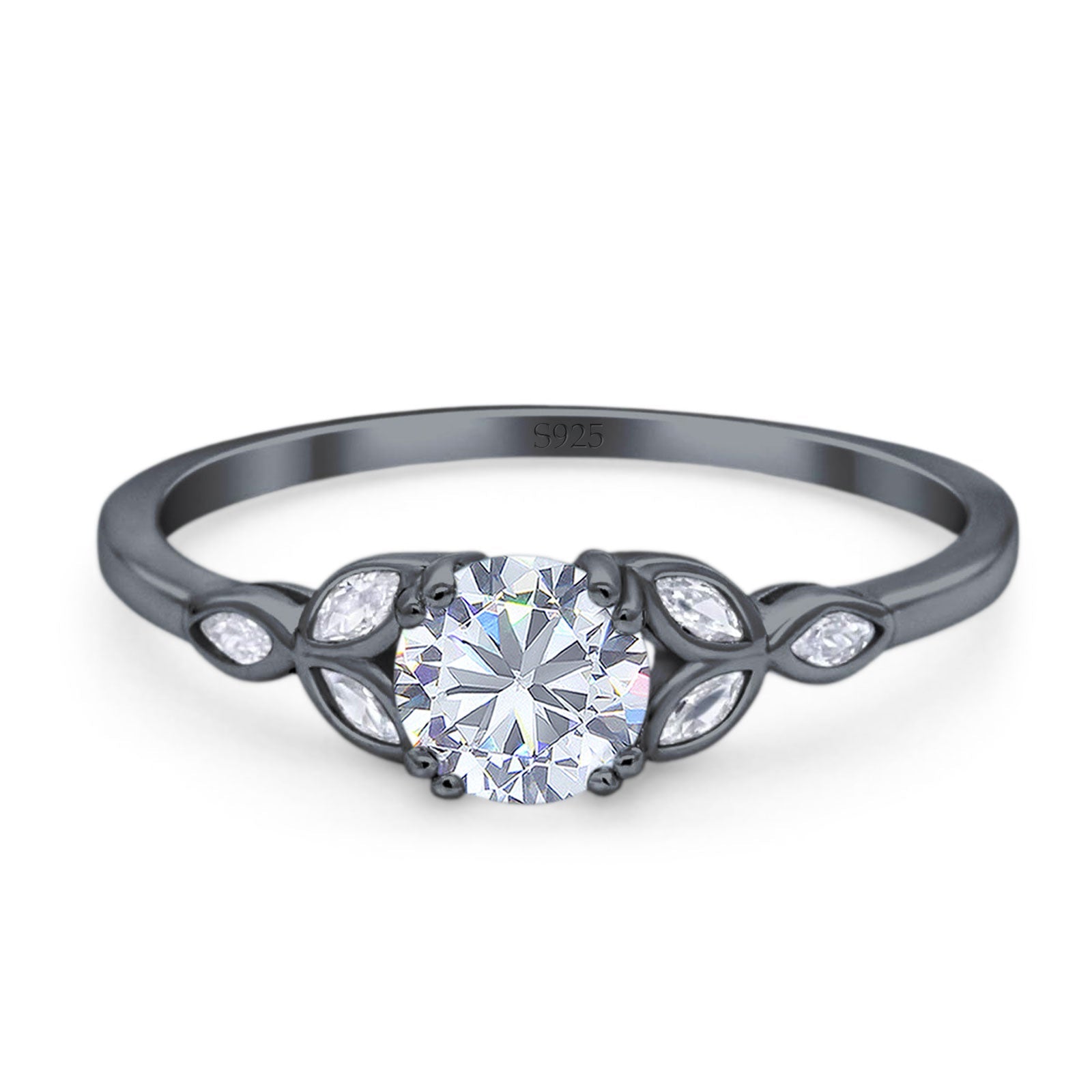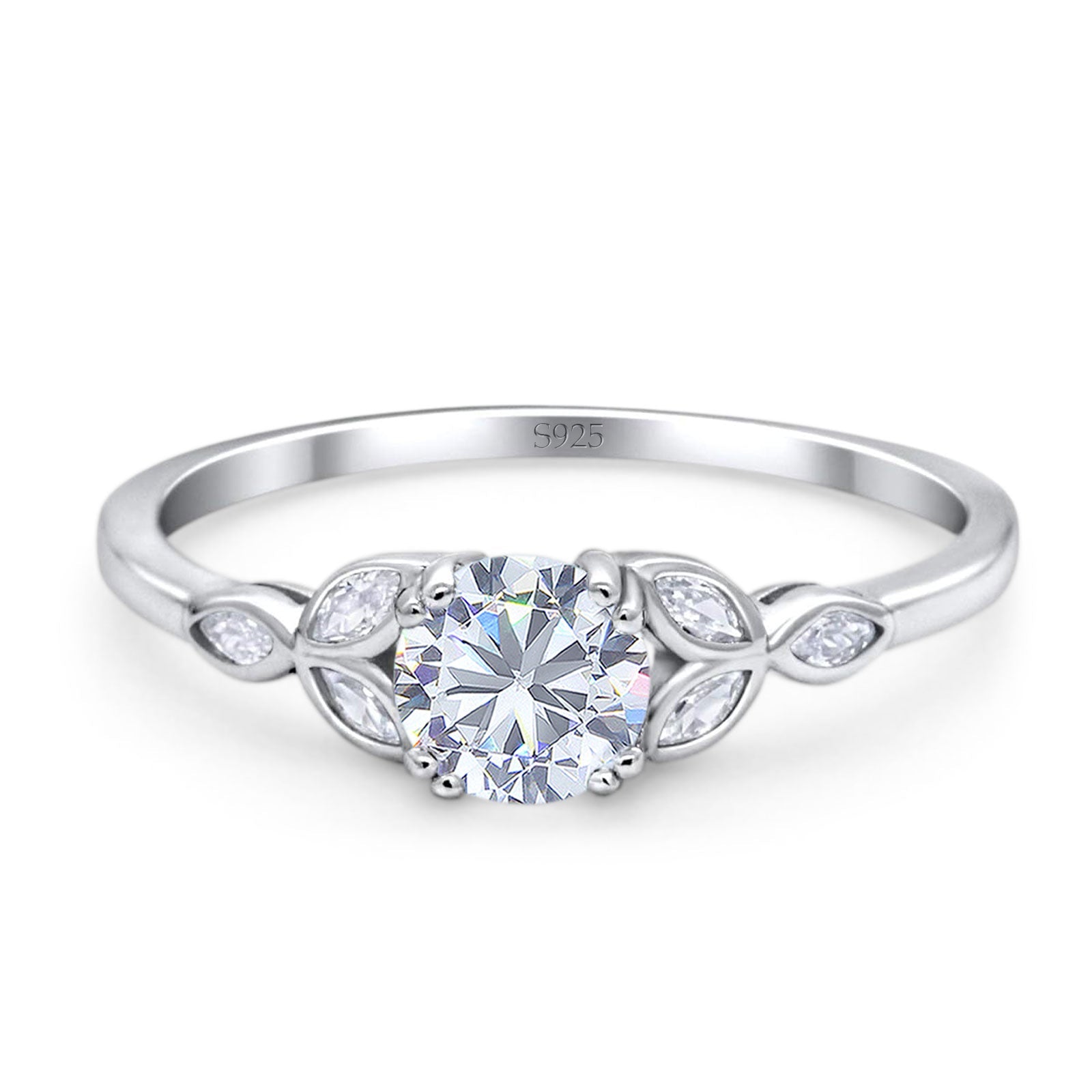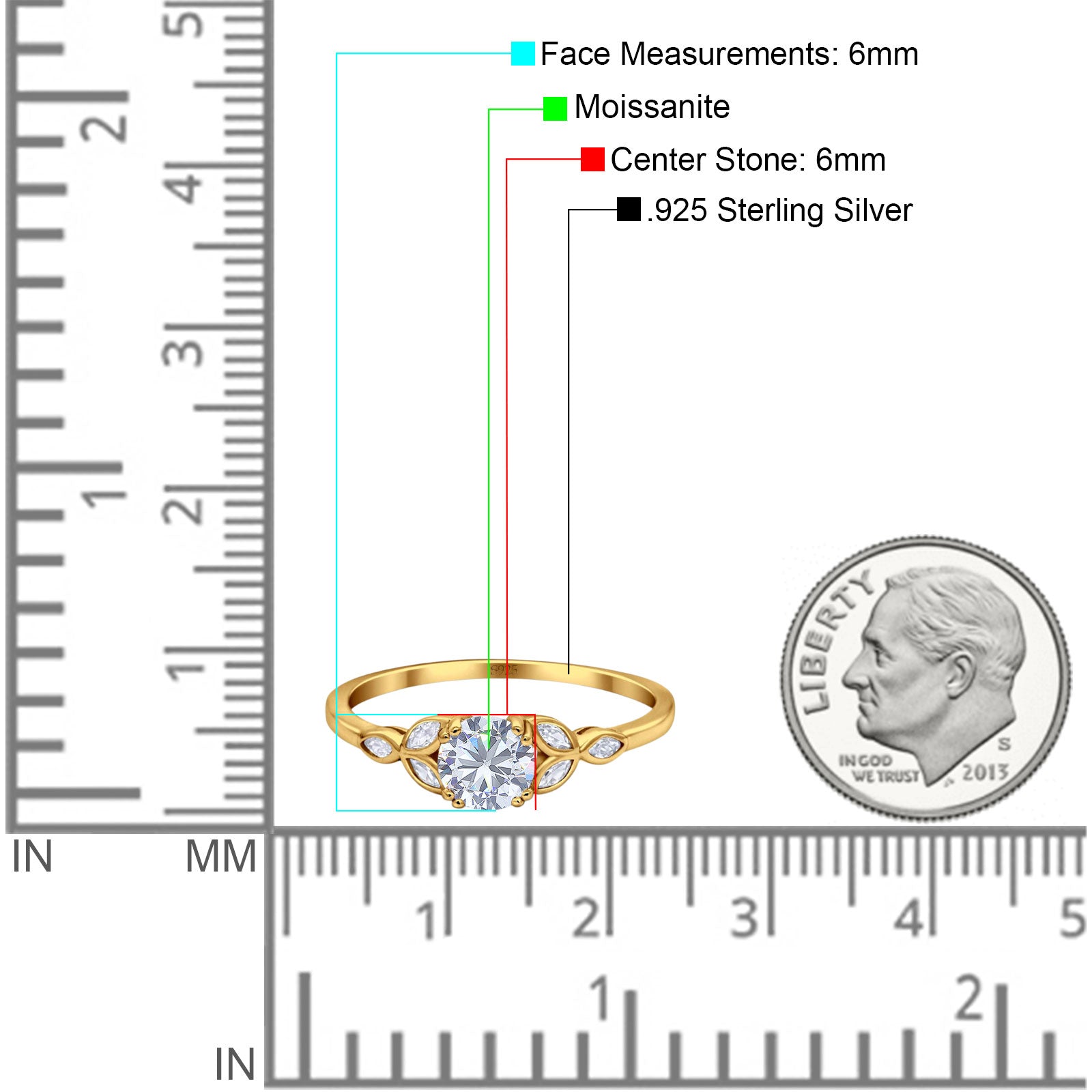 Floral Round Moissanite Leaf Design Ring 925 Sterling Silver